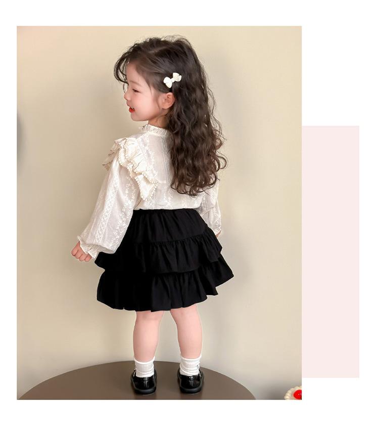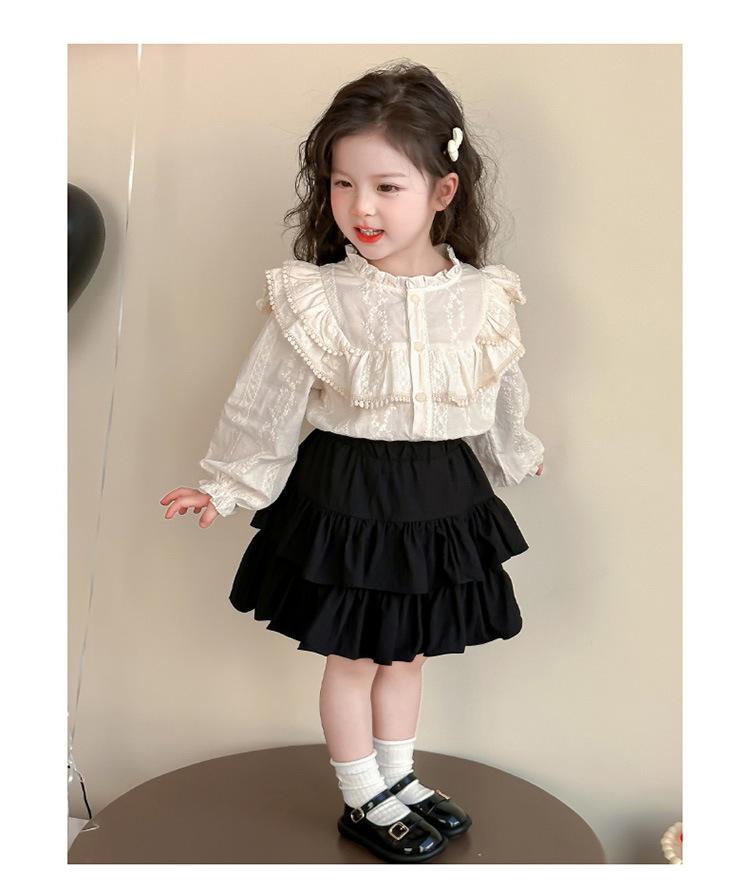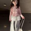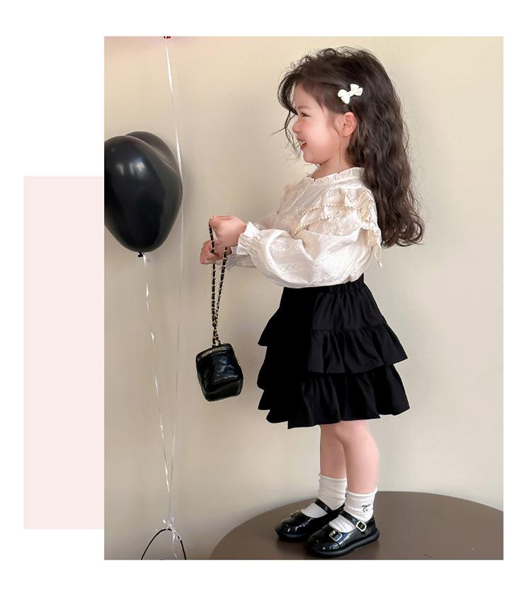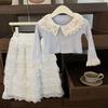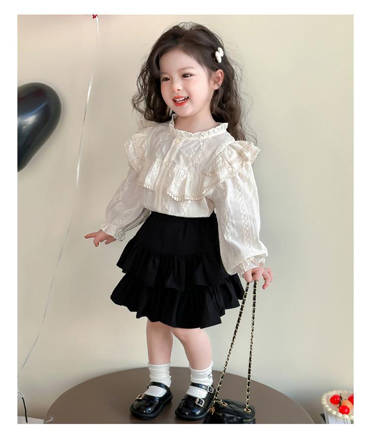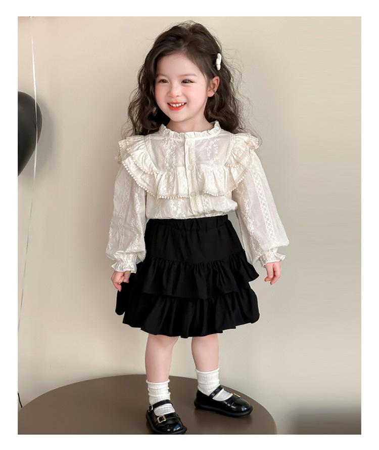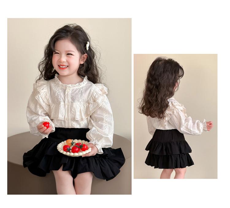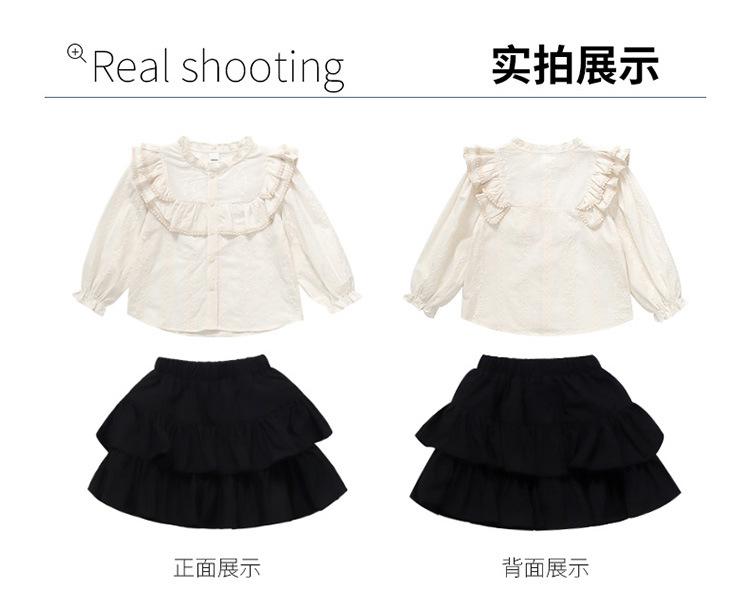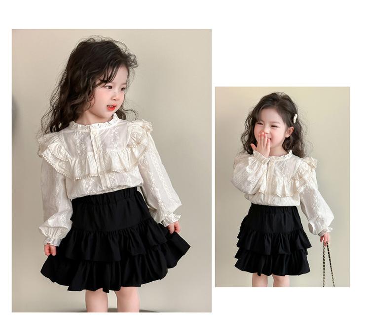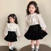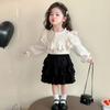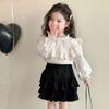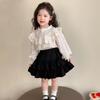 Conjunto de dos piezas de camisa y falda de encaje para niña, primavera y otoño de 2025, nueva moda para niña