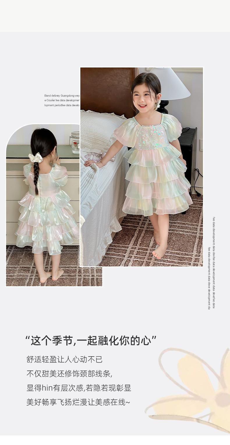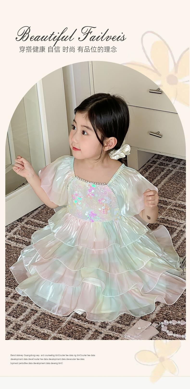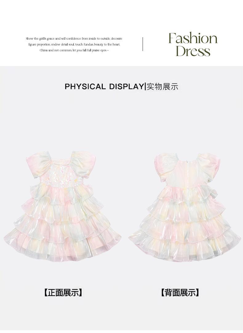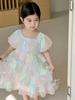 Vestido de princesa para niñas de verano 2025, falda de gasa para niñas, falda de pastel abullonada multicapa con arcoíris para bebés, falda de tesoro para mujeres