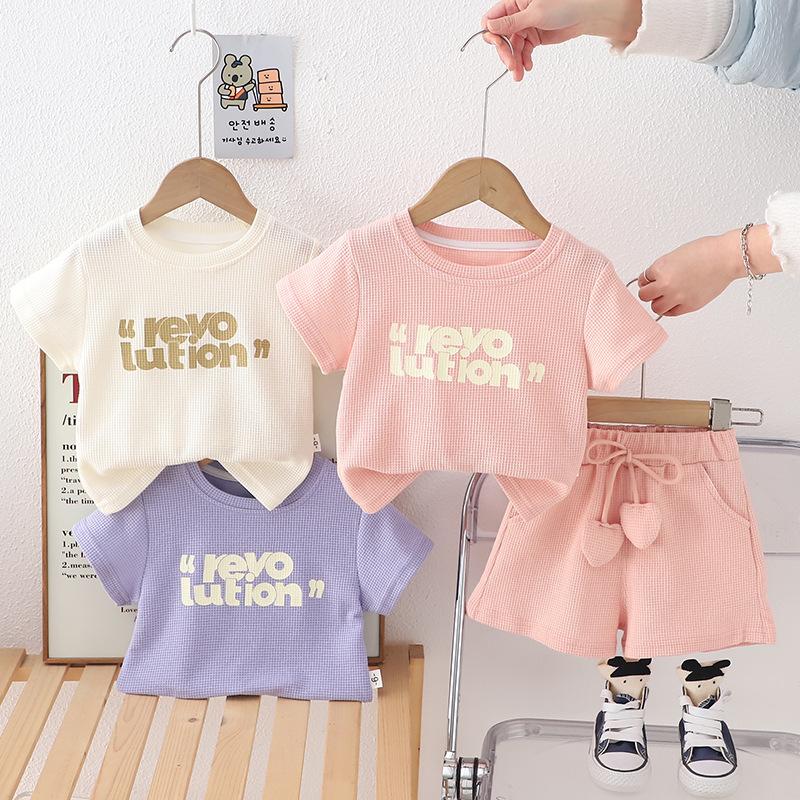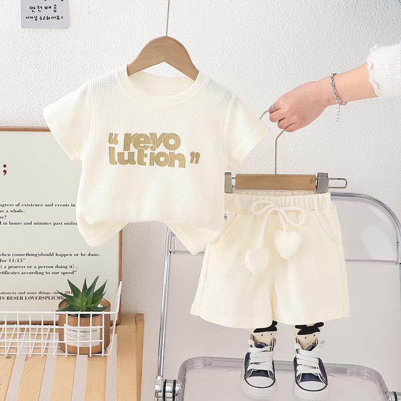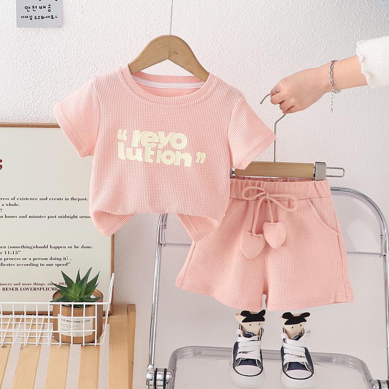 Ropa de Verano para Niña Ropa Infantil Nuevo Conjunto 2025 Corazón Manga Corta Moda Ropa de Verano Infantil Conjunto de Dos Piezas Bebé
