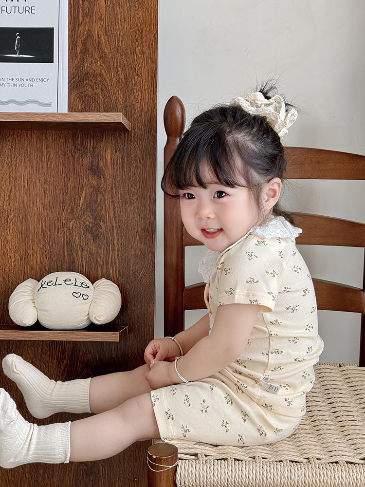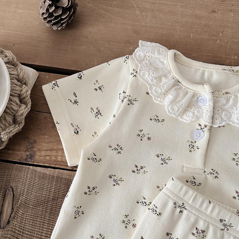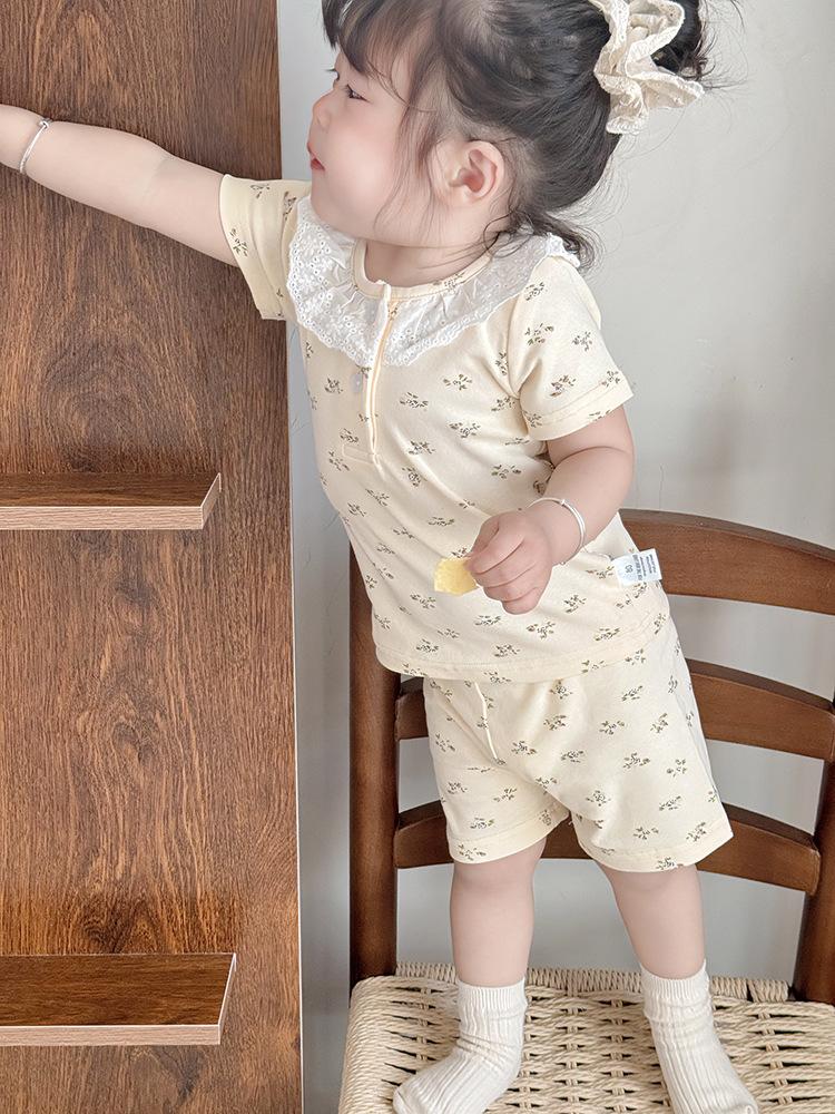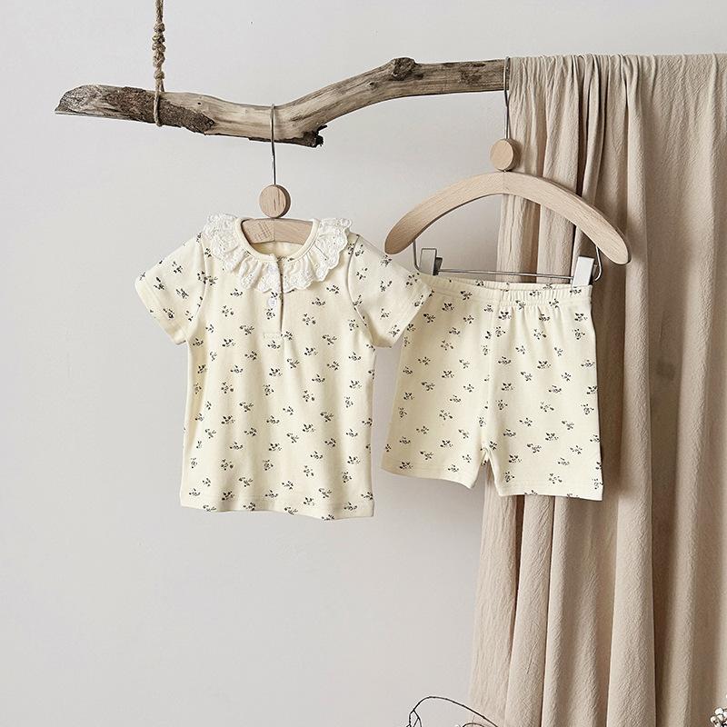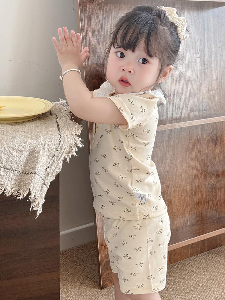 Traje para niña Verano 2025 Nuevo Ropa infantil floral estilo occidental para niña Traje casual de verano de dos piezas para bebé