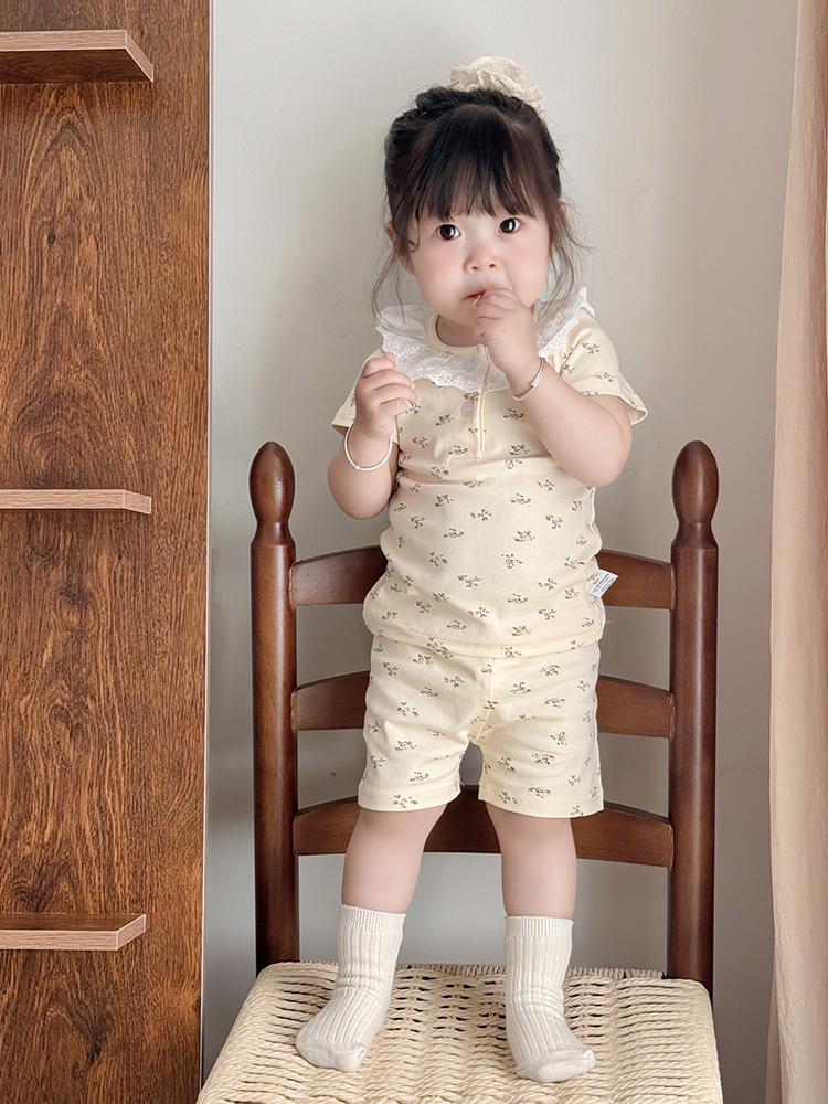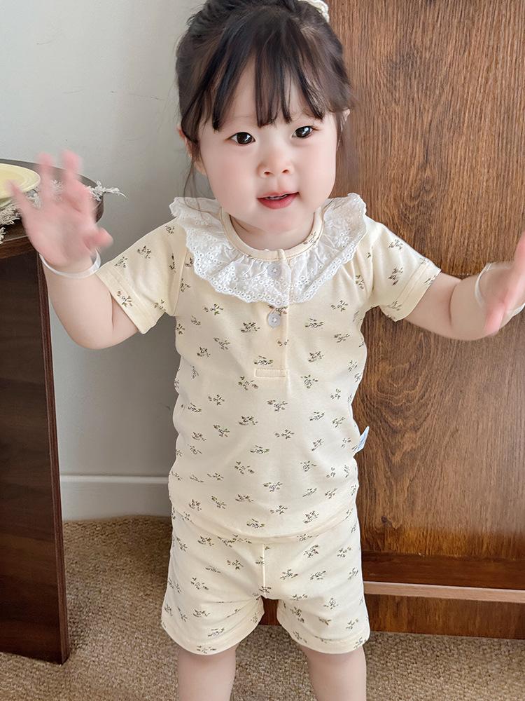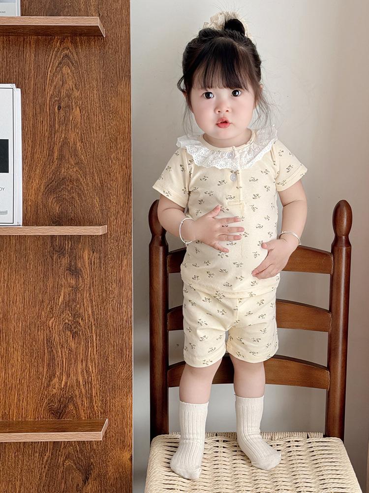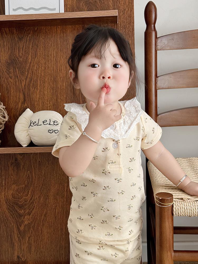 Traje para niña Verano 2025 Nuevo Ropa infantil floral estilo occidental para niña Traje casual de verano de dos piezas para bebé