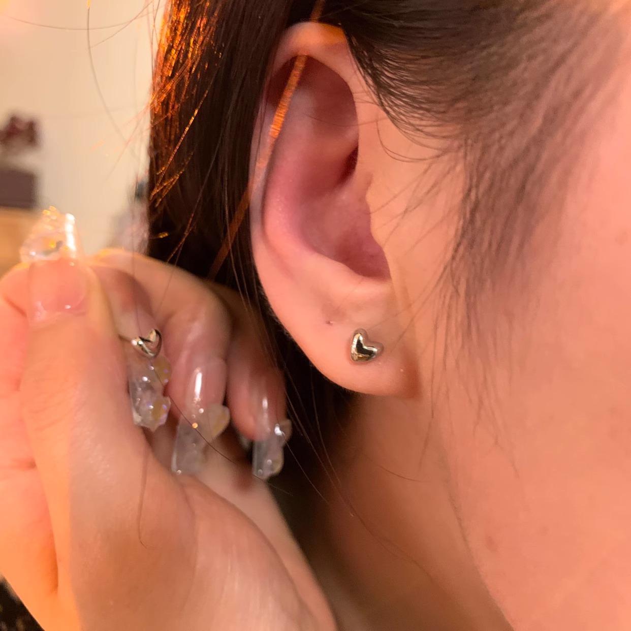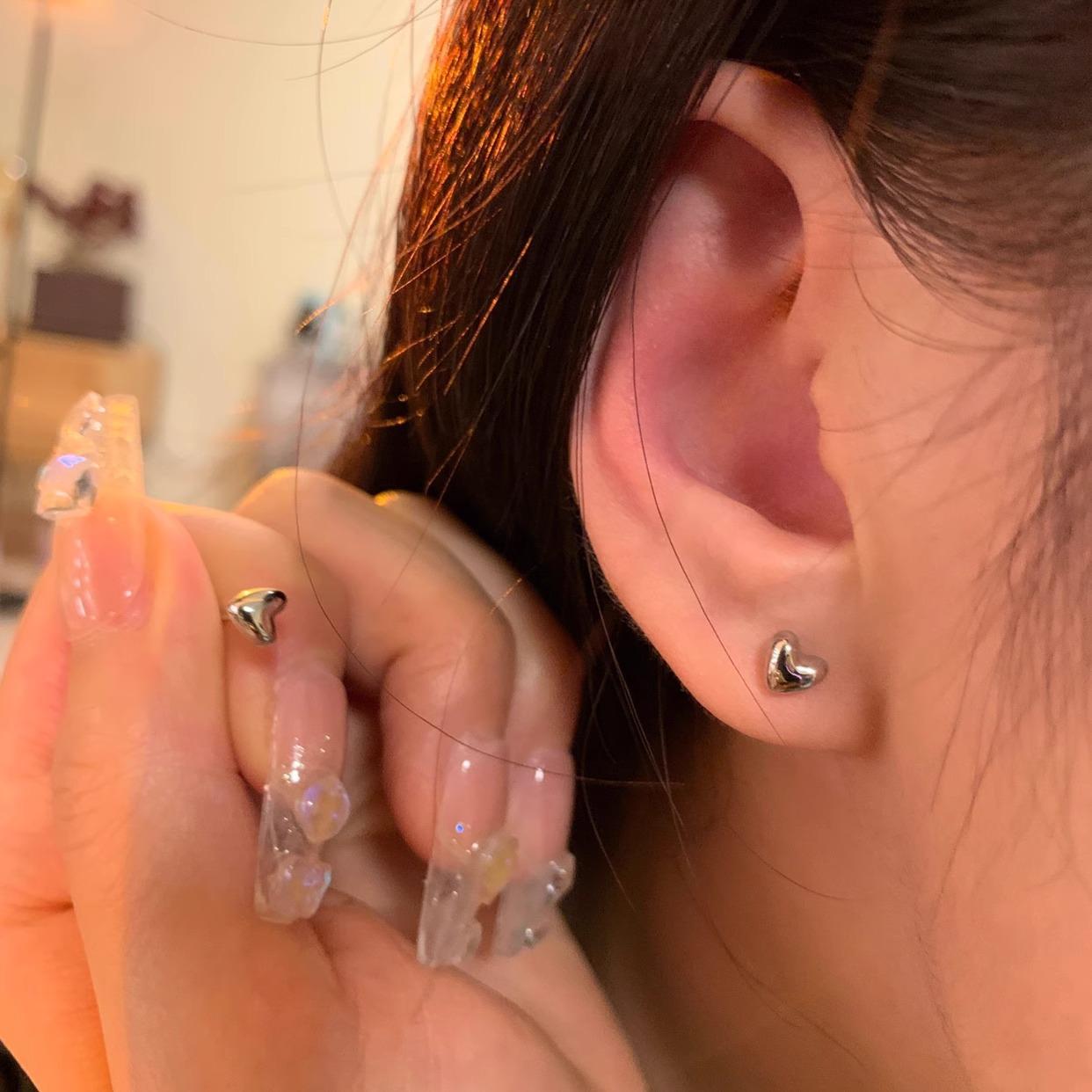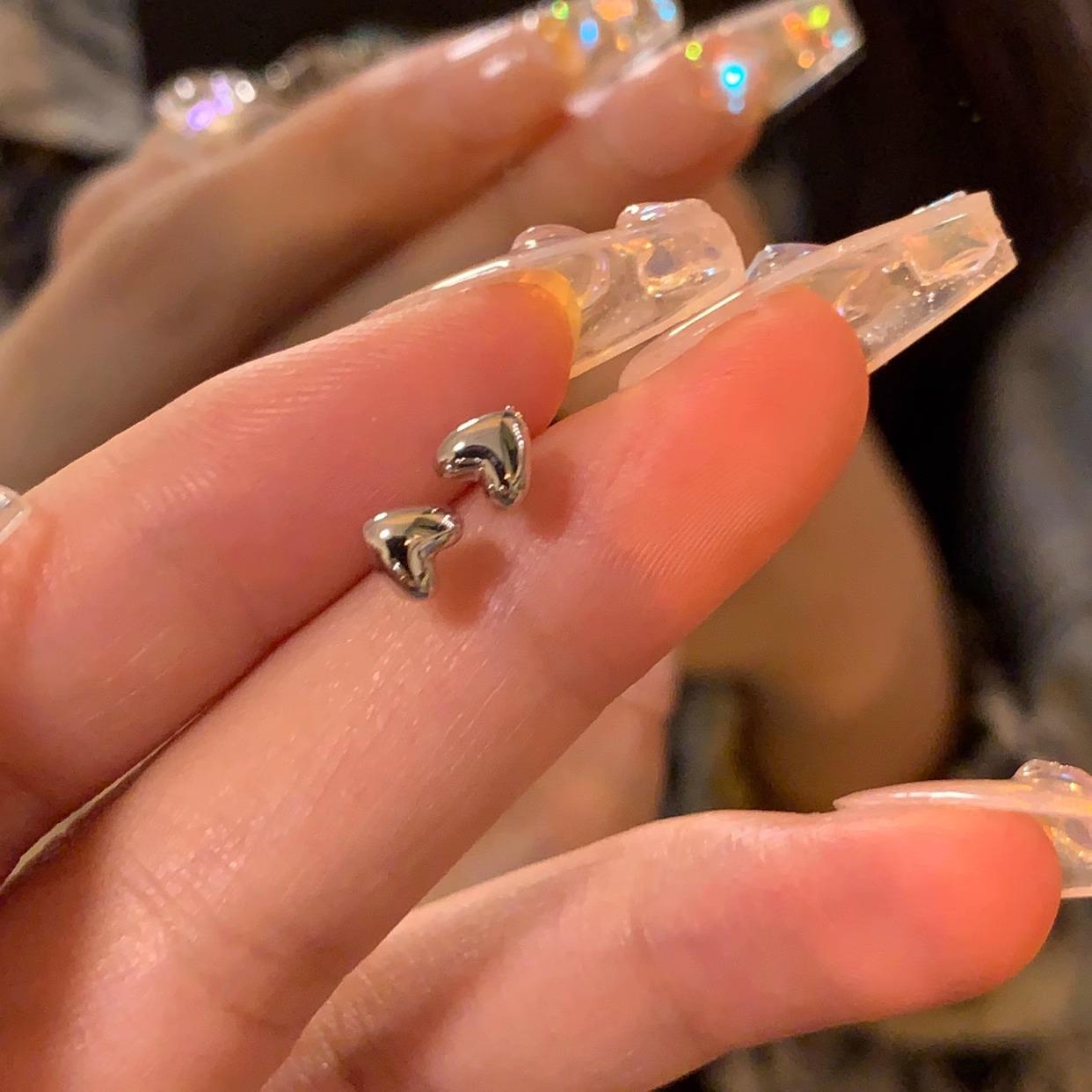 Pendientes de plata 925 estilo coreano, exquisitos pendientes de amor, temperamento femenino, pendientes que combinan con todo, diseño de nicho, pendientes de estilo frío de alta calidad.