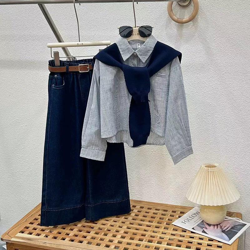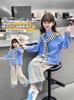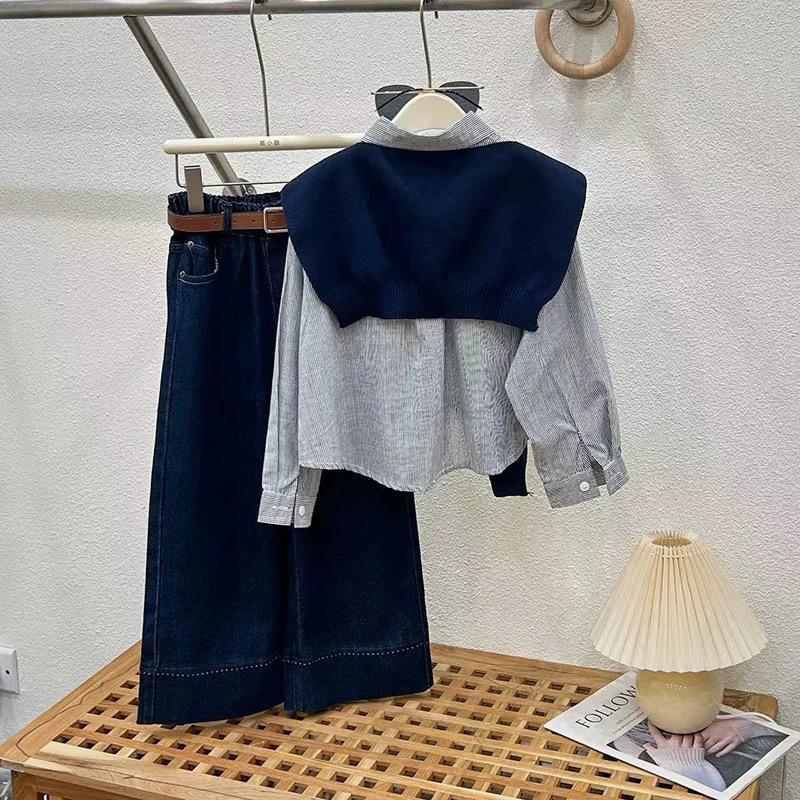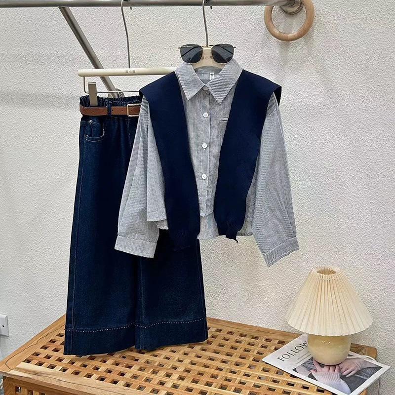 Traje de Jeans de Otoño para Niñas 2025 Nuevo Estilo Estilo Occidental Tops de Primavera y Otoño para Niñas Camisa para Niños Conjunto de Tres Piezas