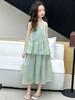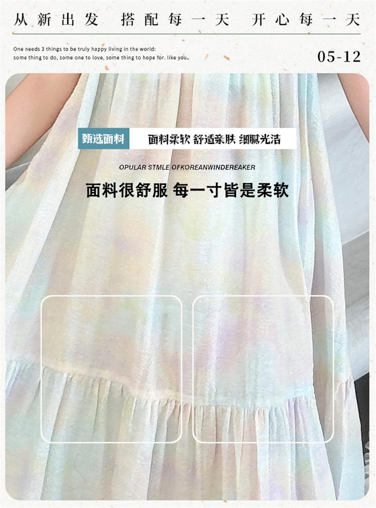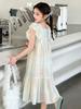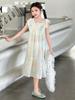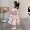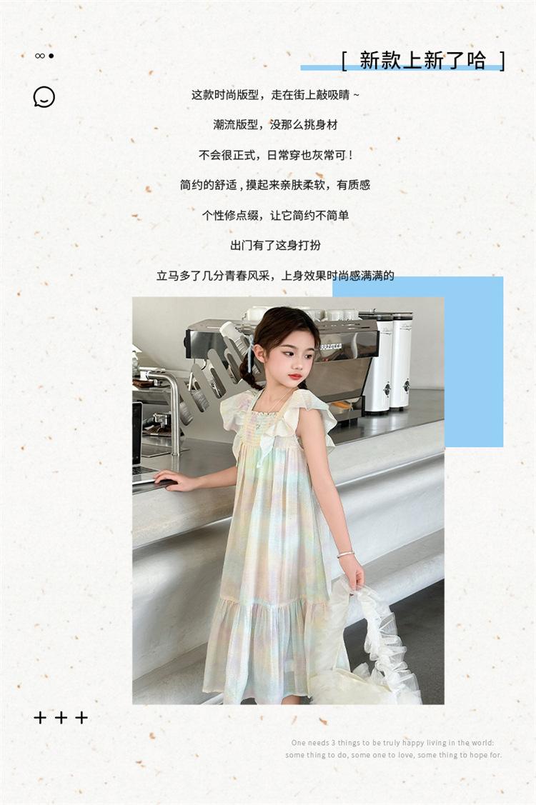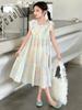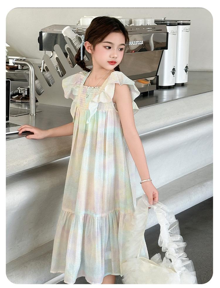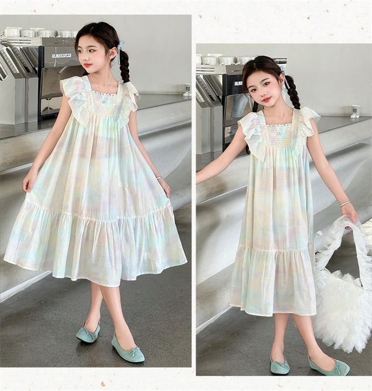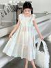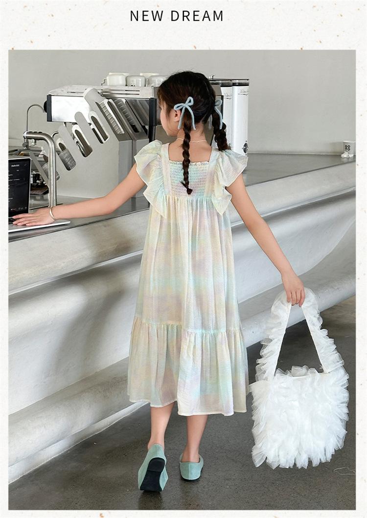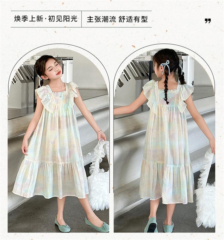 Vestido de niña 2025 Verano Nuevo Elegante Moderno Estilo Vacacional Niña Grande Tie-Dye Manga Volante Vestido de Princesa