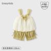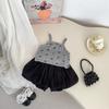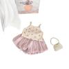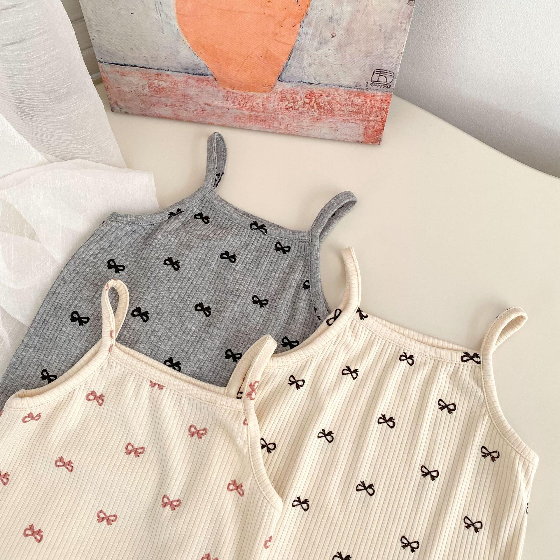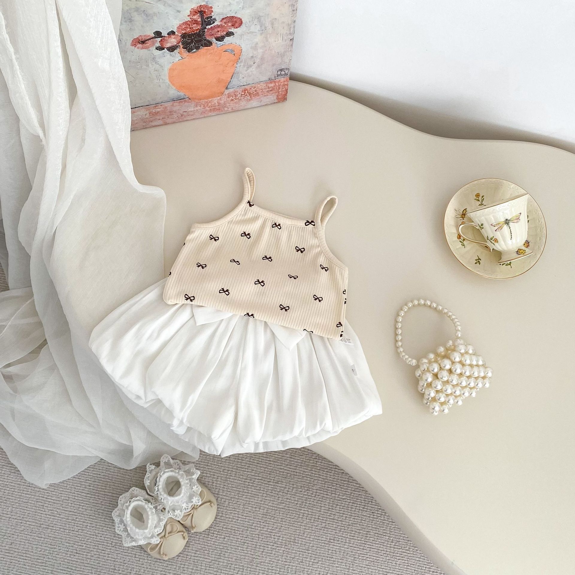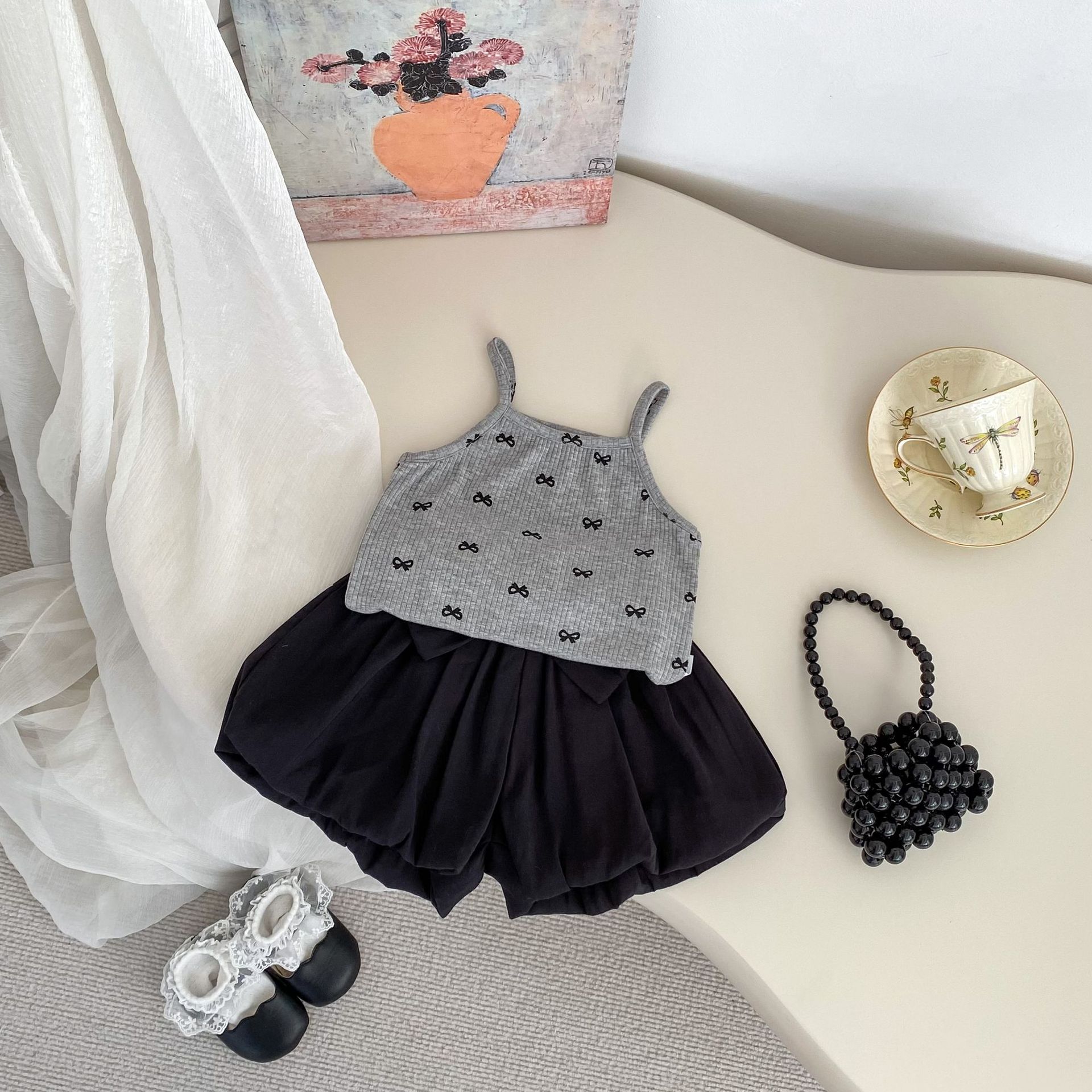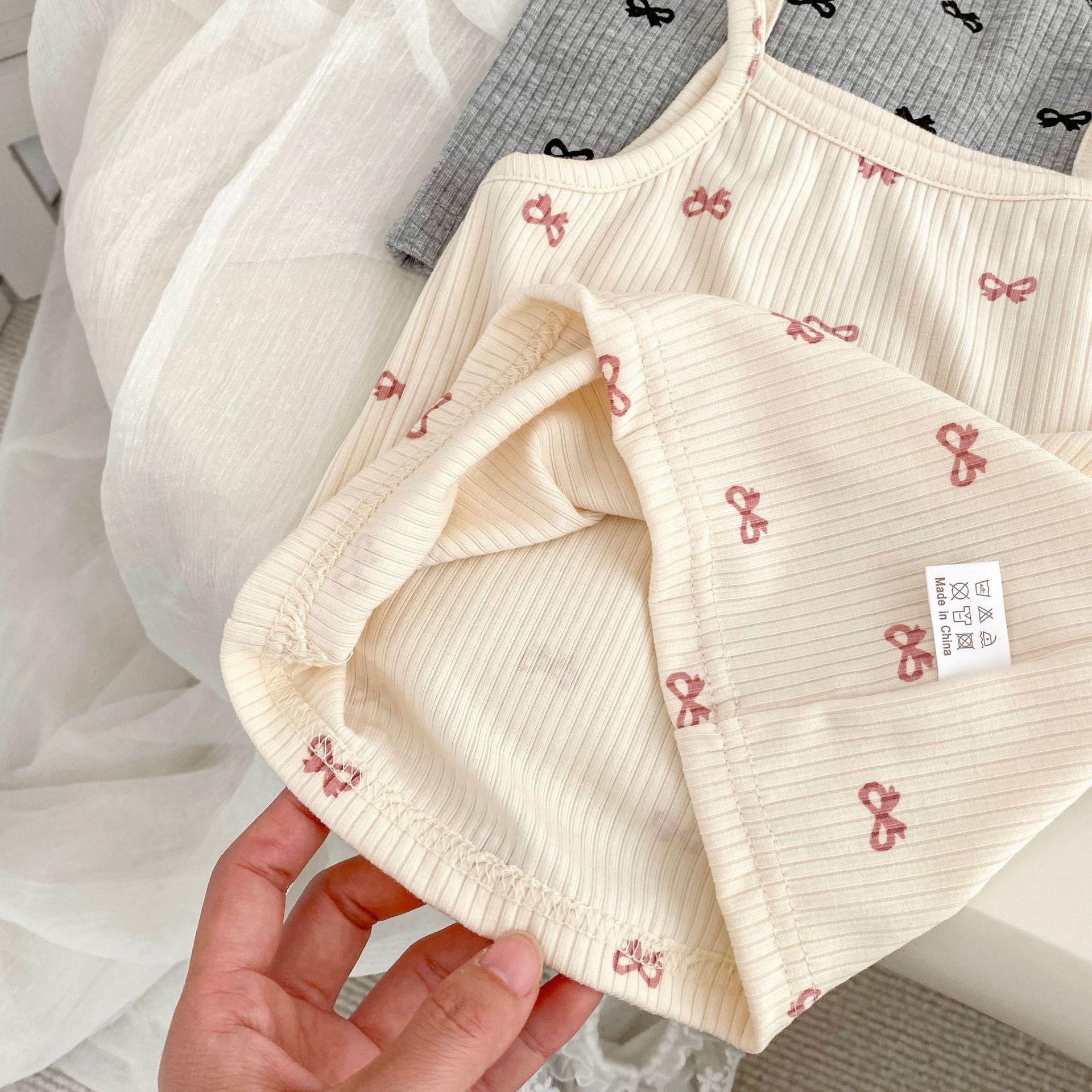 INS Verano Moda para Niñas Pequeña Sling Dos Piezas Estilo Occidental Combinable Camiseta Top Lazo Shorts