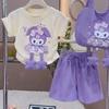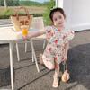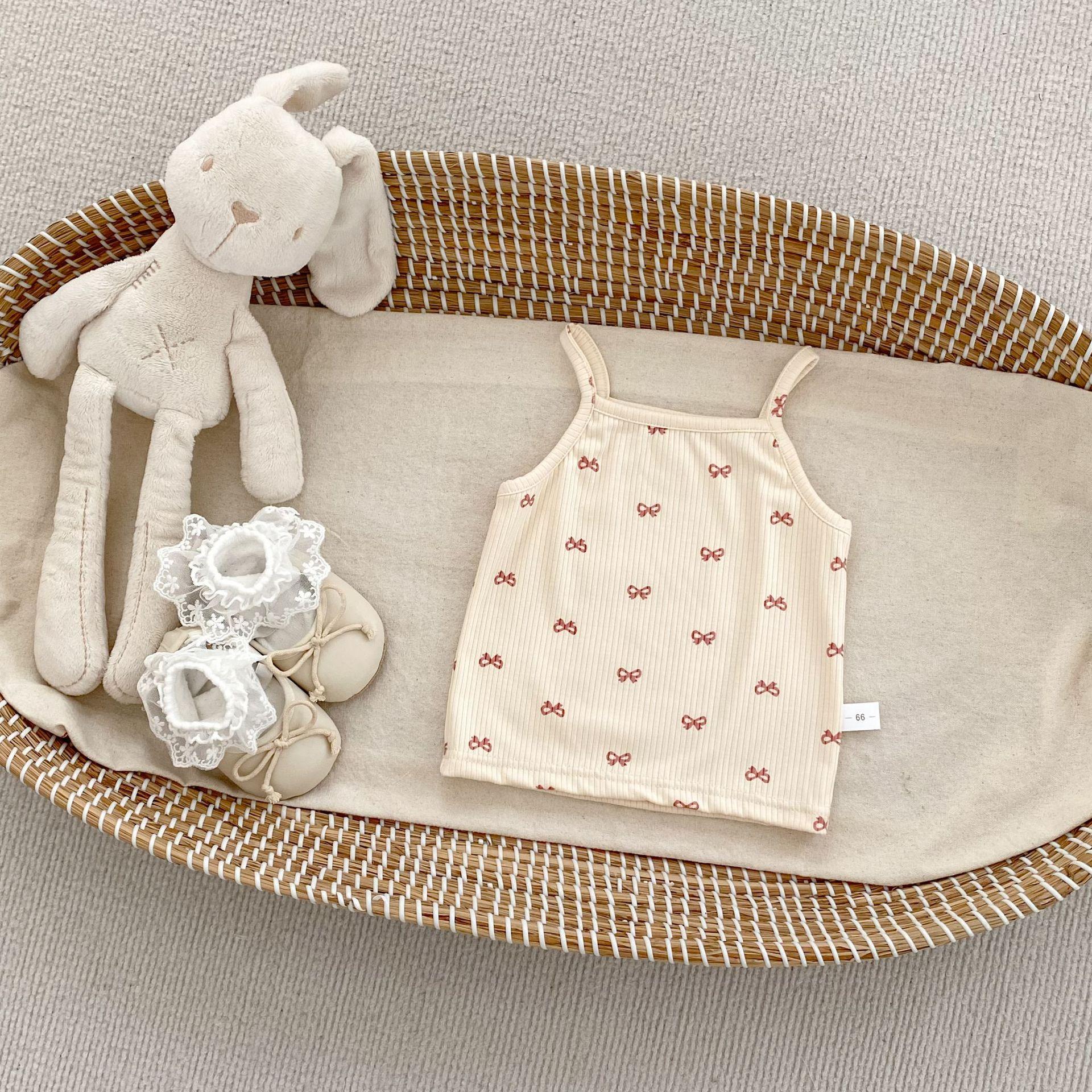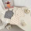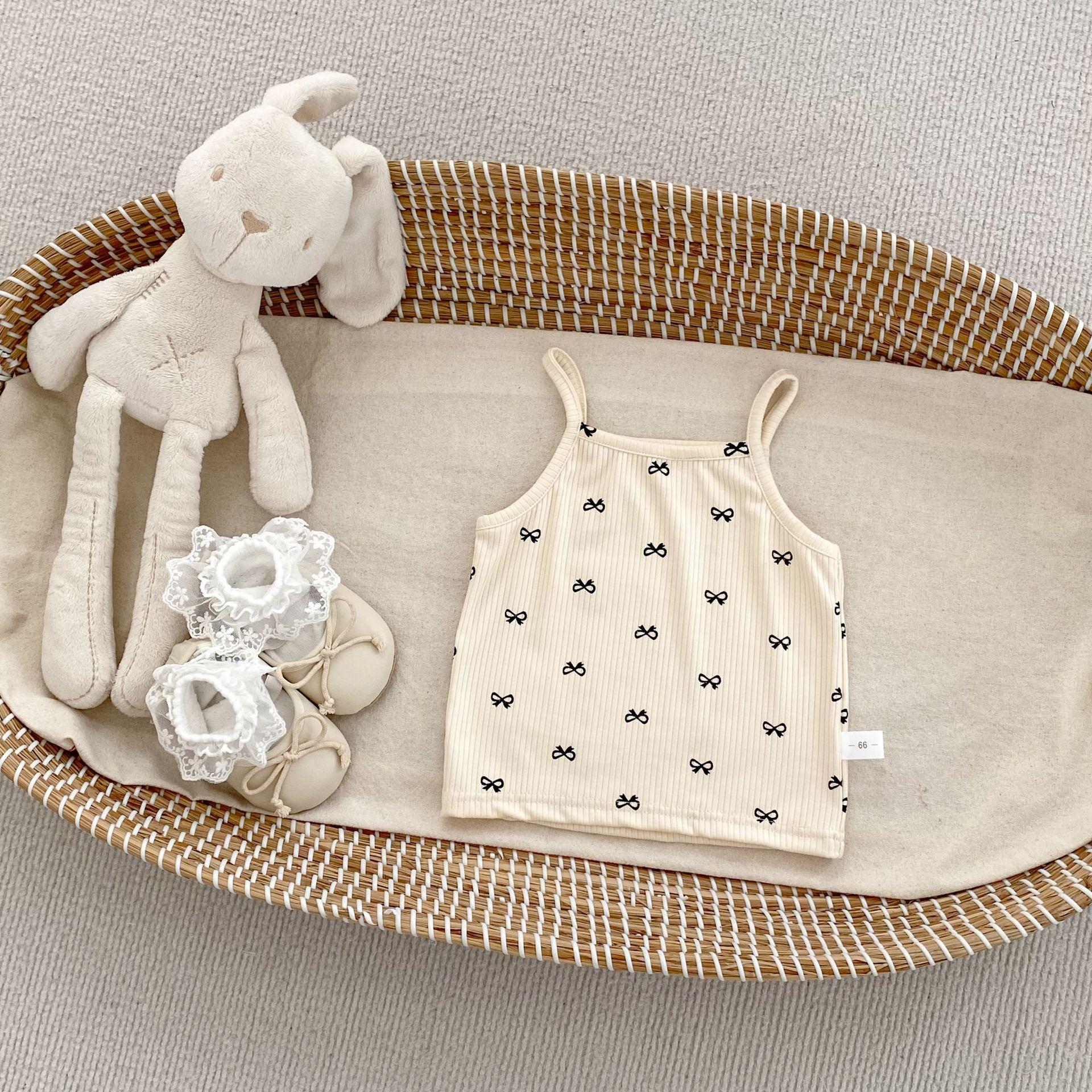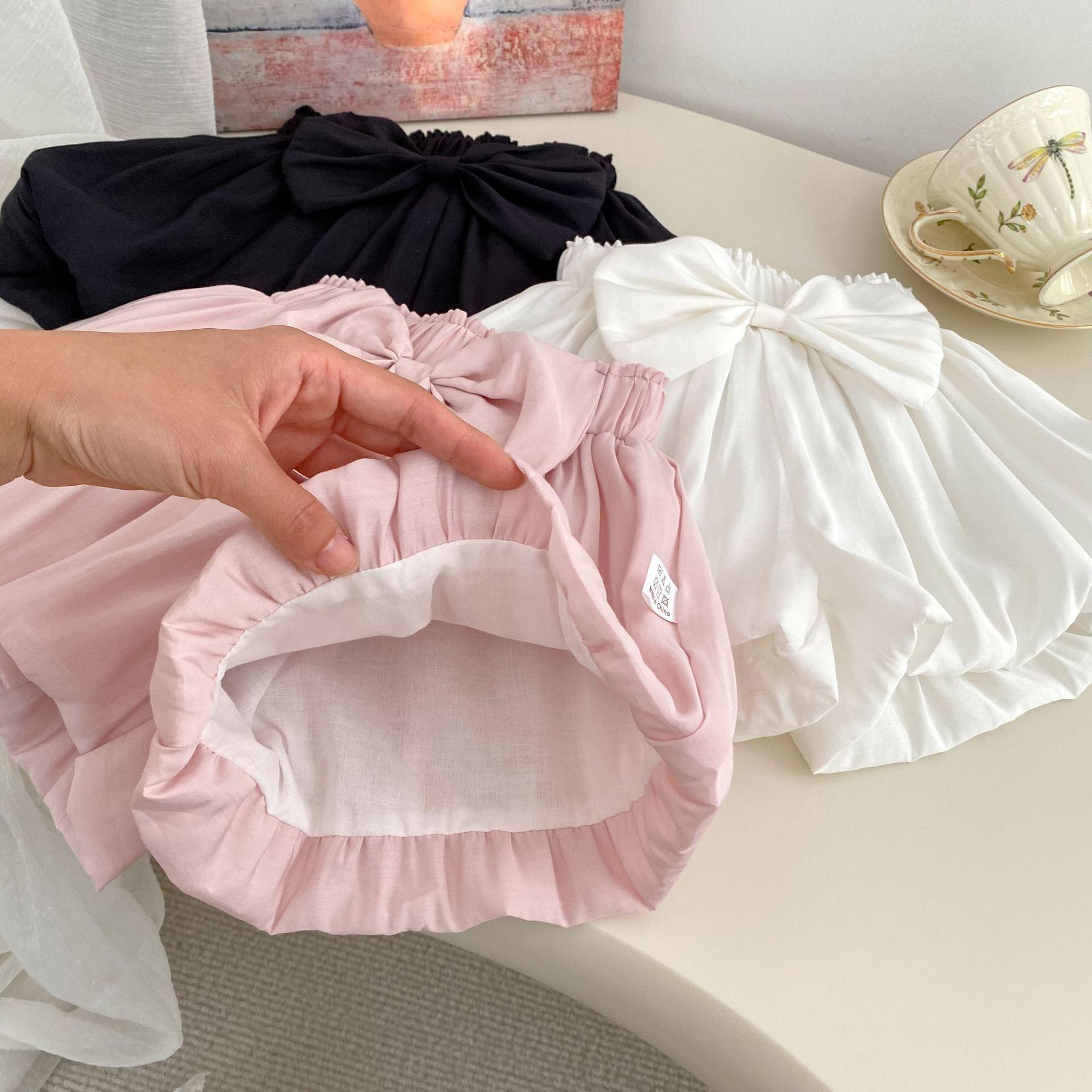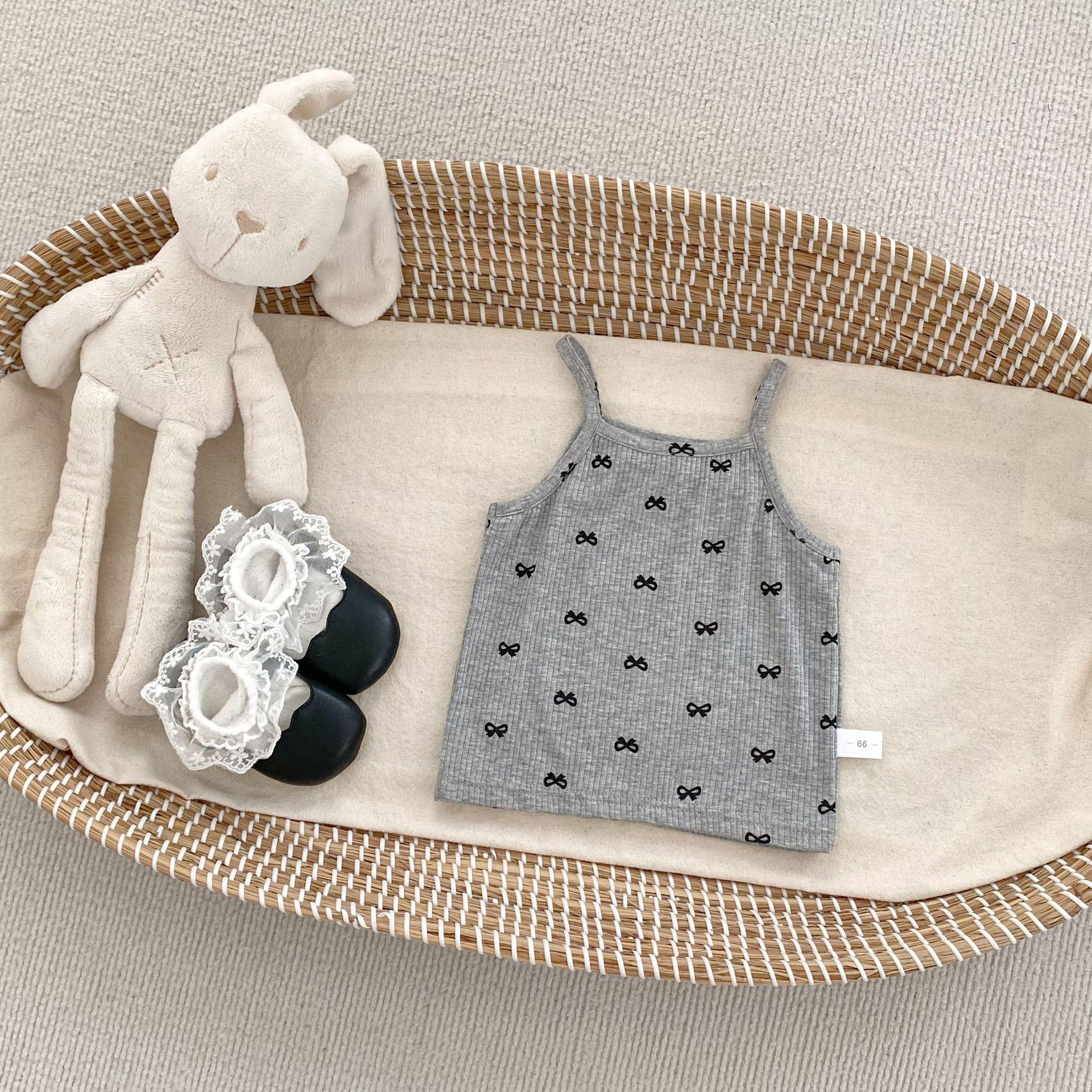 INS Verano Moda para Niñas Pequeña Sling Dos Piezas Estilo Occidental Combinable Camiseta Top Lazo Shorts