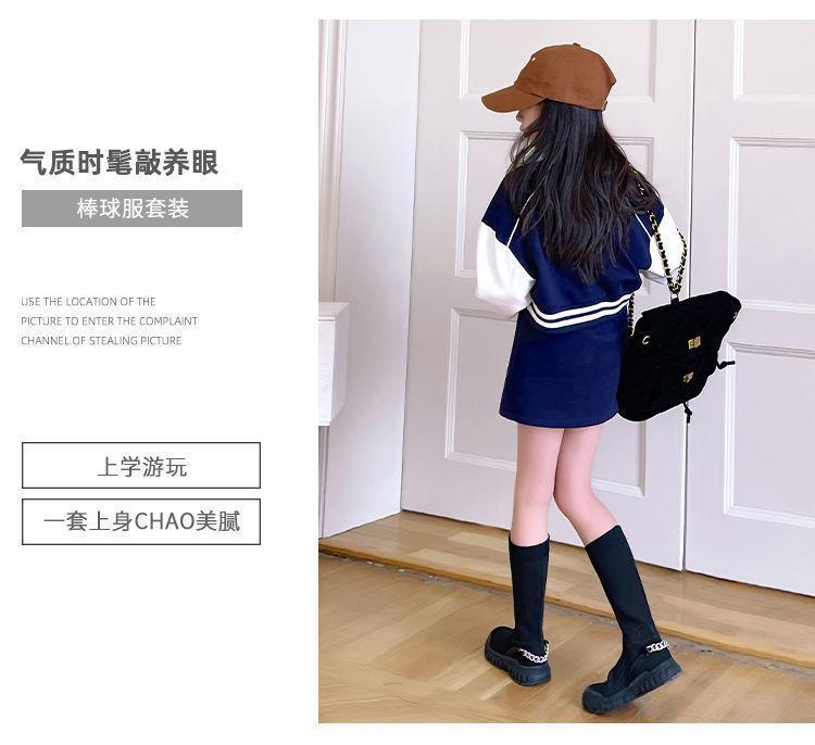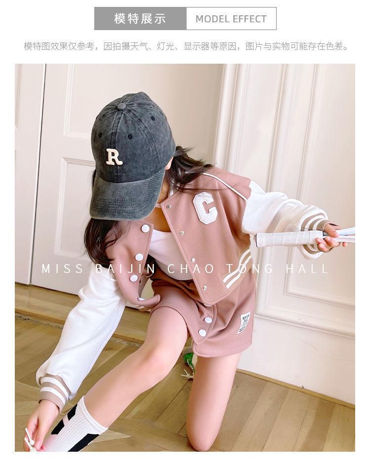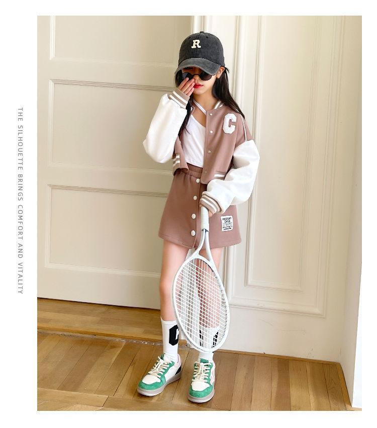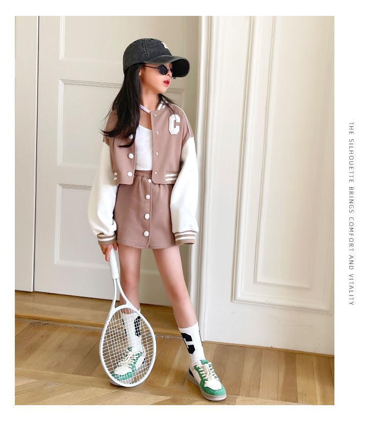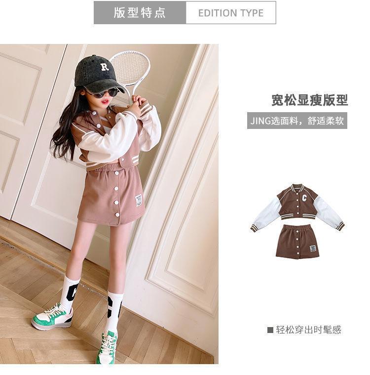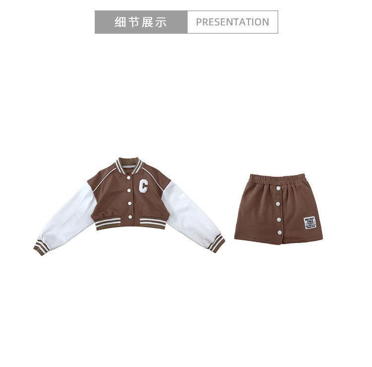 Traje Deportivo para Niñas 2024 Primavera y Otoño Nuevo Niños Medianos y Grandes Estilo Coreano Estilo Occidental Uniforme de Béisbol para Niñas Falda Corta Conjunto de Dos Piezas
