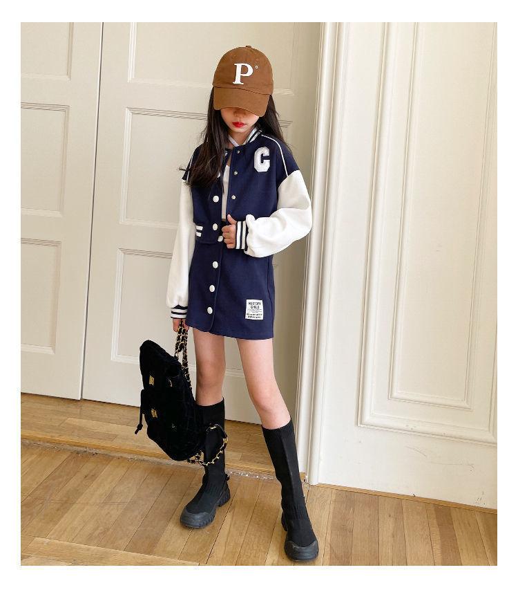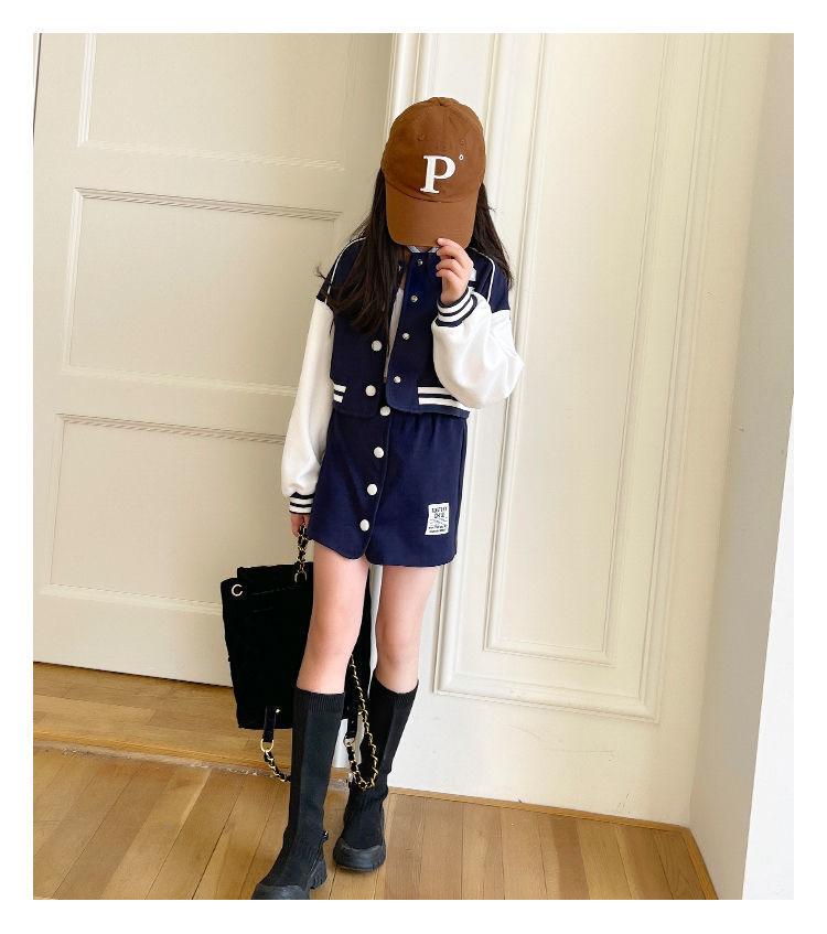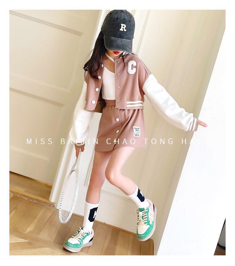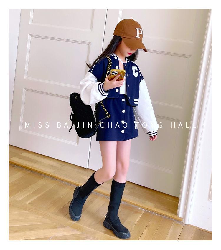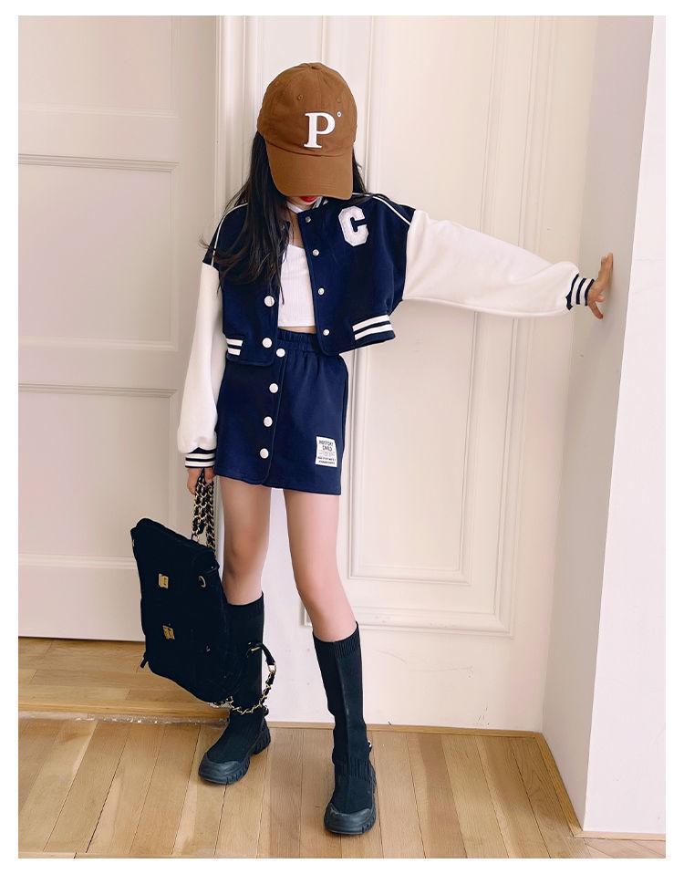 Traje Deportivo para Niñas 2024 Primavera y Otoño Nuevo Niños Medianos y Grandes Estilo Coreano Estilo Occidental Uniforme de Béisbol para Niñas Falda Corta Conjunto de Dos Piezas