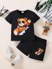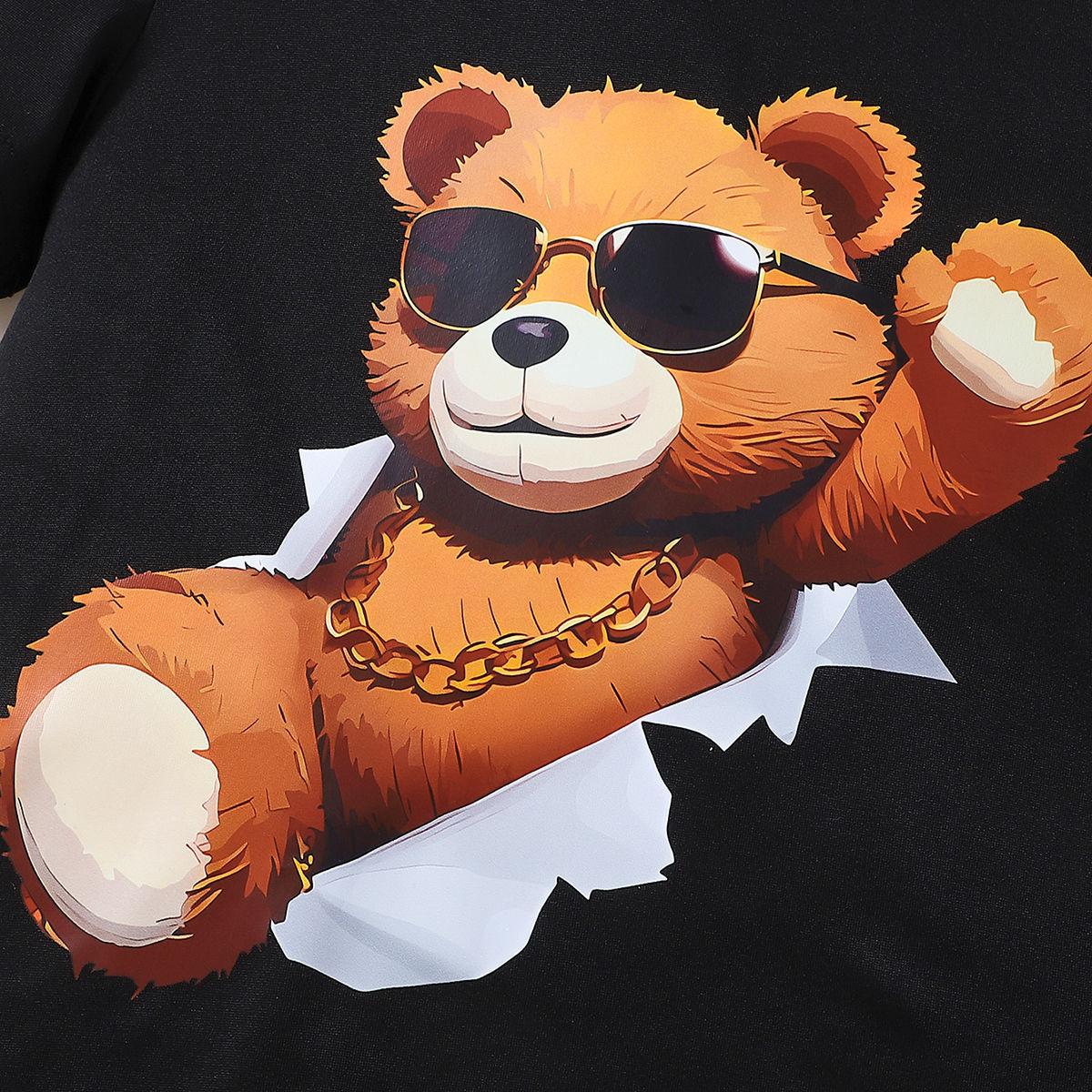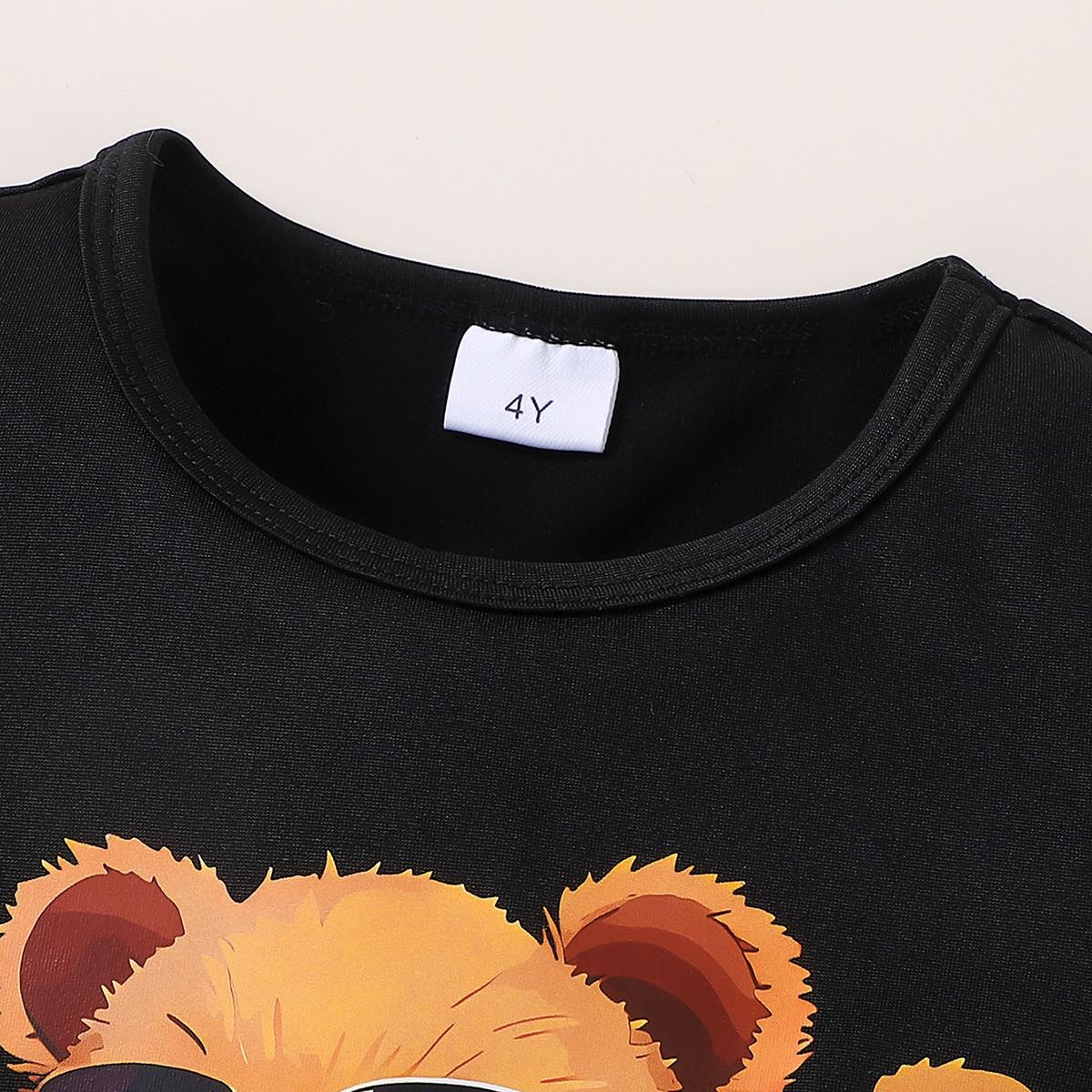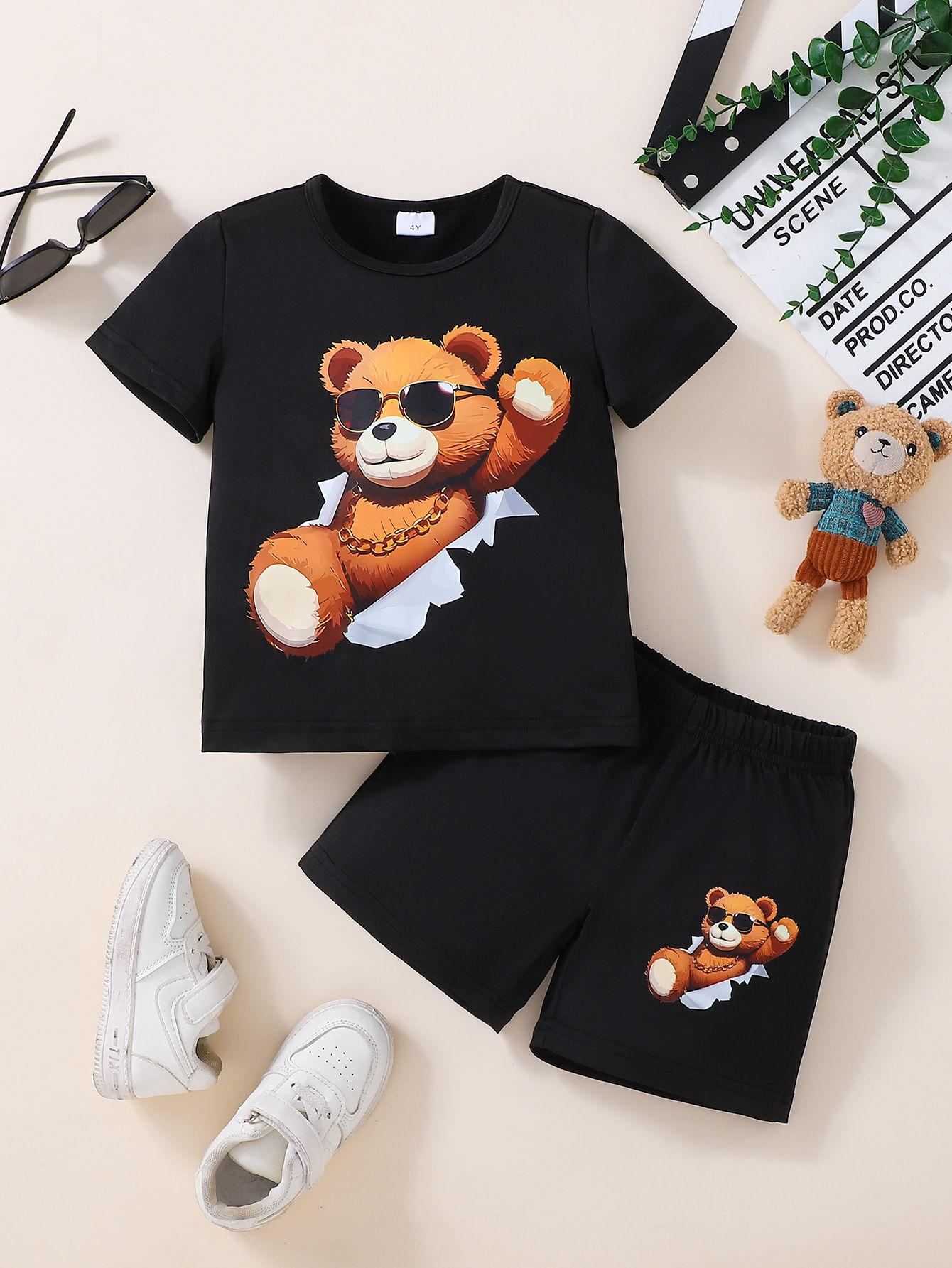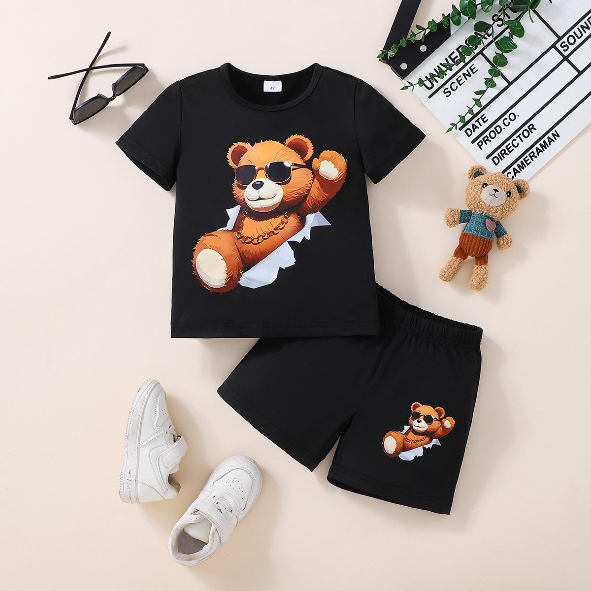 Ropa para Niños Verano 2025 Nuevo Traje Casual de Moda de Manga Corta con Cuello Redondo para Niños con Estampado de Oso Anime