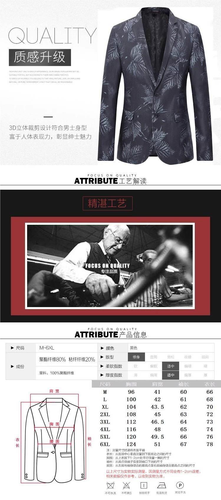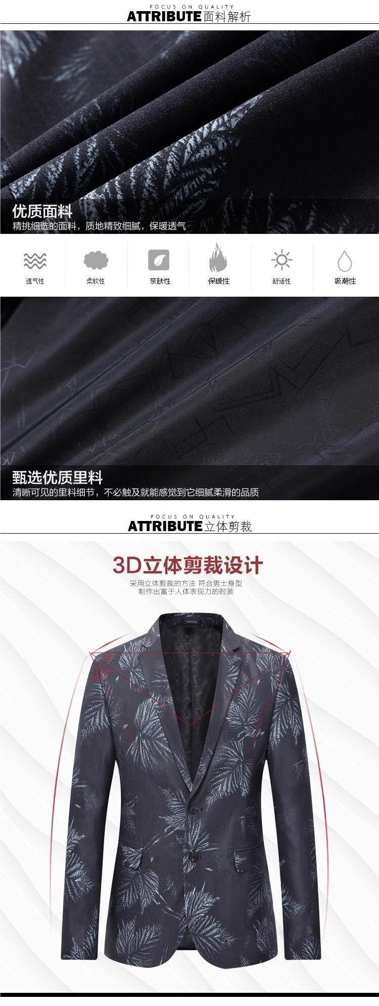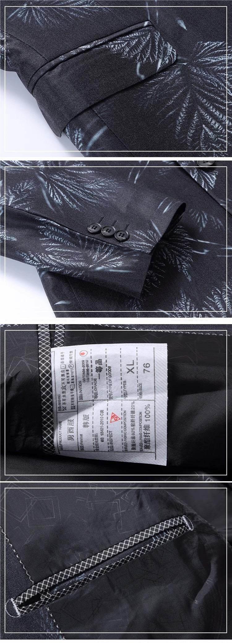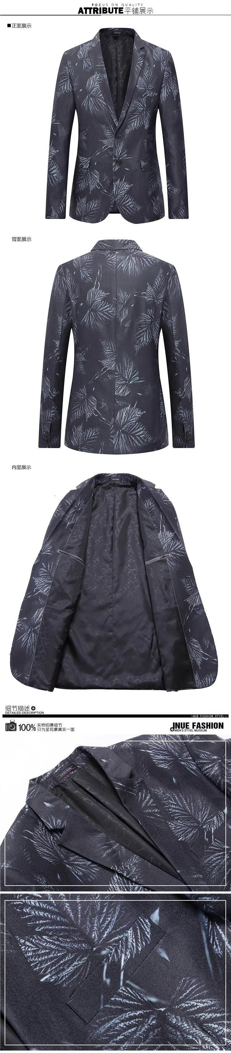 4 Chaqueta Casual Occidental para Hombre Nueva Juvenil Doble Botón Solapa Estampada Traje Negro Gris Lavable a Máquina