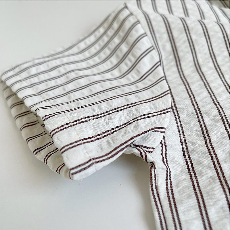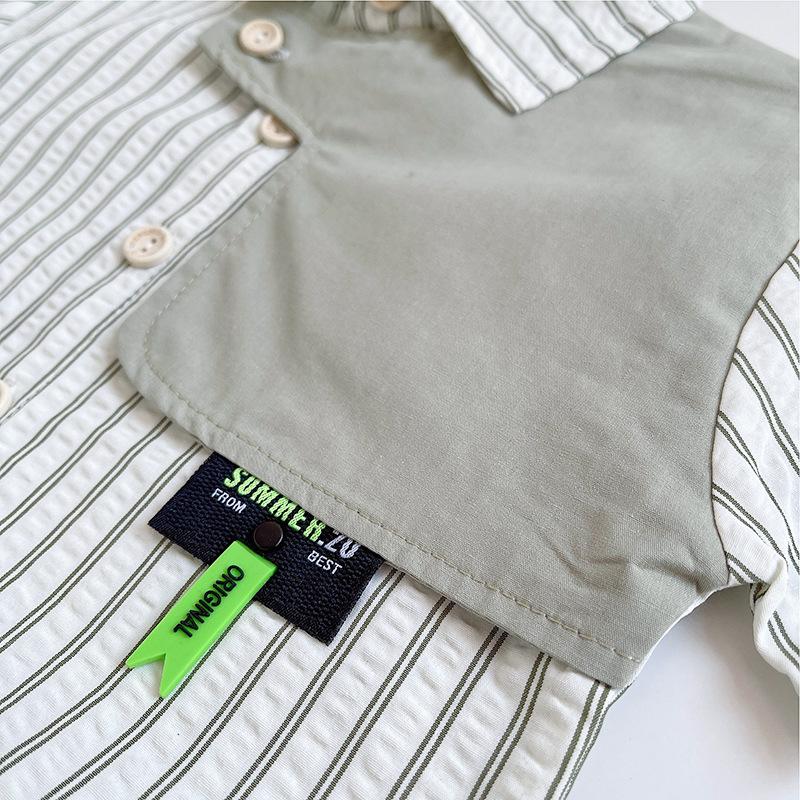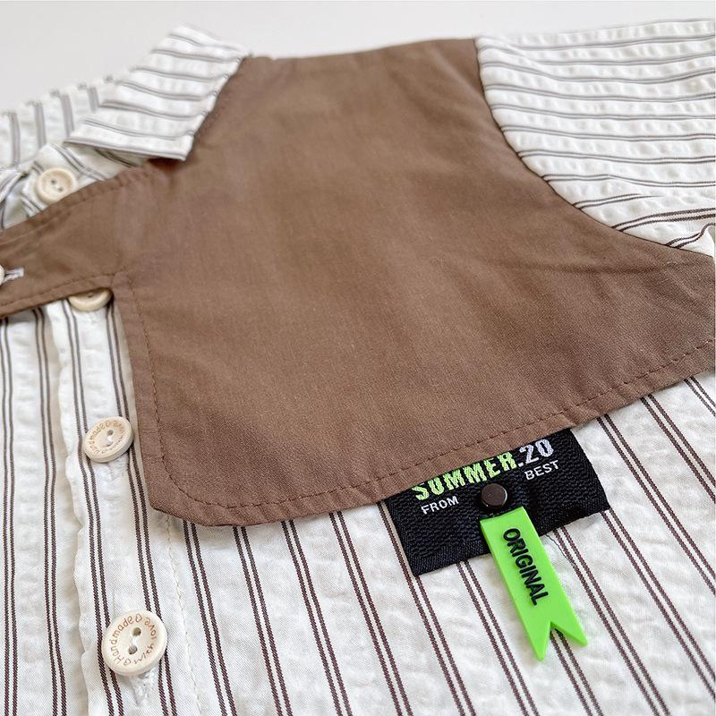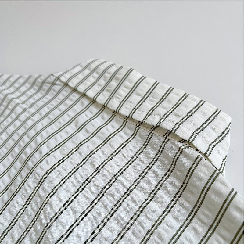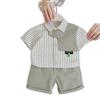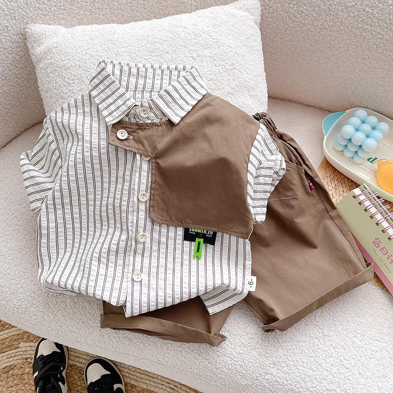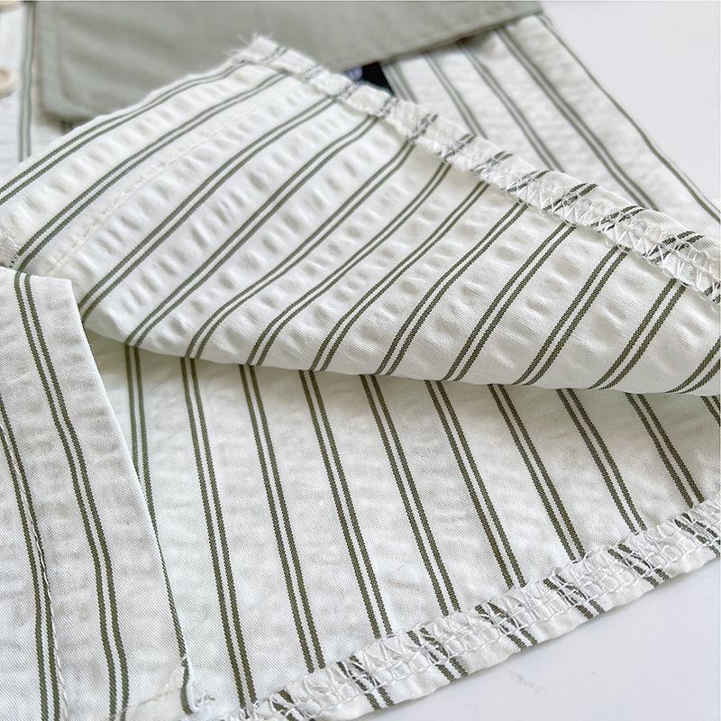 Ropa de Verano para Bebé 2025 Nuevo Estilo Niño Guapo Camisa Fina de Rayas Verticales Manga Corta Conjunto de Dos Piezas Ropa Infantil de Moda