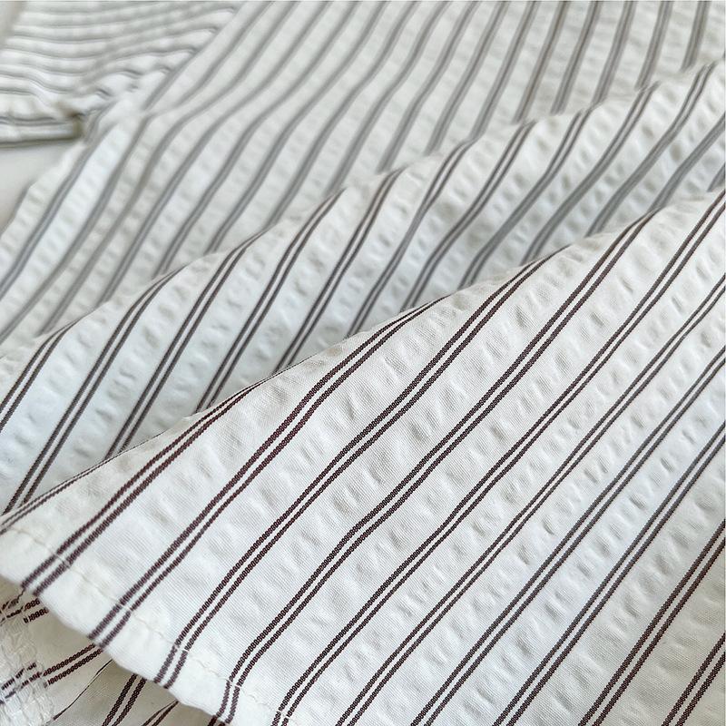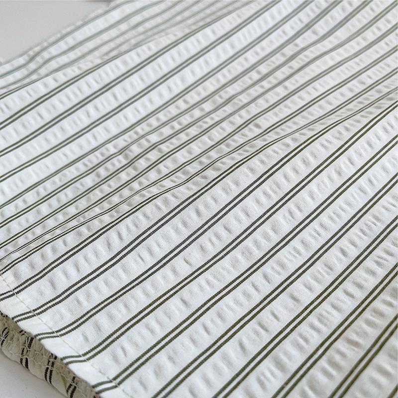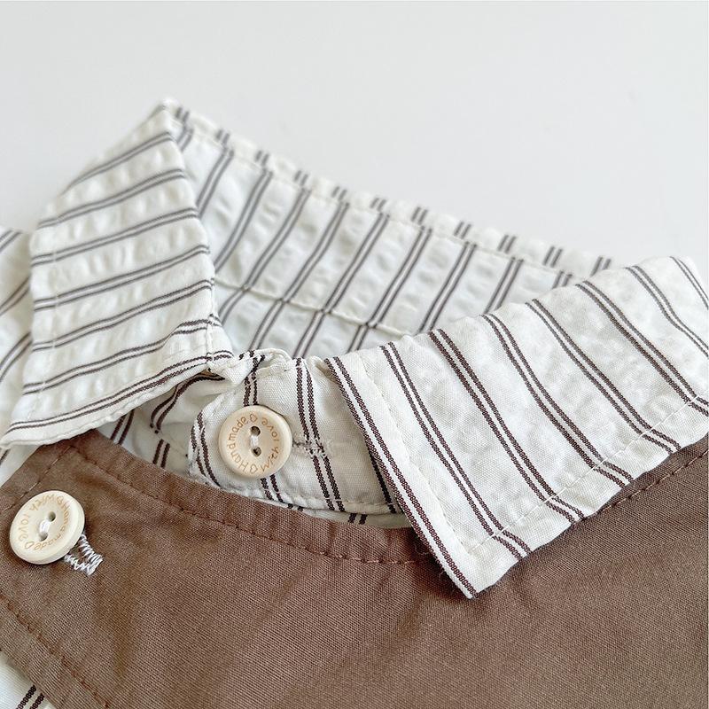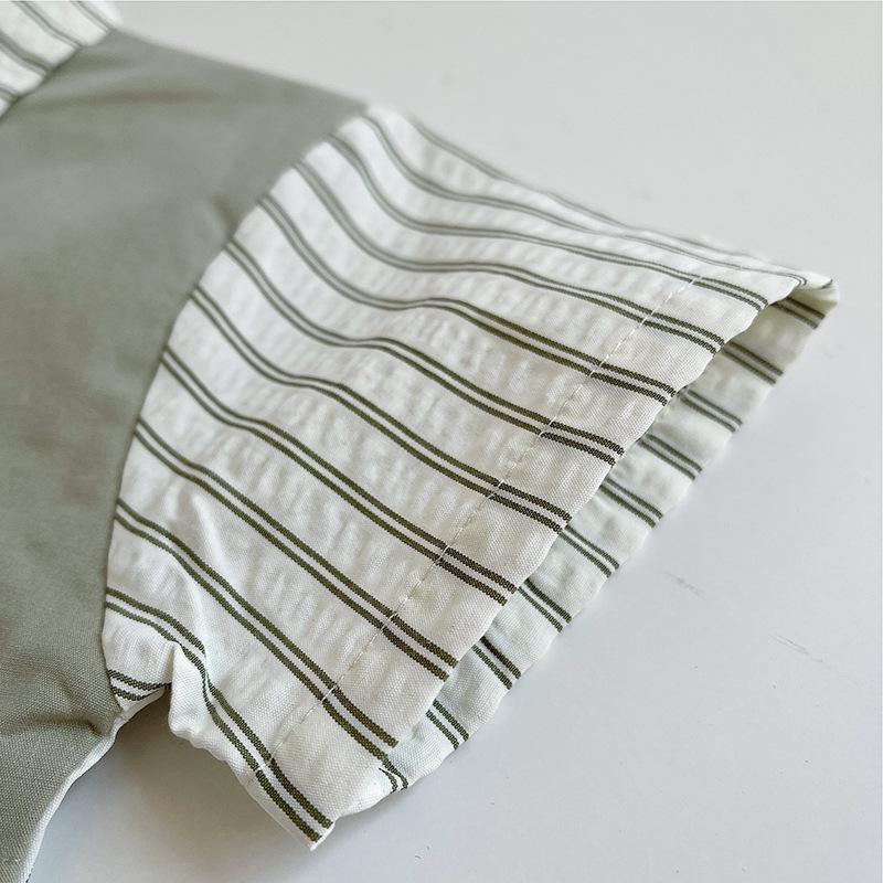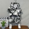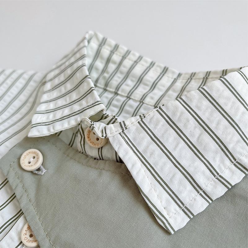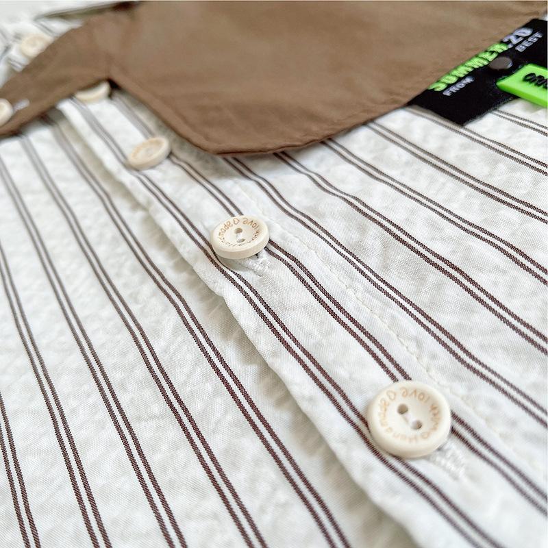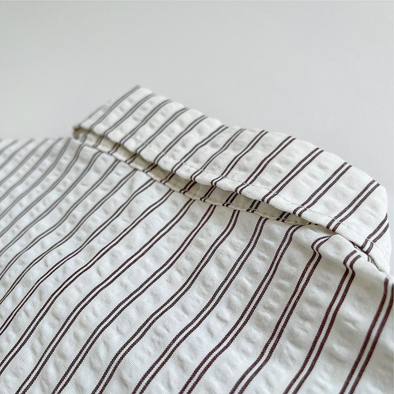 Ropa de Verano para Bebé 2025 Nuevo Estilo Niño Guapo Camisa Fina de Rayas Verticales Manga Corta Conjunto de Dos Piezas Ropa Infantil de Moda