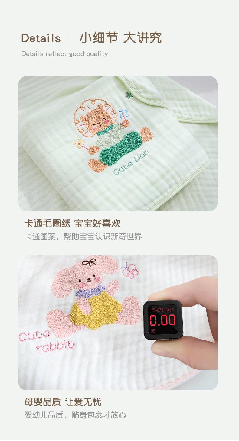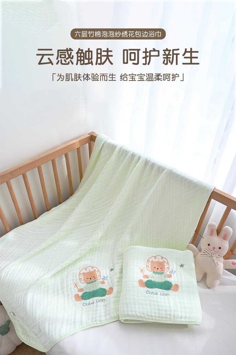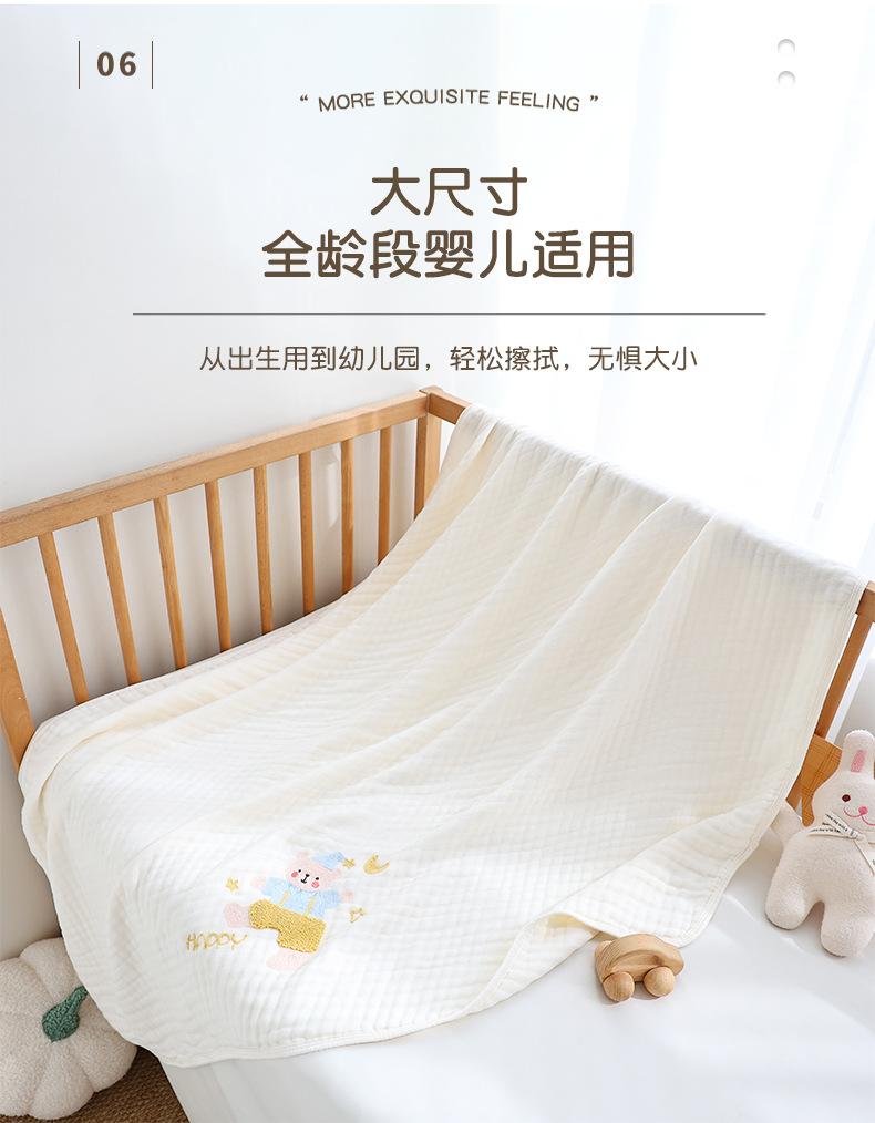 Toalla de baño para niños de clase A, 6 capas, de algodón de bambú, para bebé, tamaño grande, manta pequeña, con estampado bordado de lazo de dibujos animados