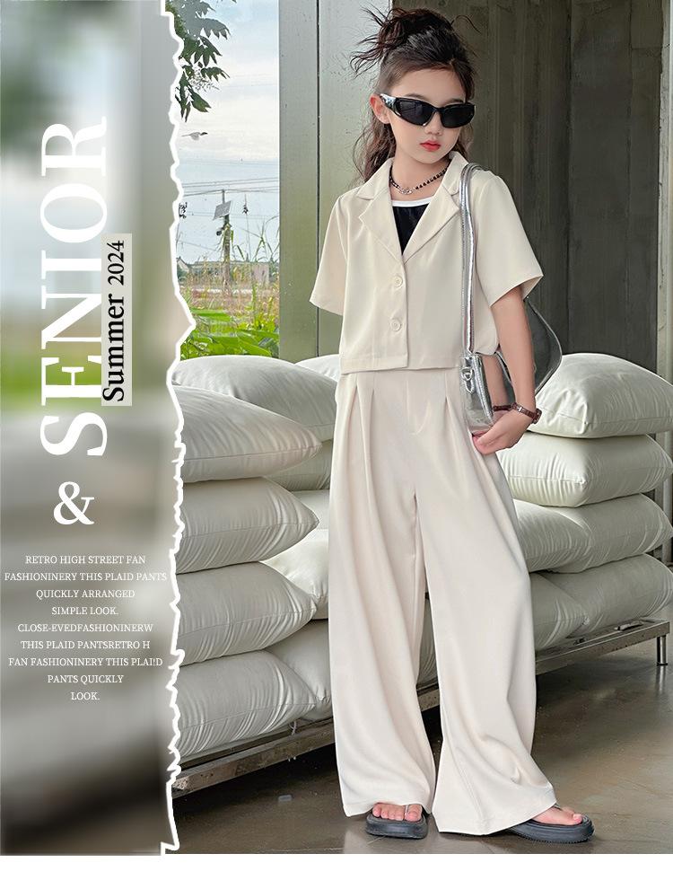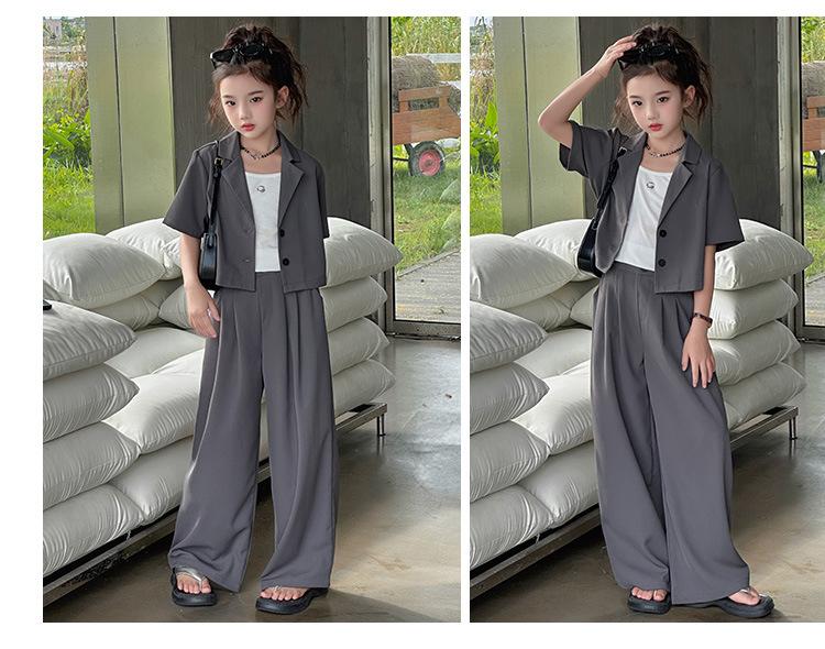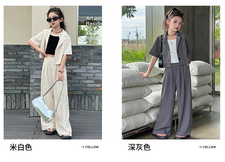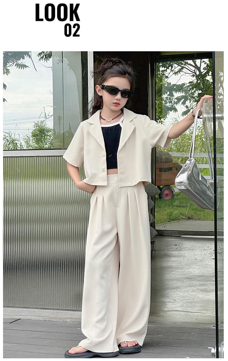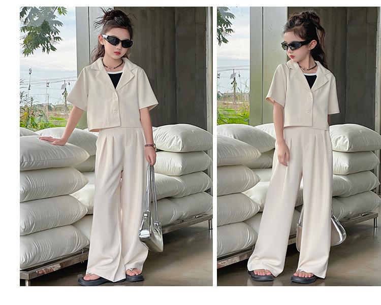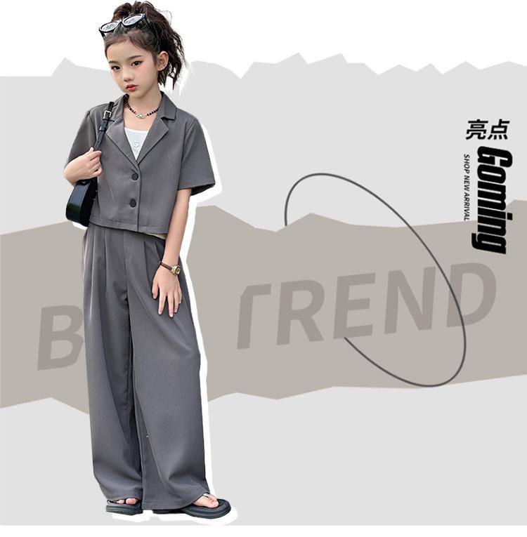 Compra Traje de Verano para Niñas traje 2025 Nuevo Estilo Occidental Moda Infantil Verano Pantalones de Pierna Ancha Conjunto de Dos Piezas al por mayor en Joom.pro