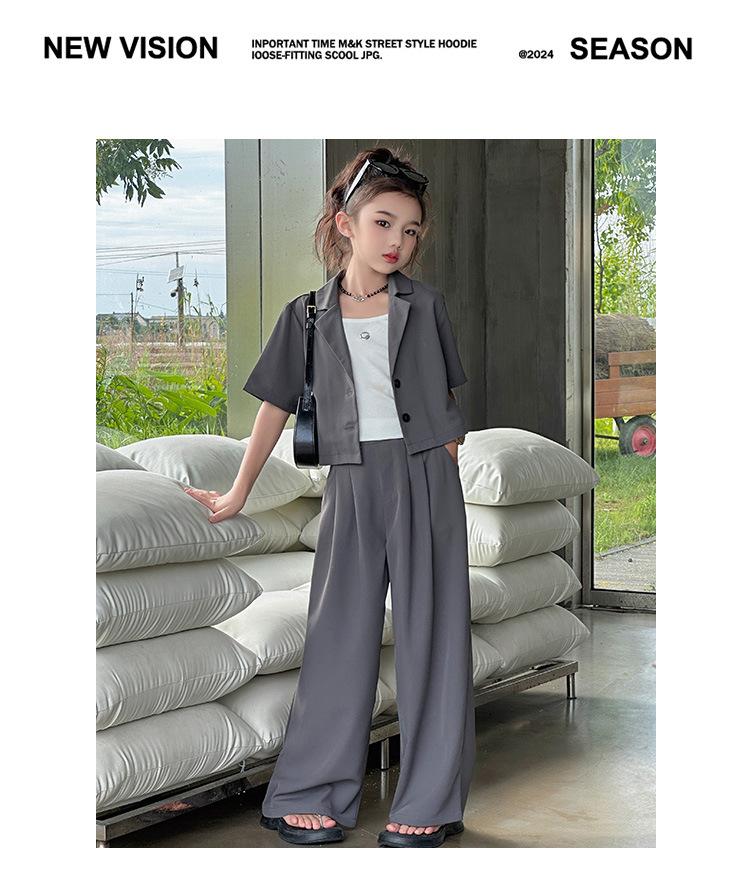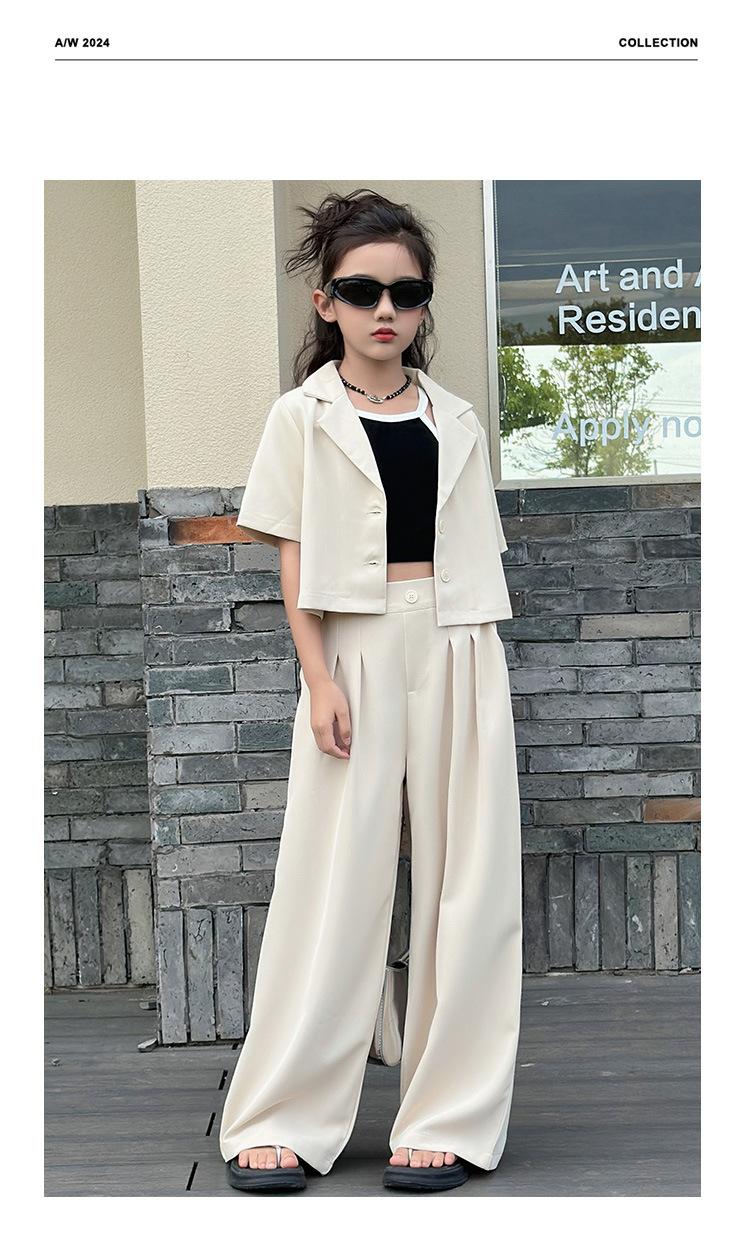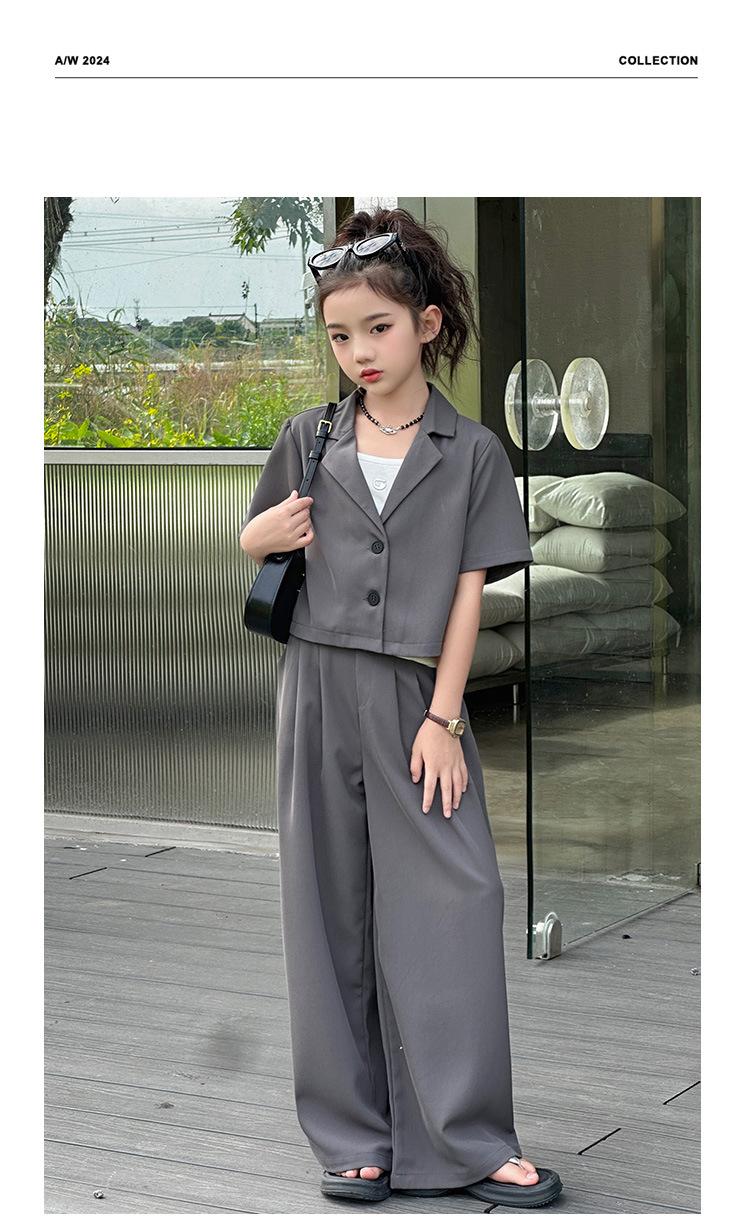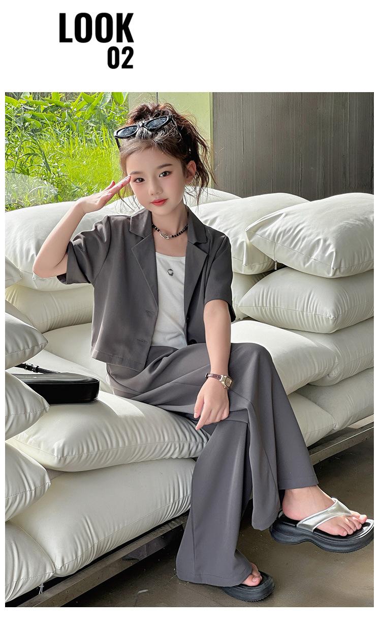 Compra Traje de Verano para Niñas traje 2025 Nuevo Estilo Occidental Moda Infantil Verano Pantalones de Pierna Ancha Conjunto de Dos Piezas al por mayor en Joom.pro