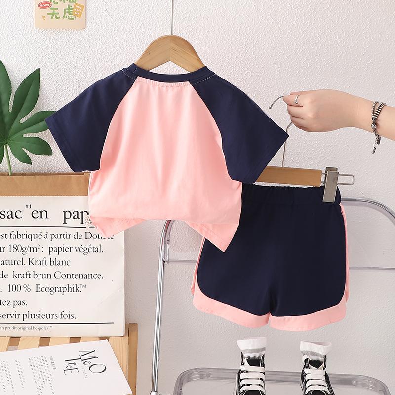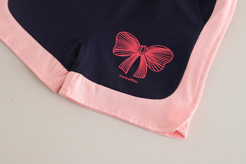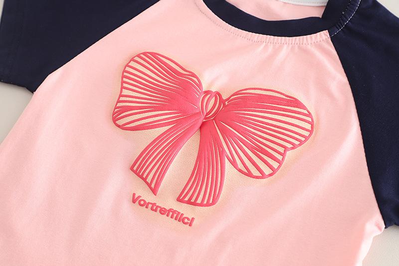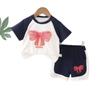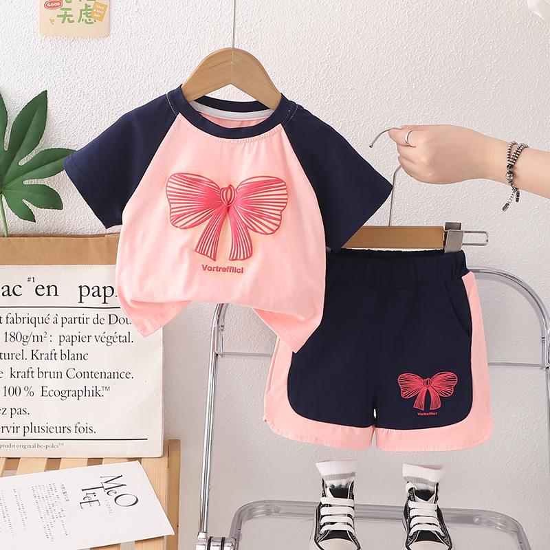 Traje de Vestido de Verano para Niñas 2025 Nuevo Estilo Verano para Niños Niñas Lazo Tridimensional Manga Corta Conjunto de Dos Piezas