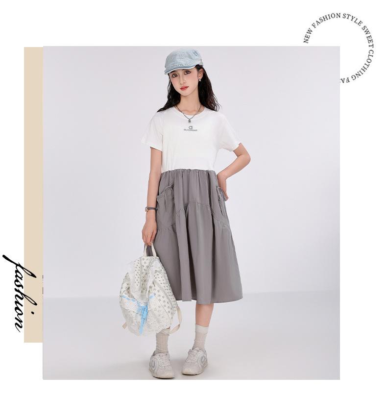 Vestido de verano para niñas de secundaria 2025 nuevo para niños grandes de manga corta falda de princesa verano juvenil talla grande ropa infantil
