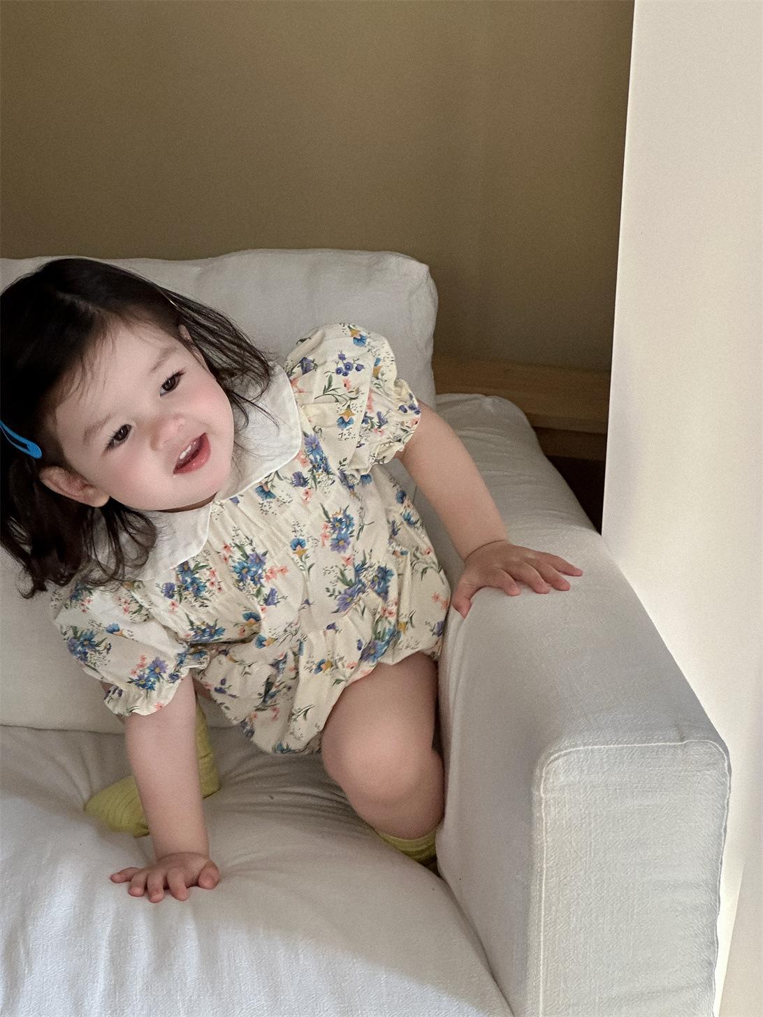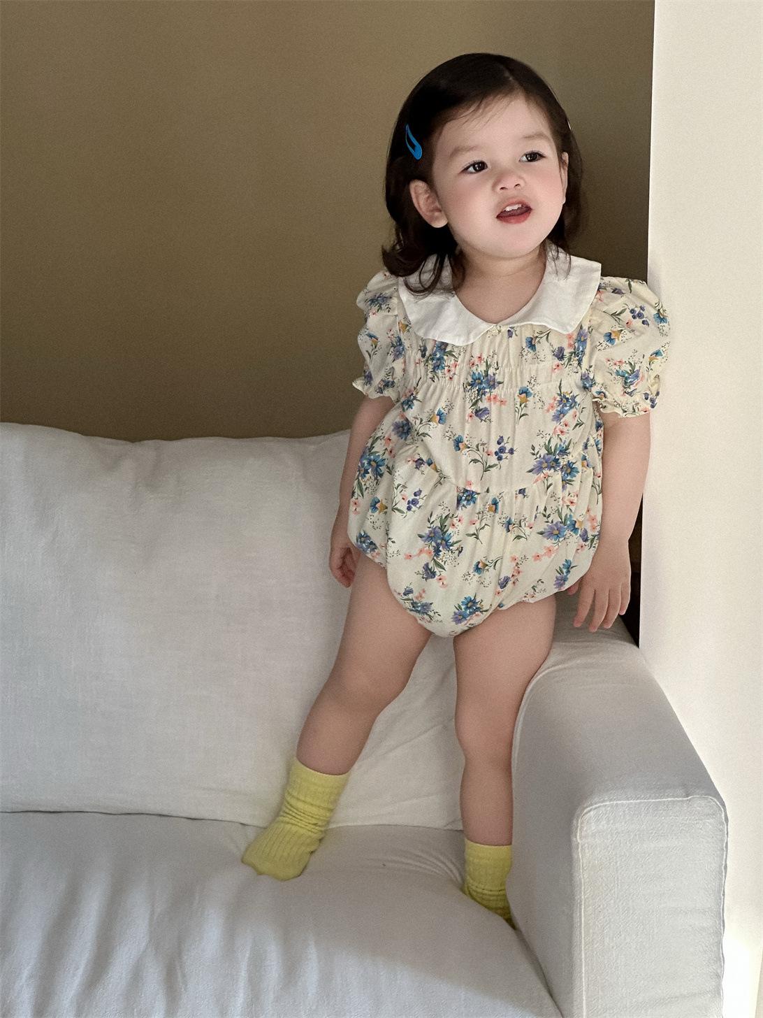 Ropa Floral de Liebre para Bebé Ropa de Bebé Verano Delgada Estilo Coreano Ropa para Niños Bolsa para Niñas Ropa para Pedos Ropa de Verano 2025