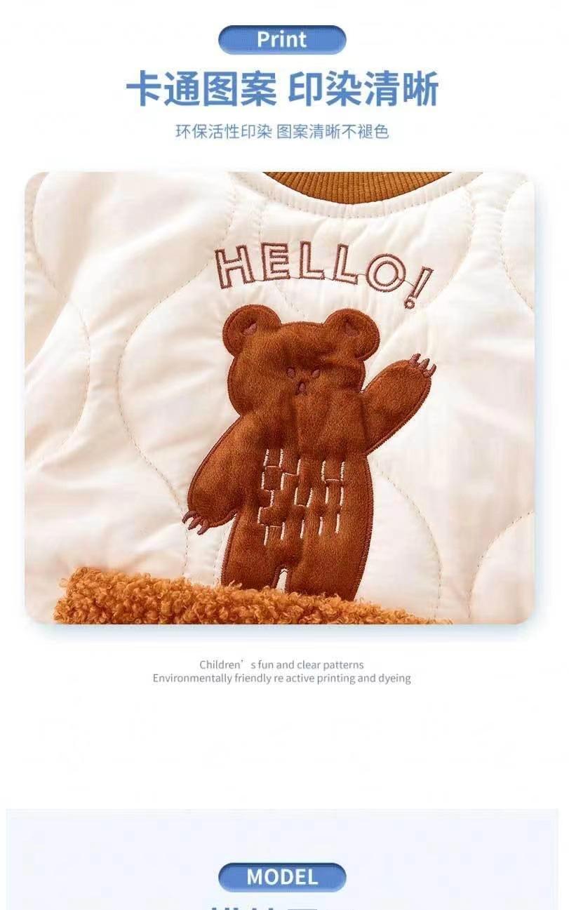 White [pocket bear fleece-lined thin cotton ha clothes]]