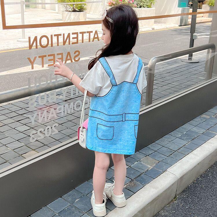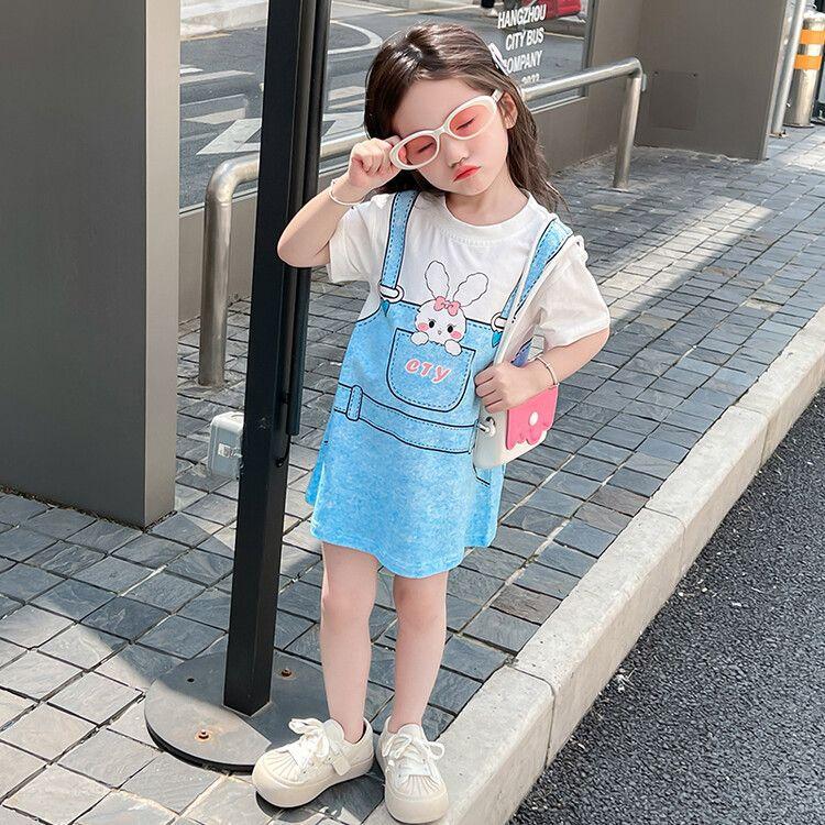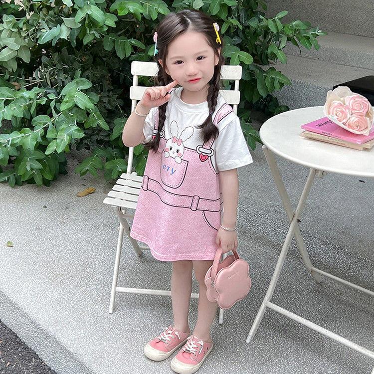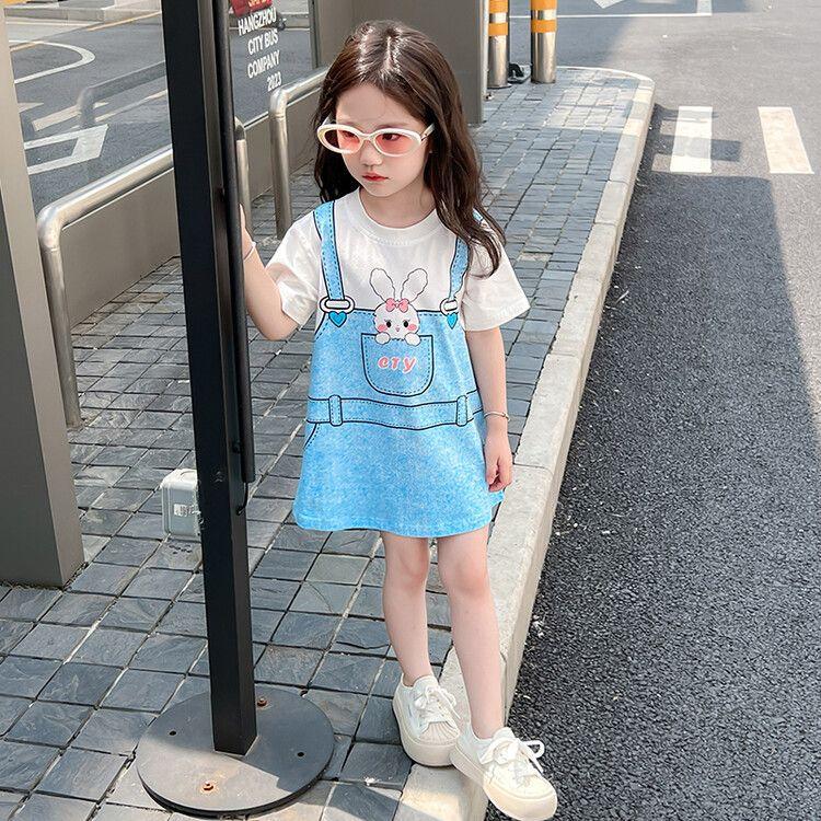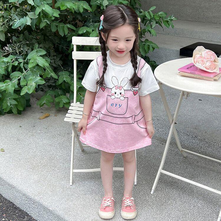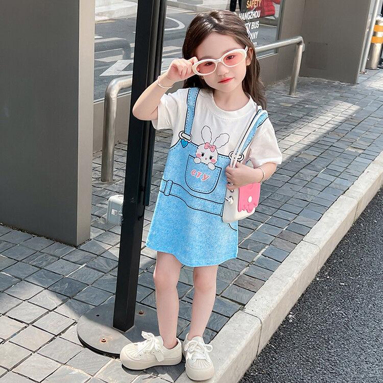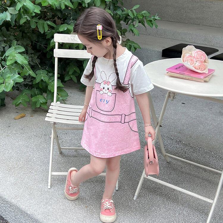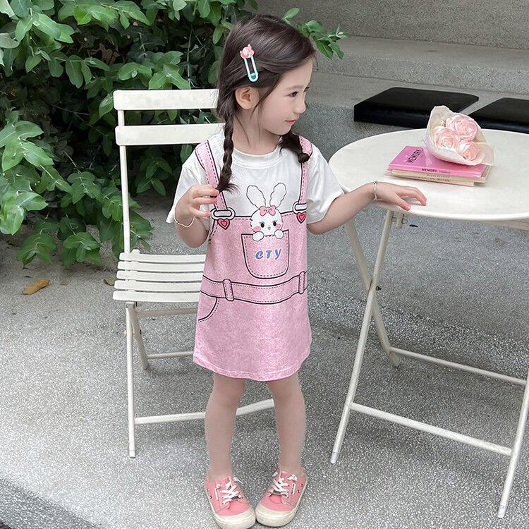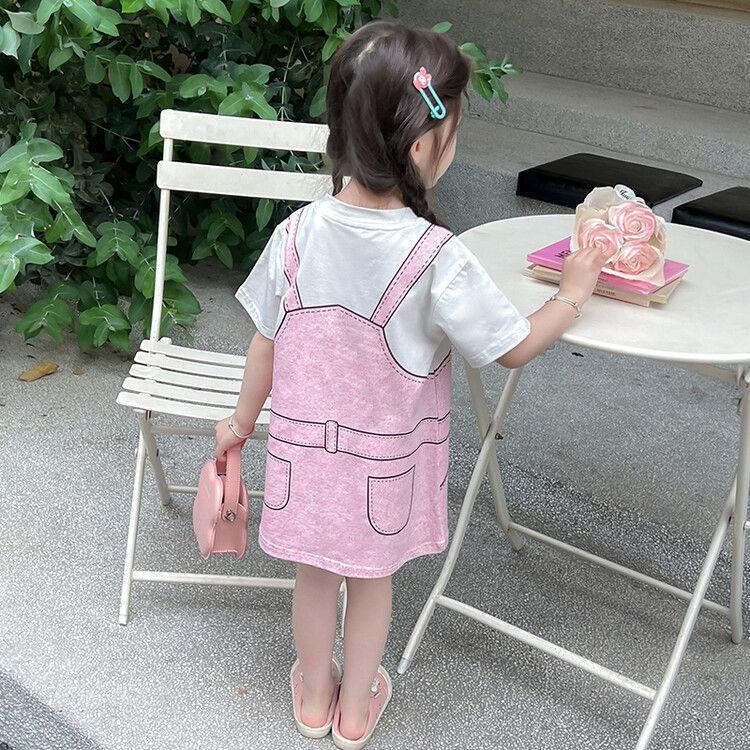 Vestido para Niñas 2025 Nuevo Vestido de Verano Vestido de Princesa Coreano para Niños Estilo Verano para Bebé Falso Dos Piezas Vestido de Tirantes