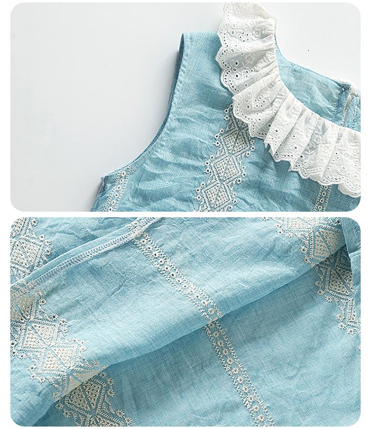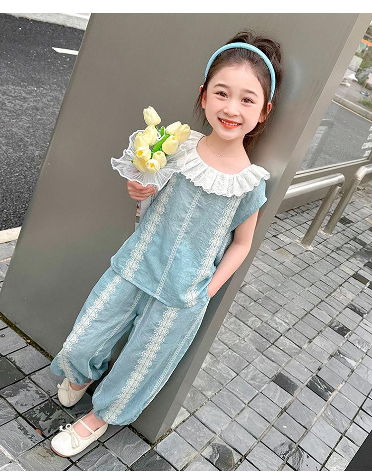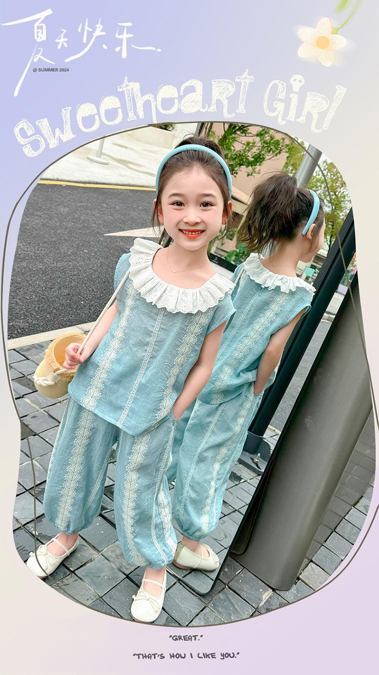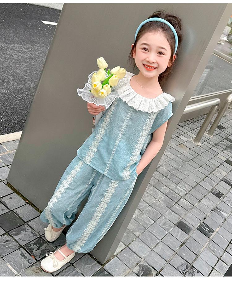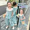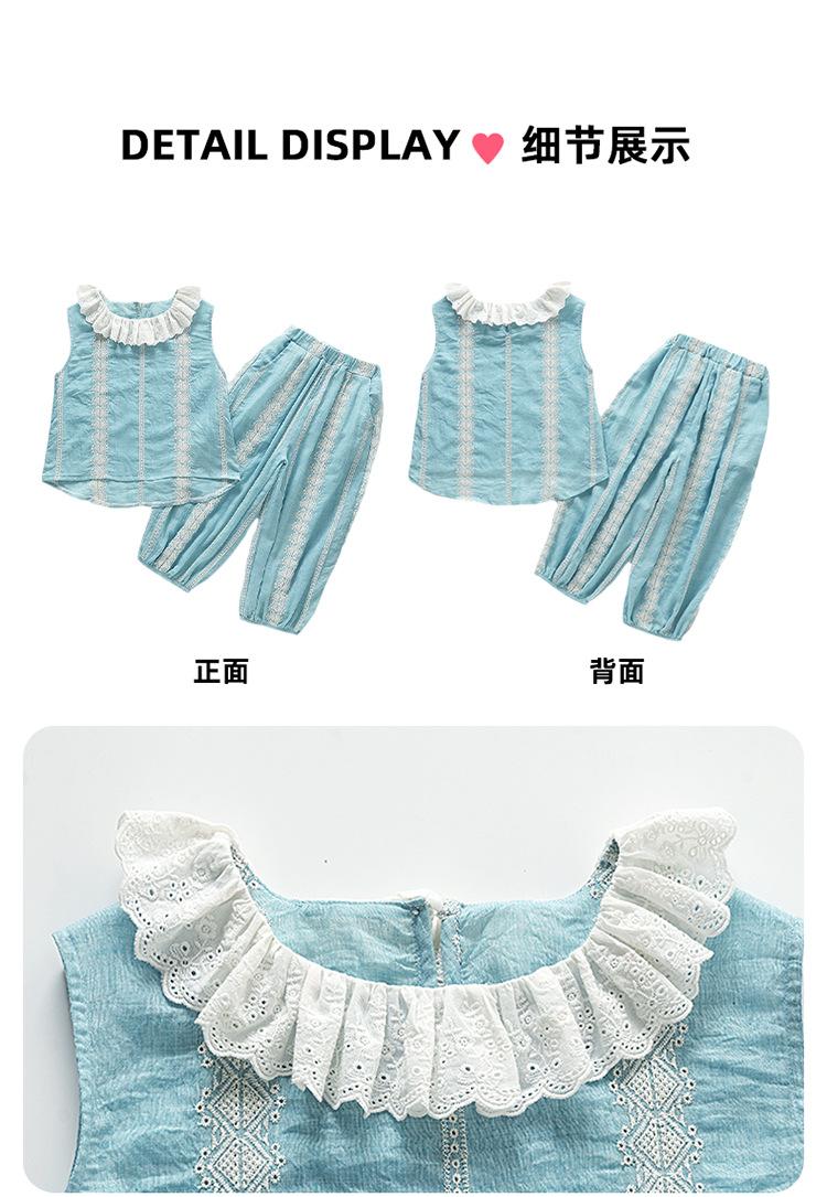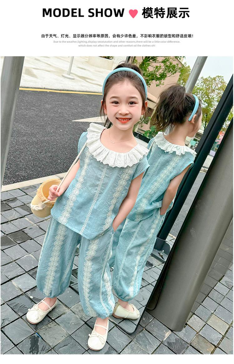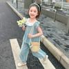 Traje bordado de encaje para niña, verano 2025, nuevo, elegante, sin mangas, pantalones, conjunto de dos piezas