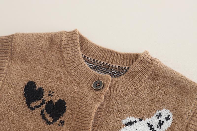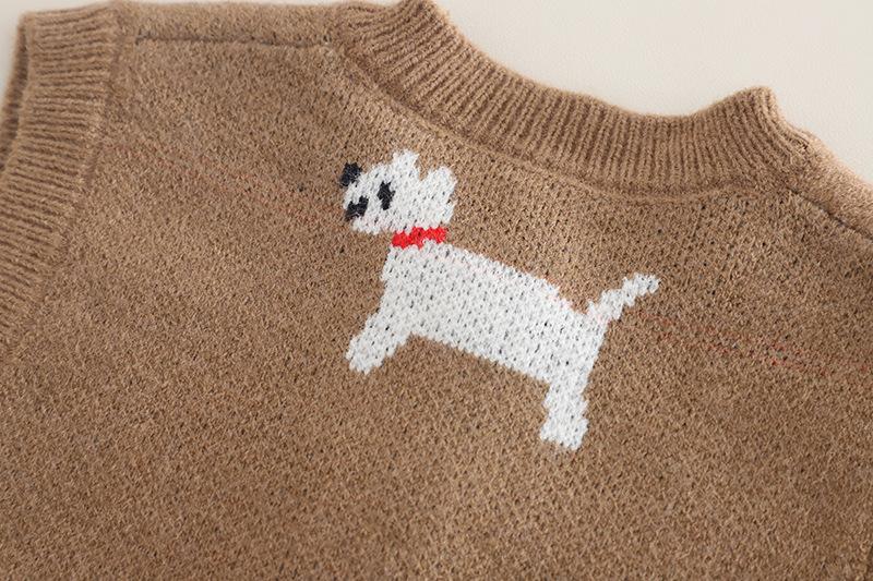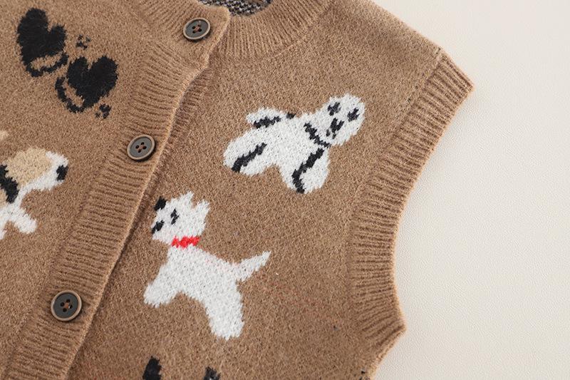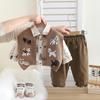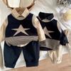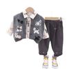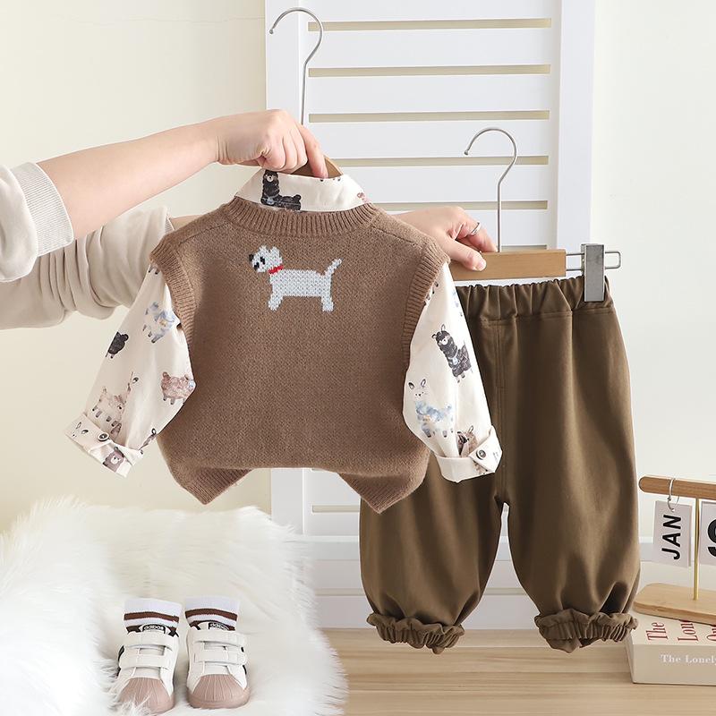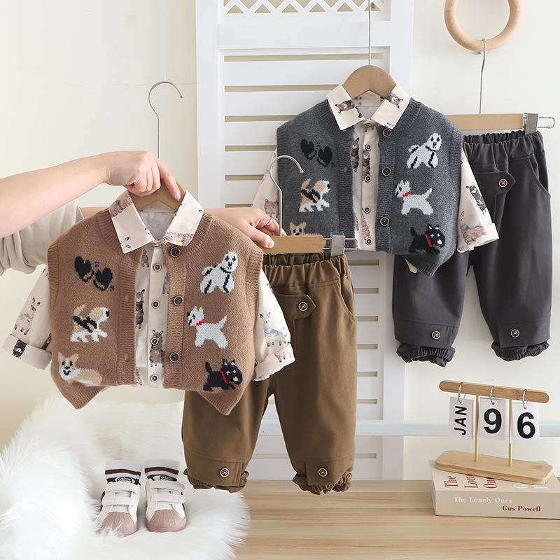 Traje de primavera para niño 2025 nuevo chaleco de suéter de dibujos animados camisa de manga larga tres piezas para niños bebé al por mayor