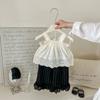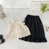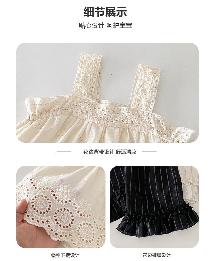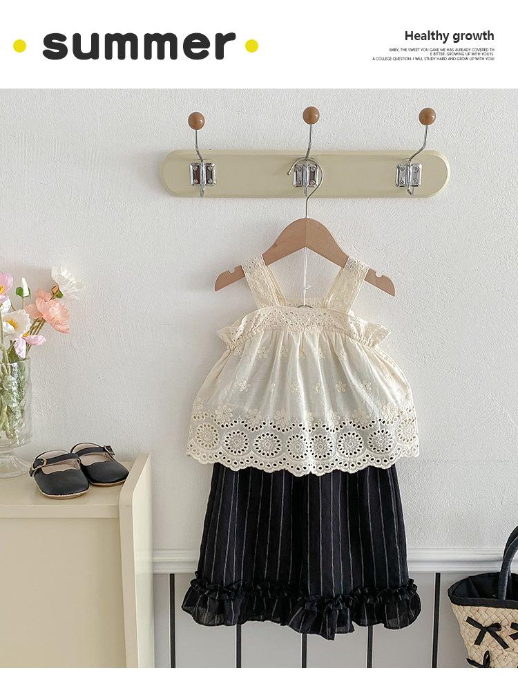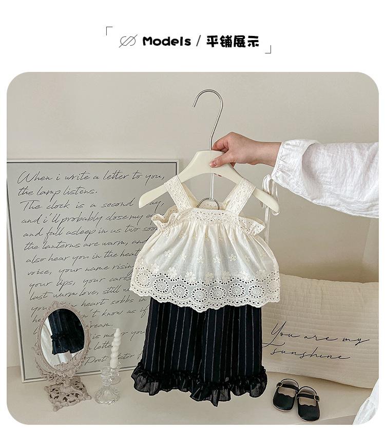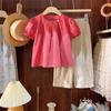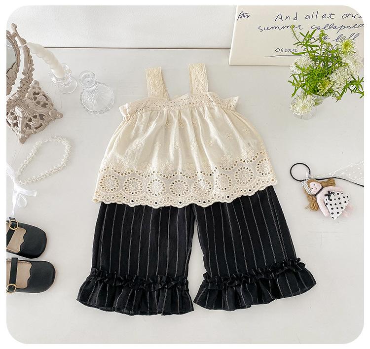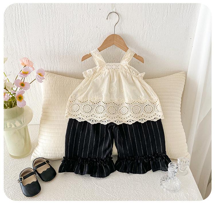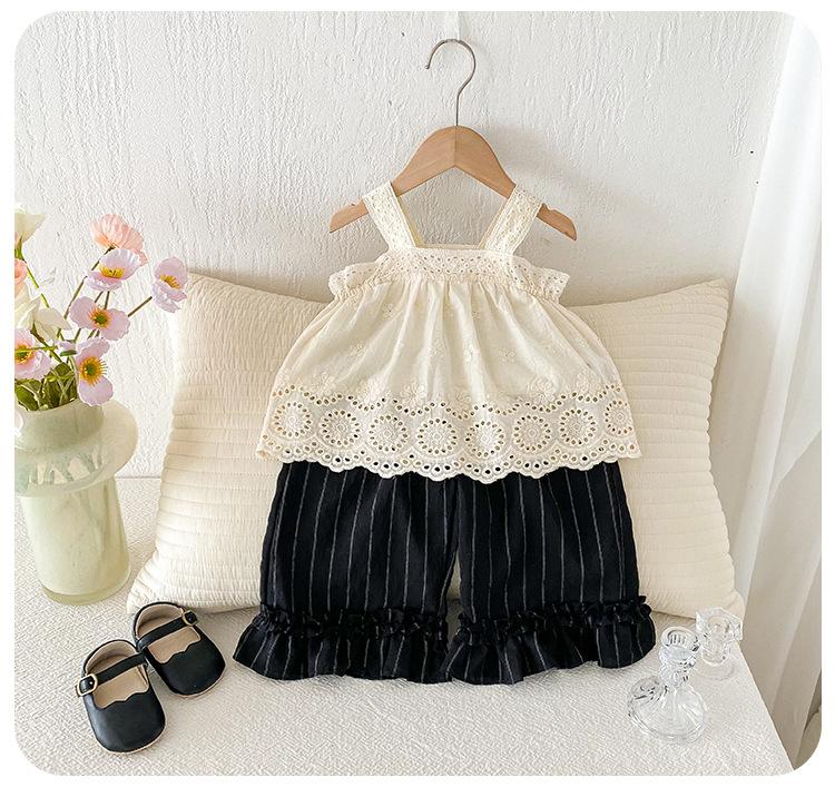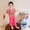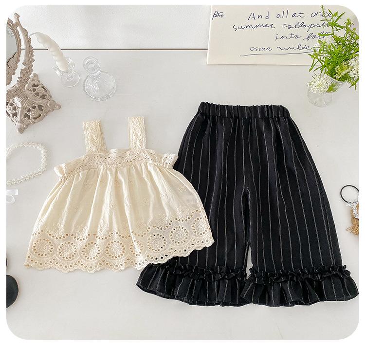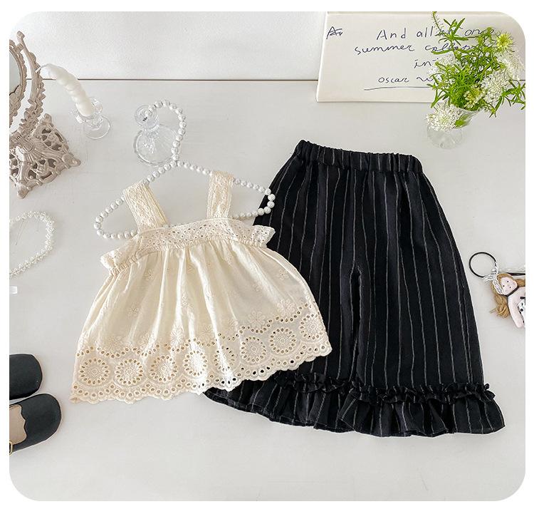 Portabebés estilo coreano Ropa de verano Traje para bebé niña Verano Camiseta de muñeca Pantalones de pierna ancha Conjunto delgado de dos piezas con abertura