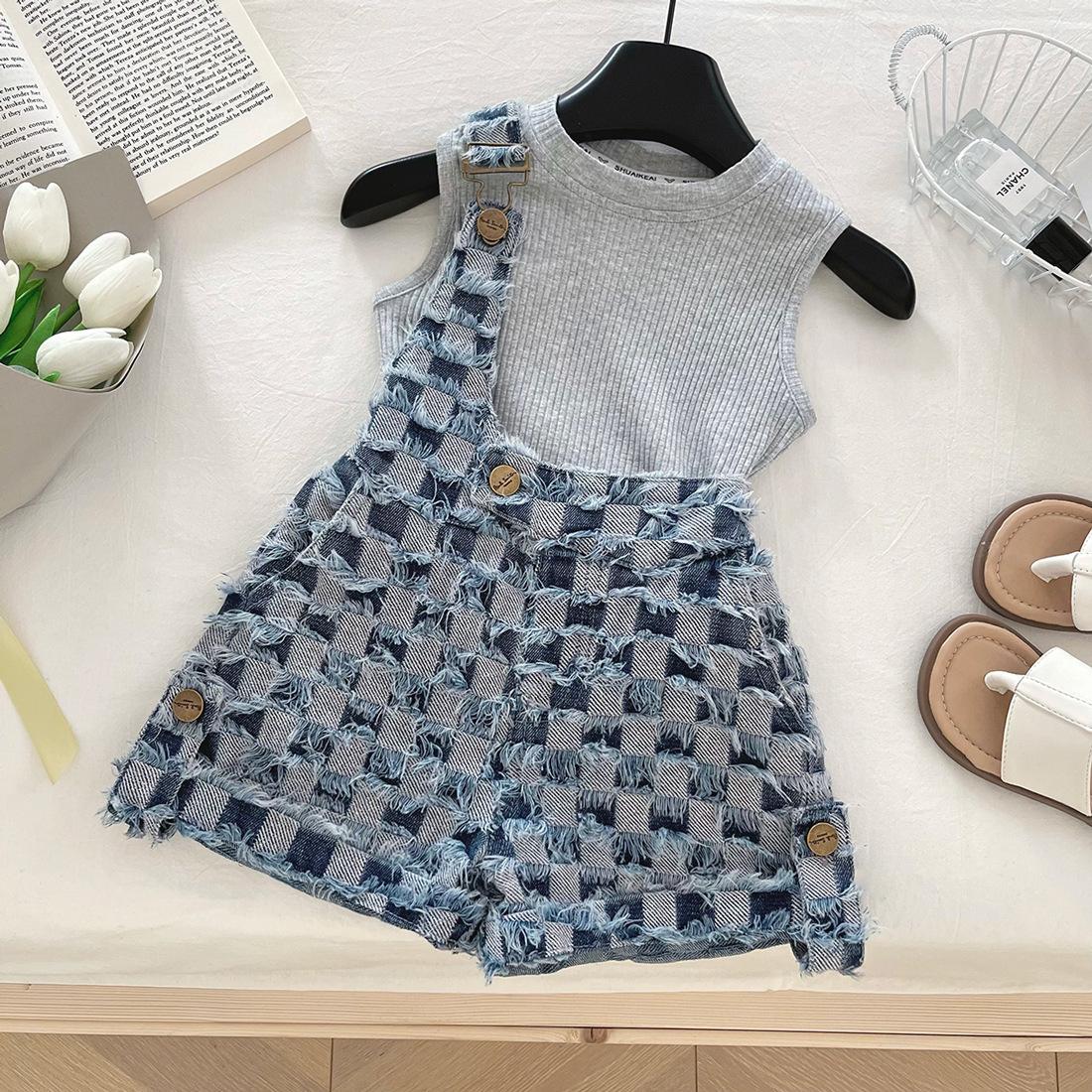 2025 Nuevo traje de niña Verano Top de bebé de mujer Moda de verano Chaleco coreano Traje de mezclilla para niños