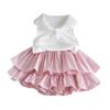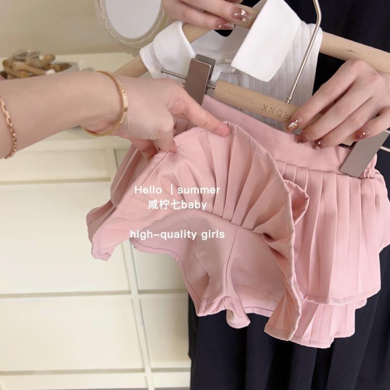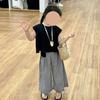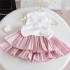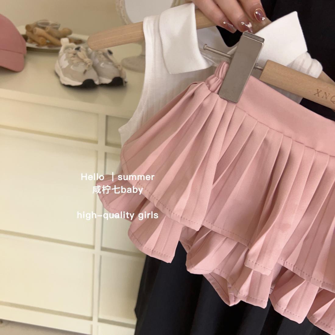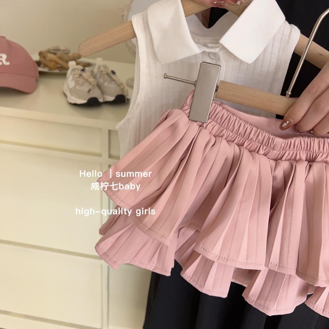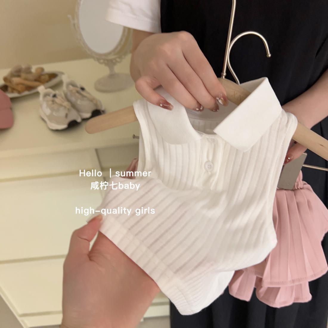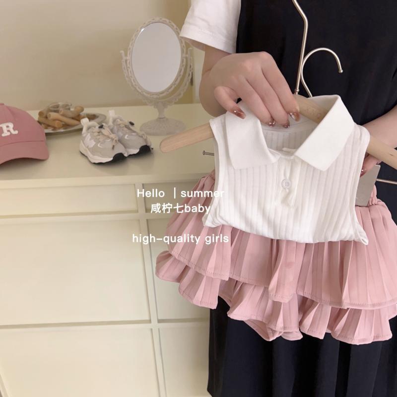 Traje de verano para niñas, estilo infantil, personalizado, de marca de moda, estilo coreano, camisa polo con solapa, chaleco, falda corta, falda pastel