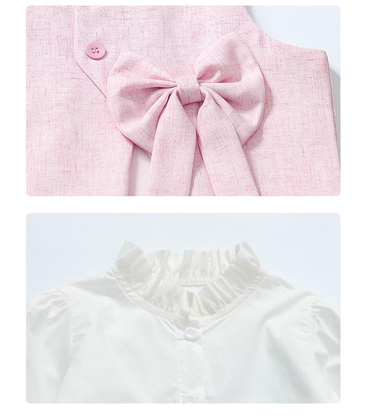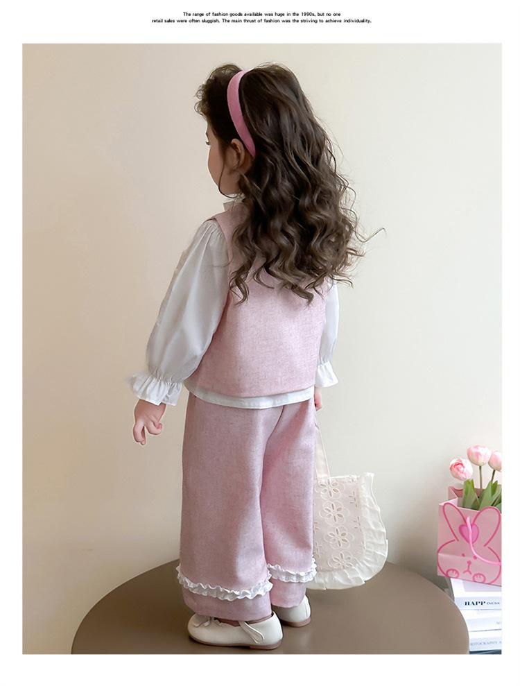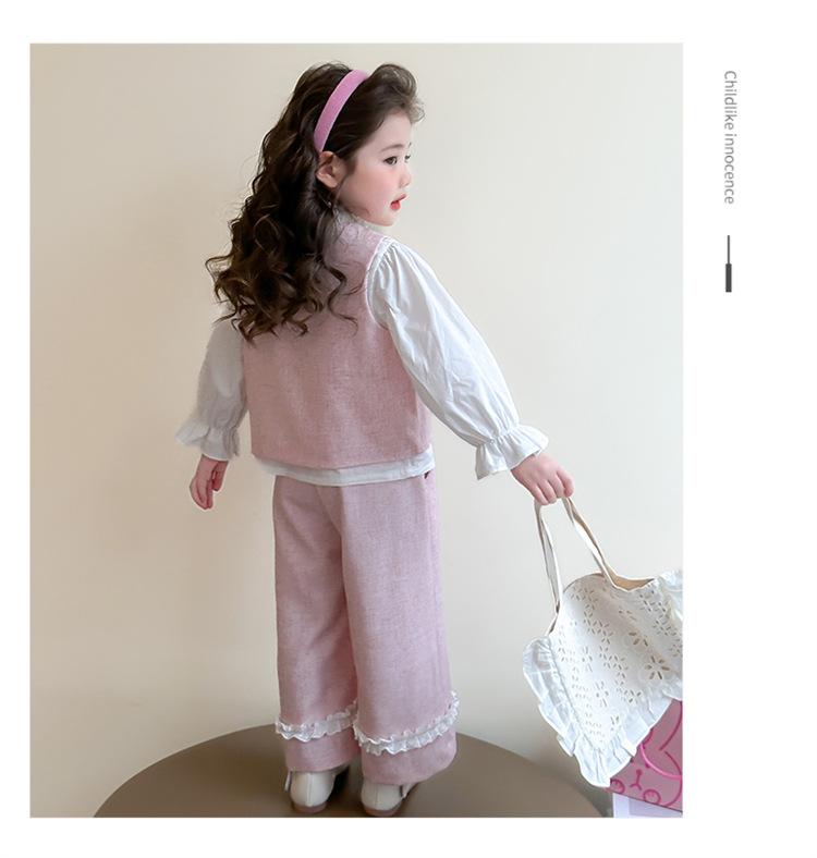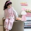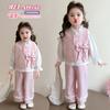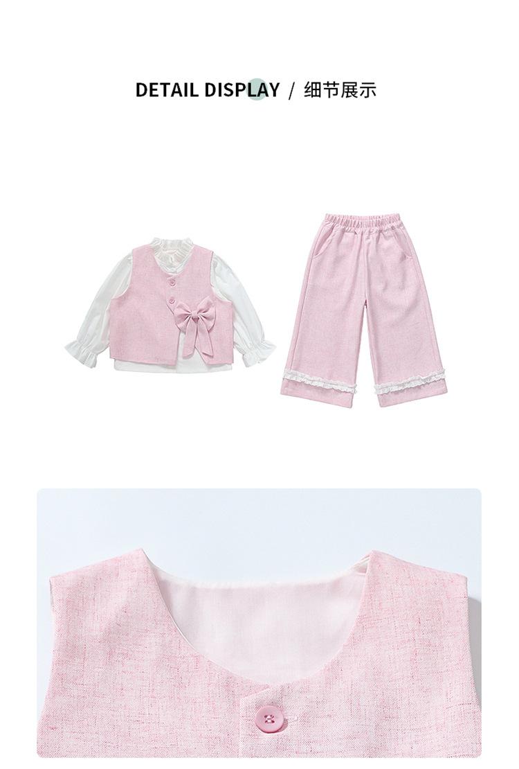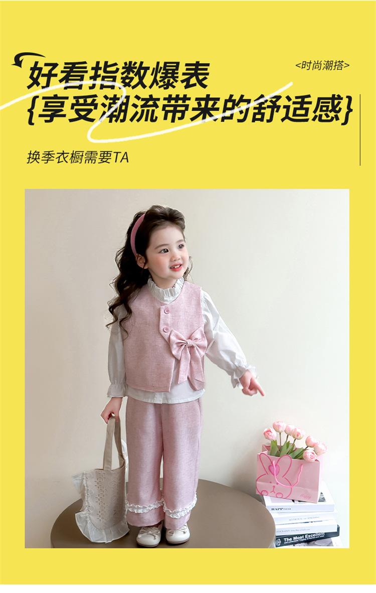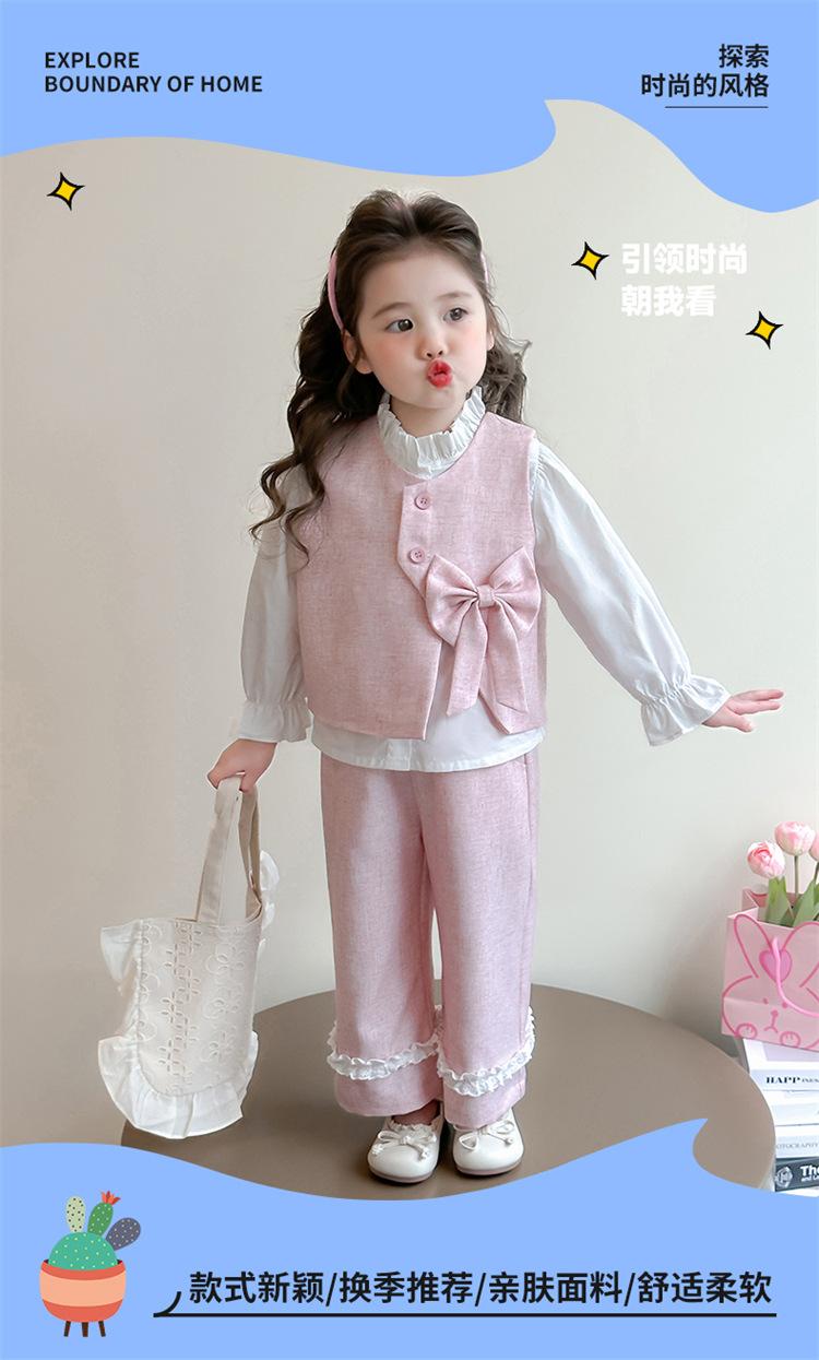 Conjunto de tres piezas con lazo para niña, primavera y otoño 2025, nueva moda, traje informal para niña pequeña, ropa de estilo occidental para niños