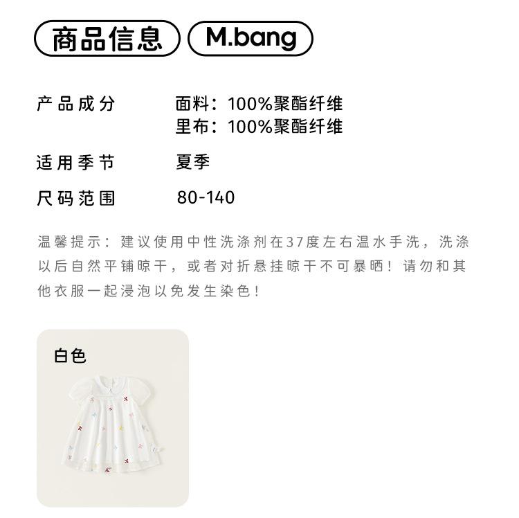 Vestido de princesa para niñas Yubao Children's Wear, vestido de verano con cuello de muñeca y lazo pequeño bordado, vestido bonito para niña