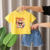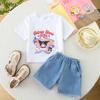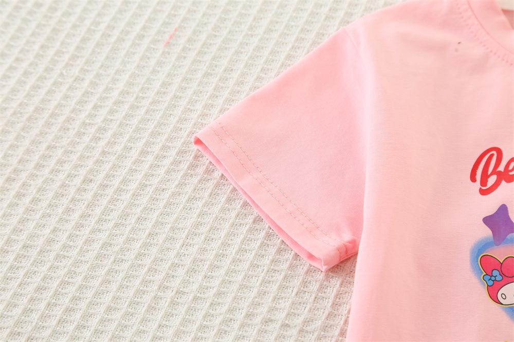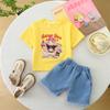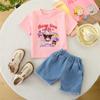 Traje de verano para niña 2025, nuevo traje de verano para niñas, lindo conjunto de dos piezas de manga corta con dibujos animados, ropa para bebés y niños a la moda.