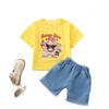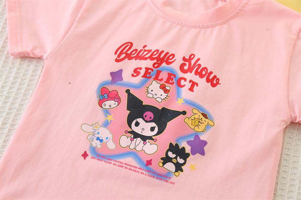 Pink cartoon five-pointed star short sleeve suit, White cartoon five-pointed star short-sleeved suit, Yellow c...
