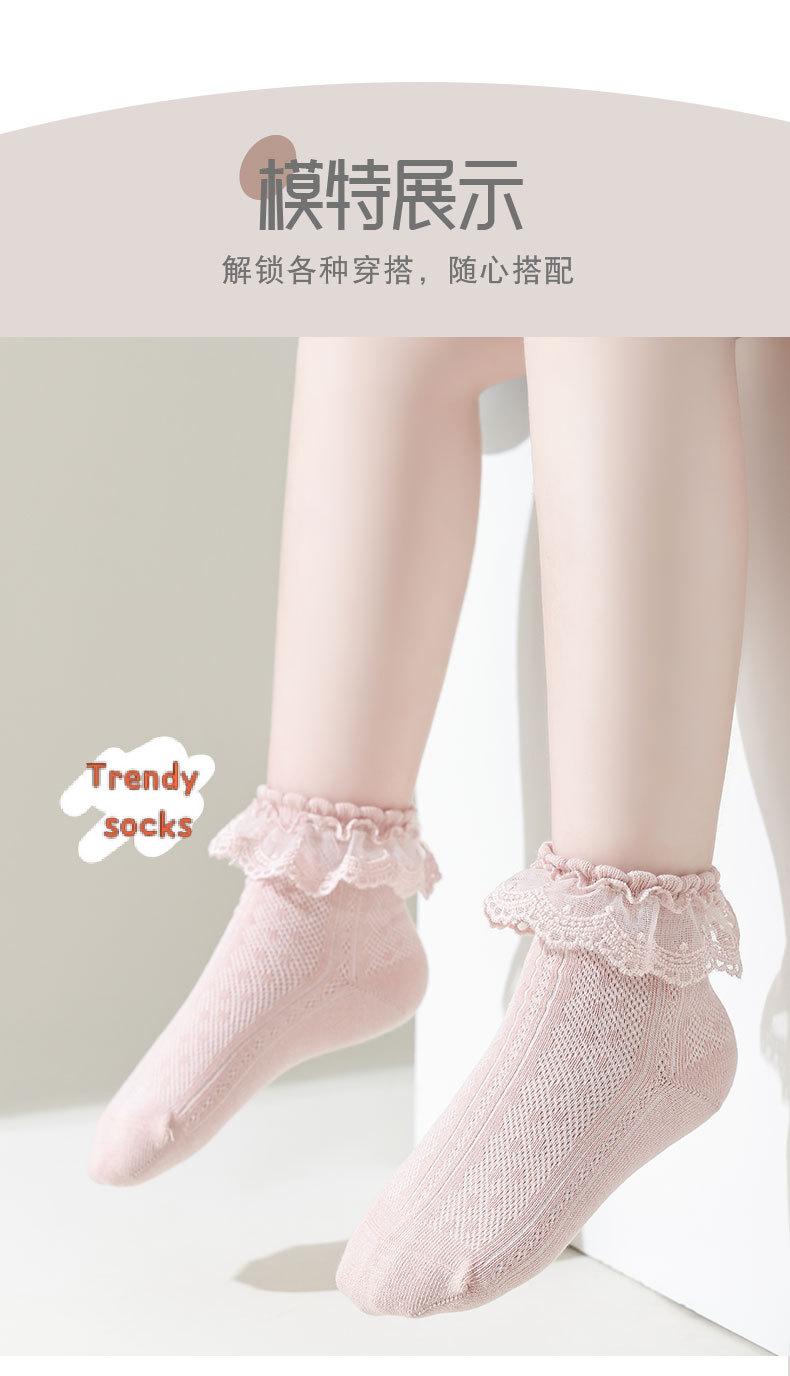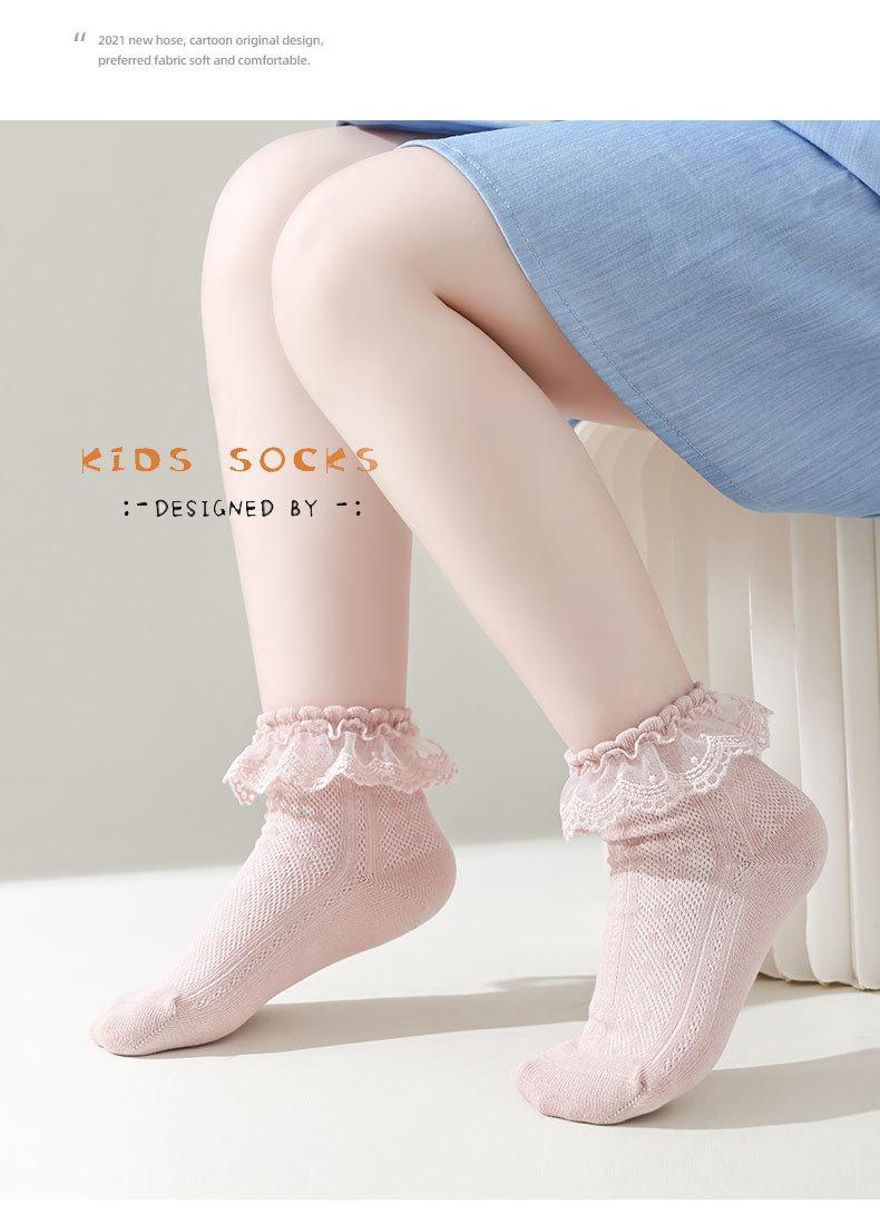 Calcetines de encaje finos de malla de algodón peinado para niñas de primavera y verano