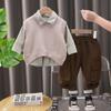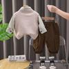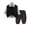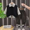 Conjunto de ropa de primavera para niño 2025, suéter de color sólido estilo occidental para bebé, chaleco de tres piezas, ropa de primavera y otoño para niño