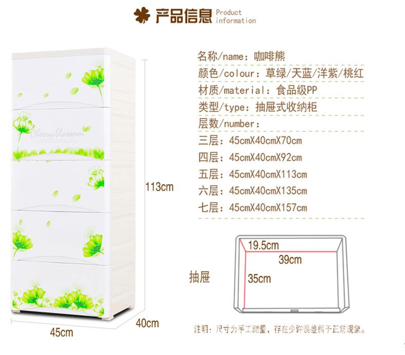 Gabinete de almacenamiento con cajones engrosados para bebés y niños, gabinete de almacenamiento de plástico de cinco cajones para juguetes, armario para bebés multicapa