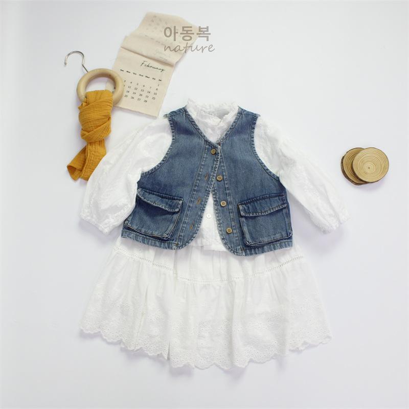 Falda de niña de primavera 2025, nueva falda para bebé, falda blanca coreana de estilo pastoral dulce, falda fina para niña.
