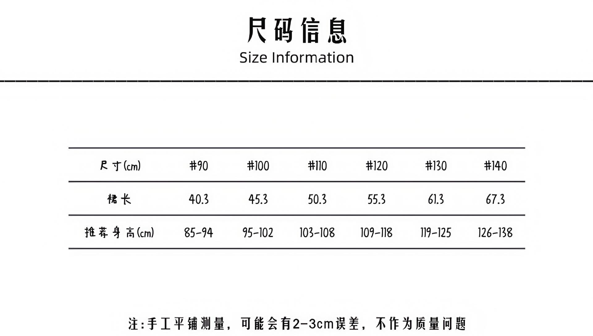 Children (3~8 years old, 100~140cm)
