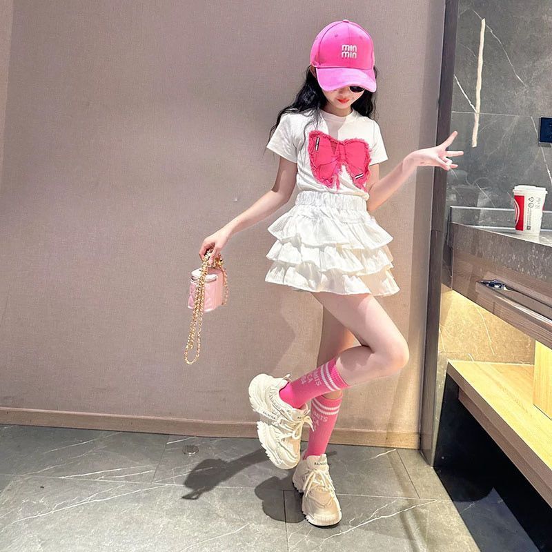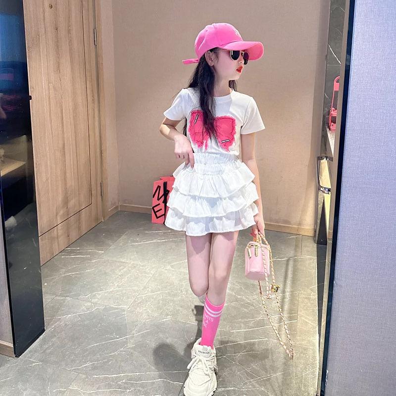 Traje de Verano para Niñas 2024 Nuevo Conjunto de Dos Piezas de Camiseta de Manga Corta para Niños y Falda Pastel Traje de Verano Estilo Princesa para Bebé