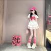 White pink butterfly short sleeves + white cake skirt, White pink butterfly short sleeves, White three-layer c...
