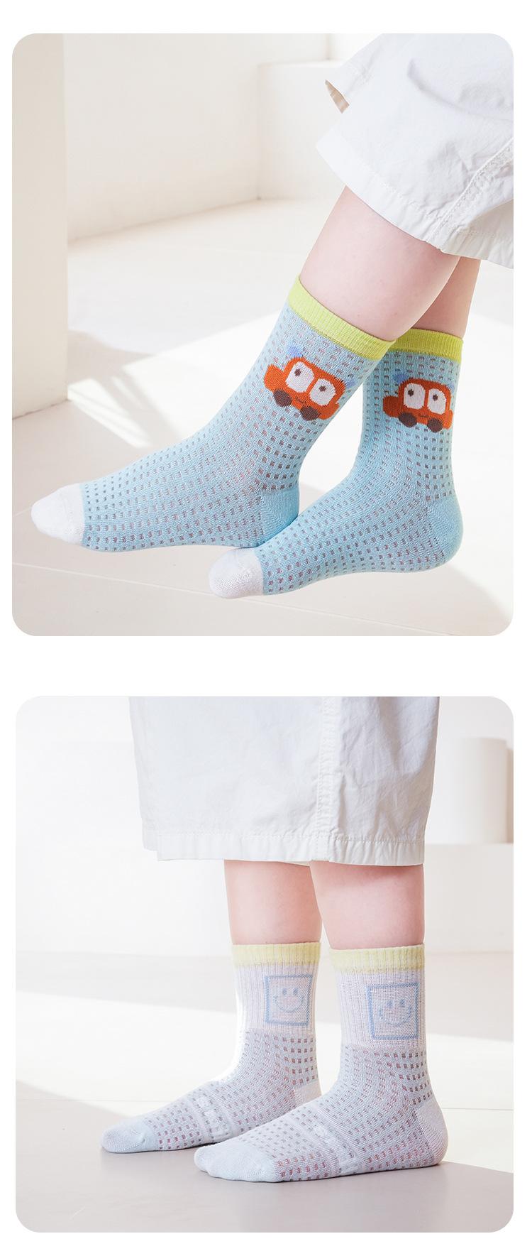 Calcetines de verano para niños, finos, de dibujos animados, sin hueso, de malla, transpirables, de algodón peinado, para estudiantes
