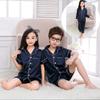 Pijamas para niños de primavera y verano, trajes de seda para niños grandes y pequeños, pantalones de manga corta, pijamas finos para niñas