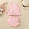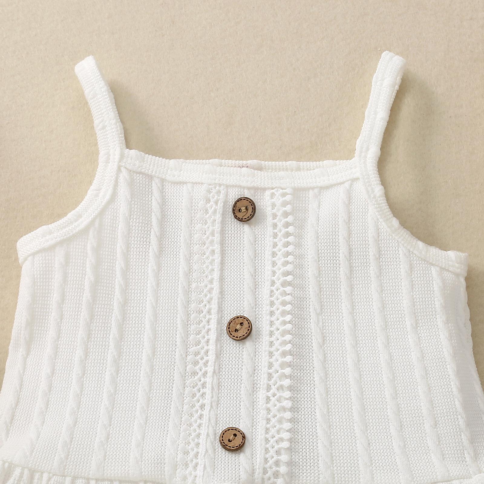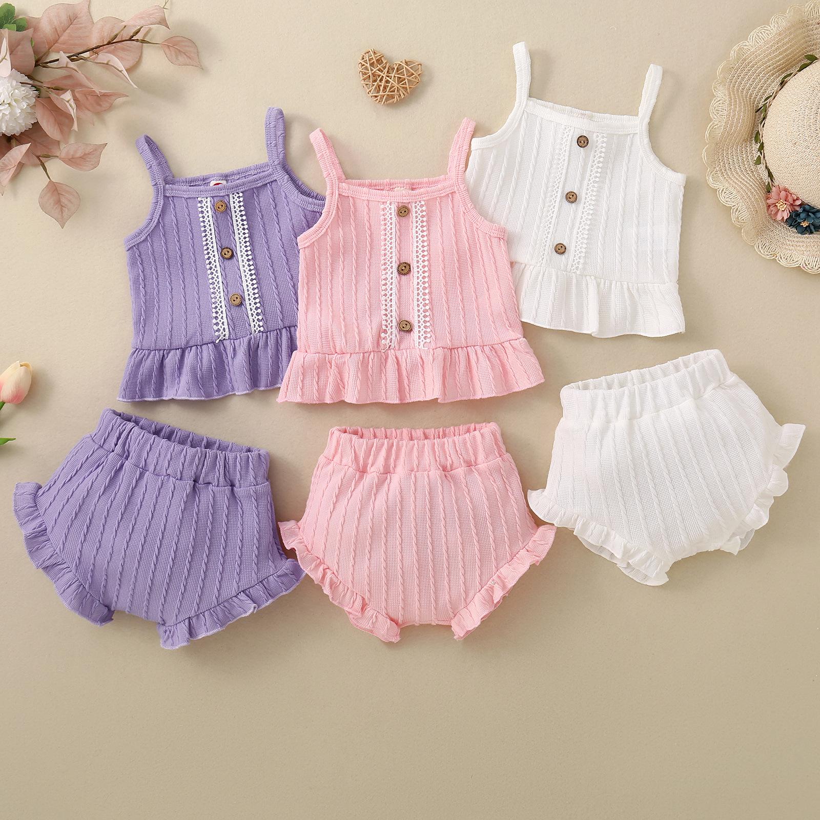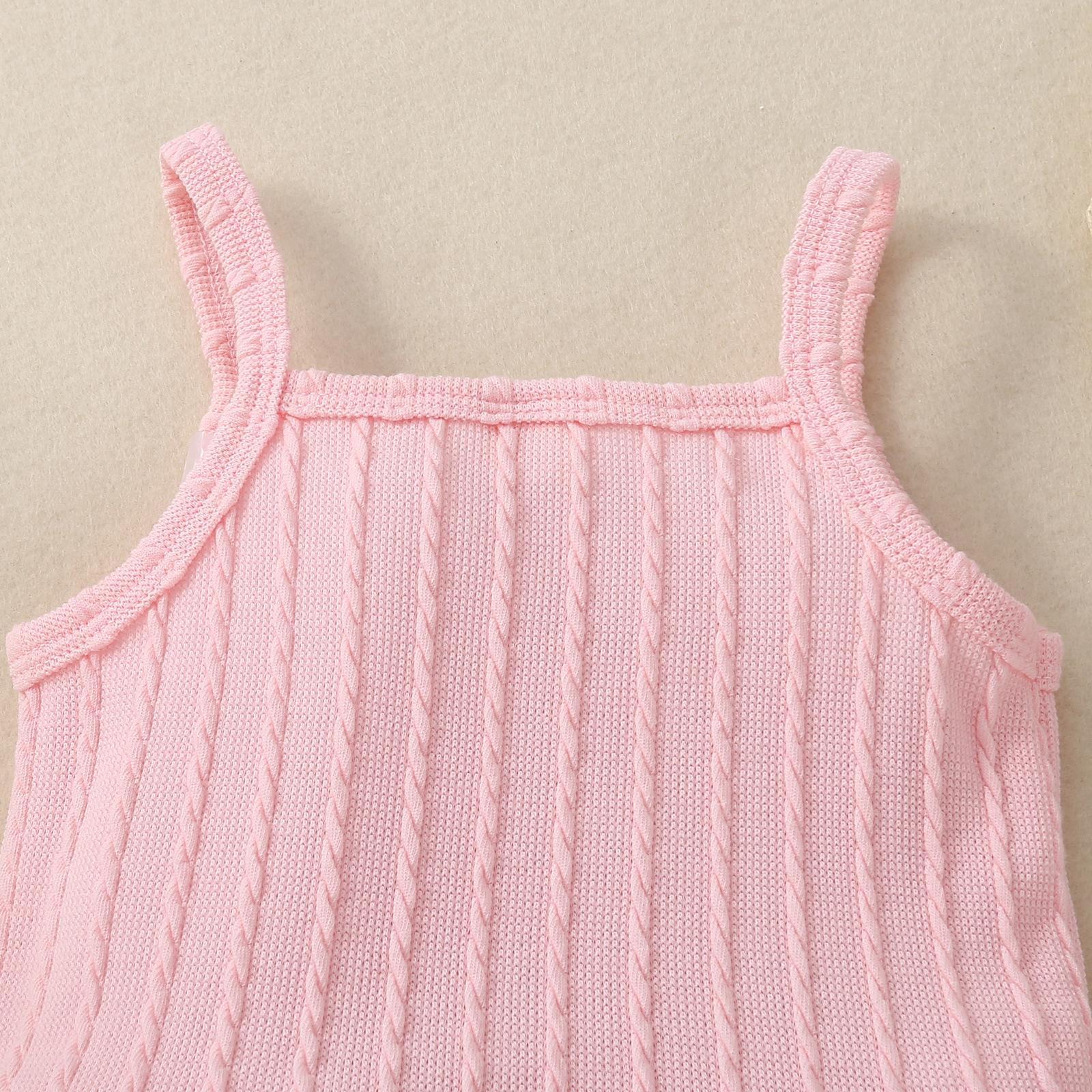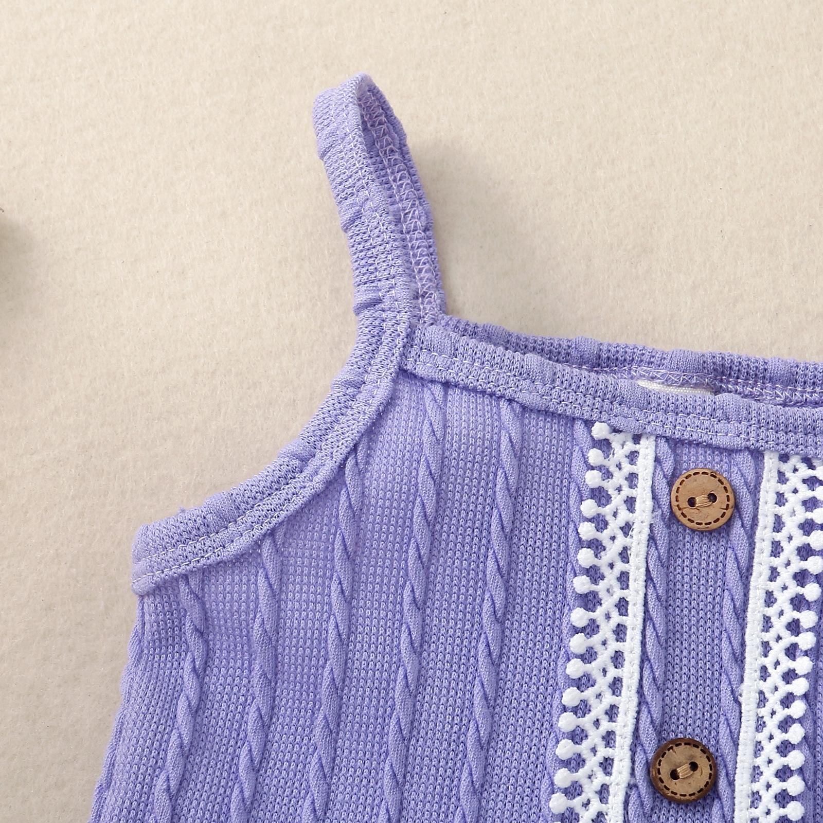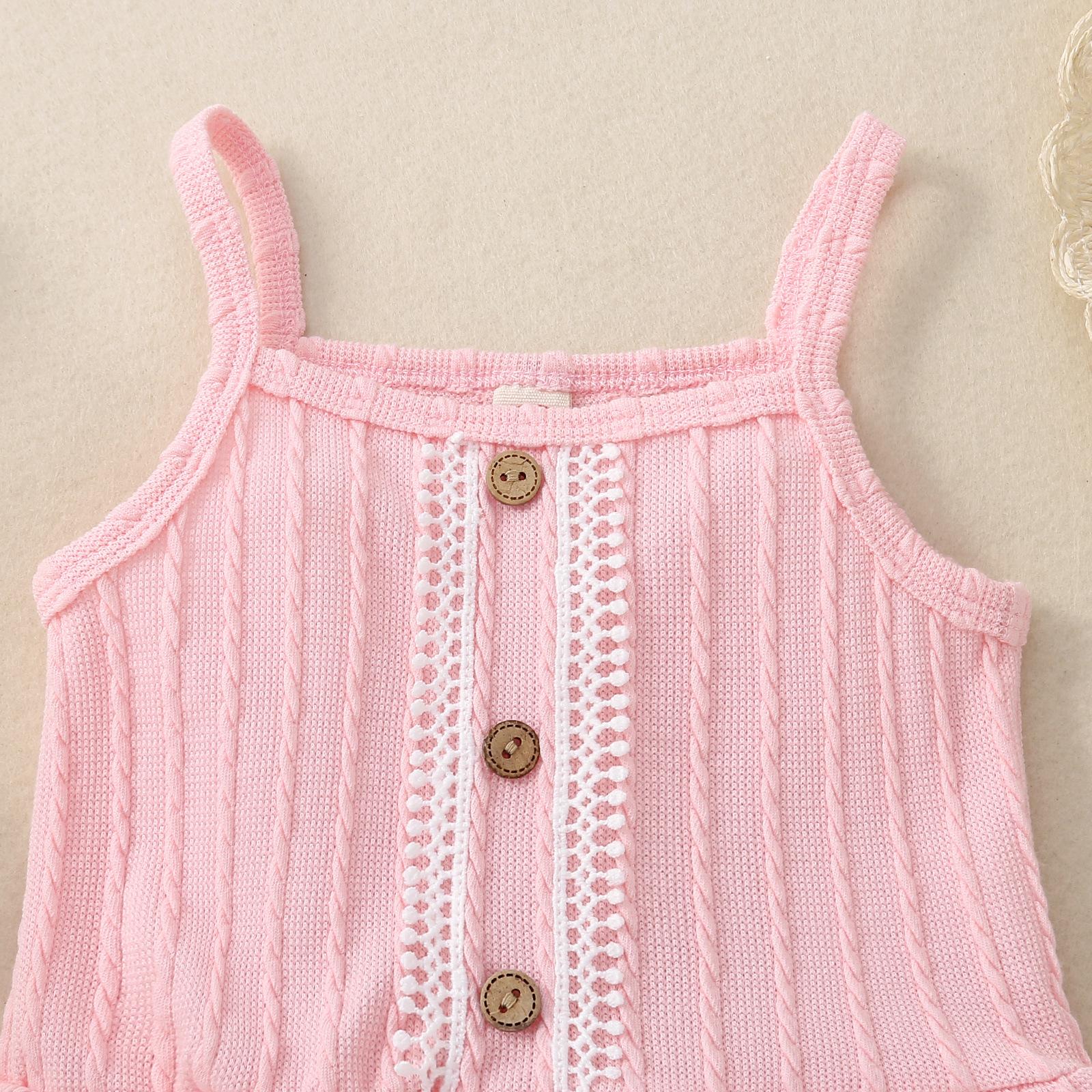 Bebé Niña Bebé Verano Color Sólido Encaje Tirantes Color Sólido Pantalones Hare Conjunto de Dos Piezas Encaje Niños Pequeños y Medianos