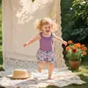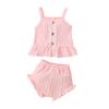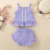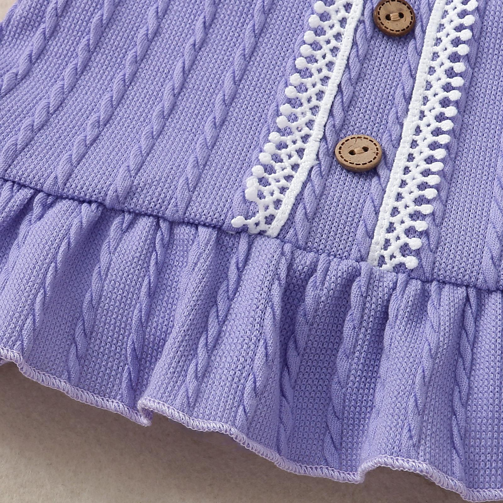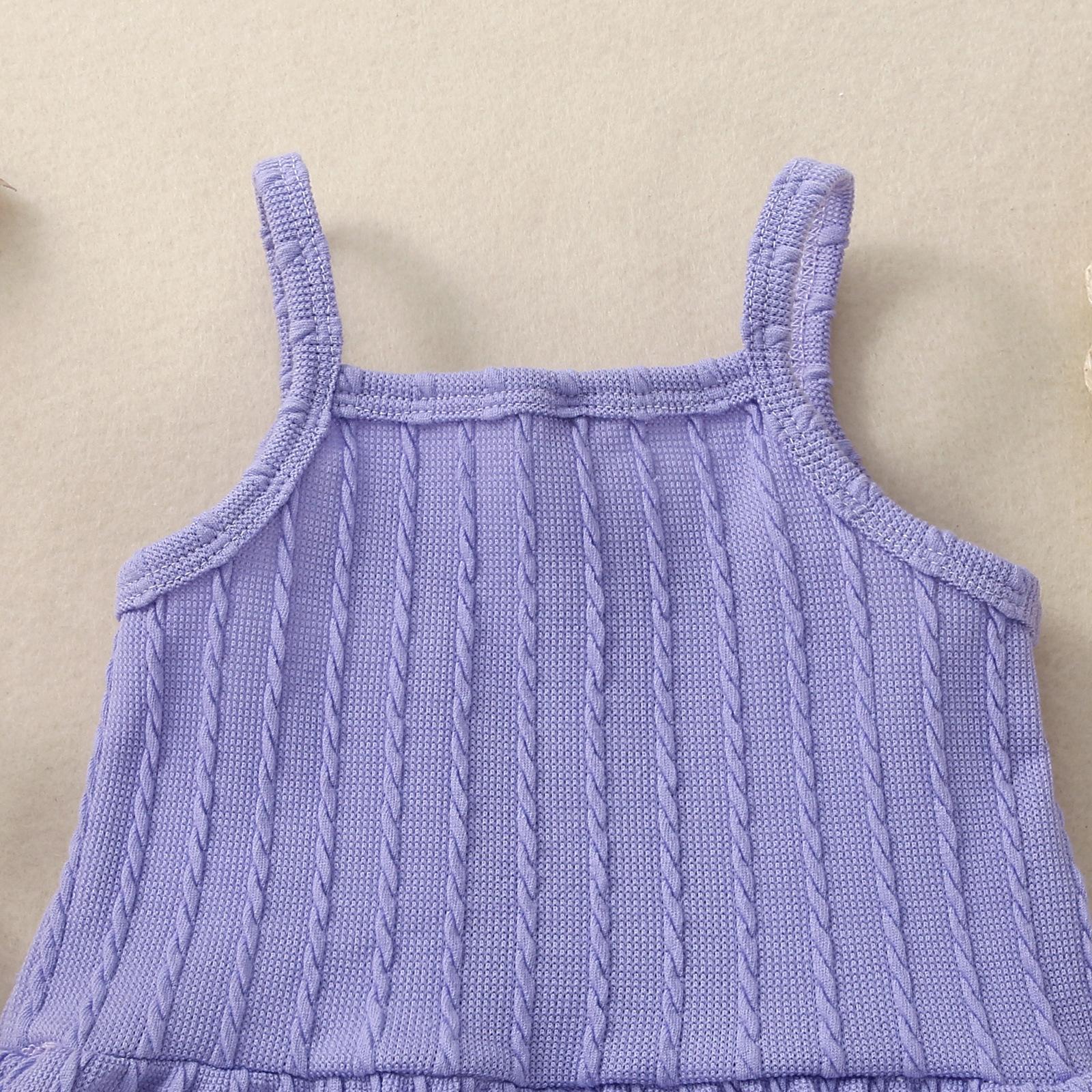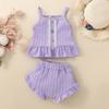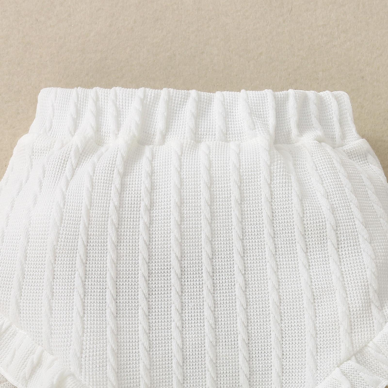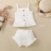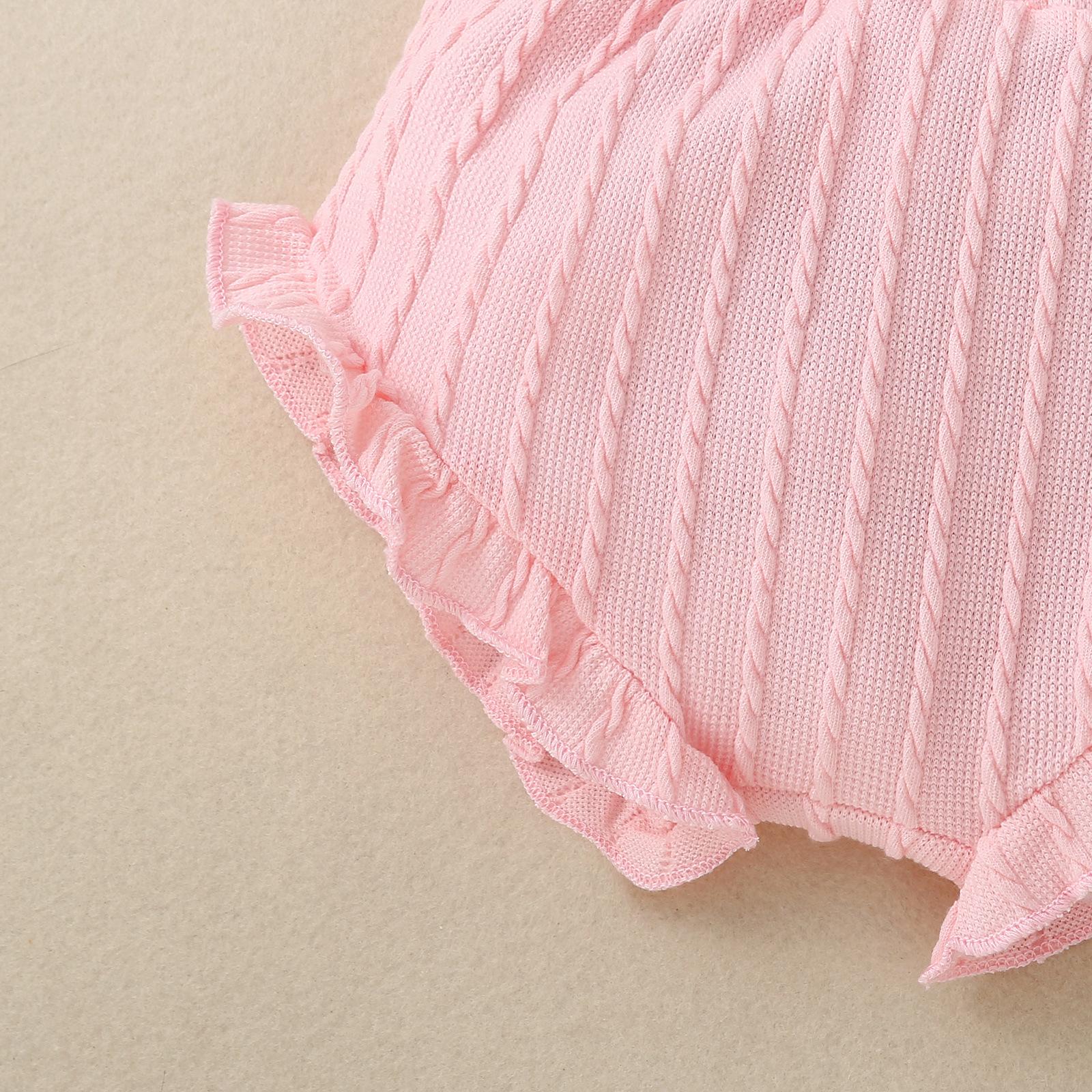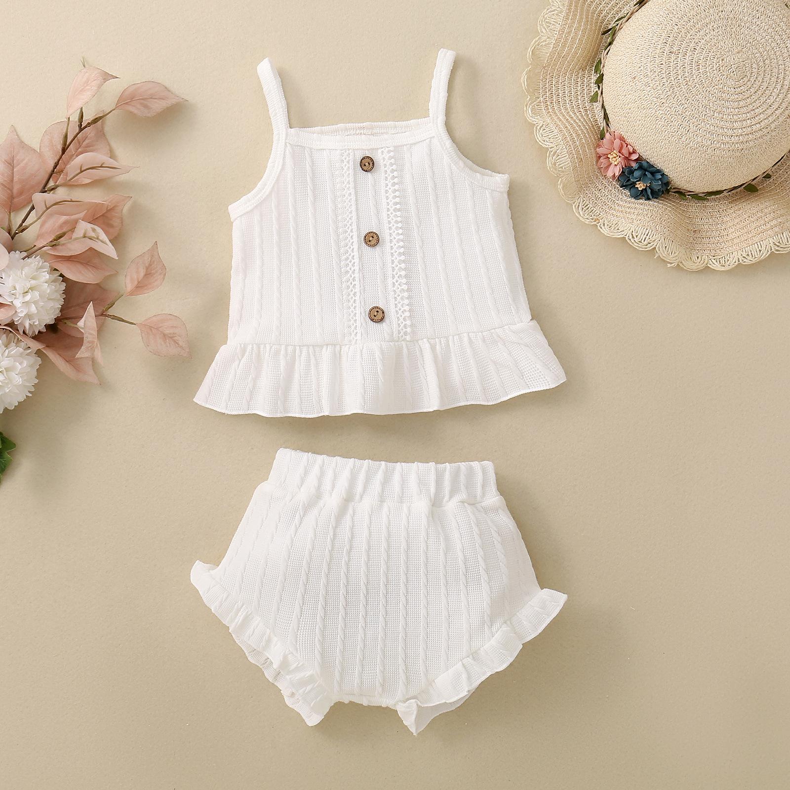Bebé Niña Bebé Verano Color Sólido Encaje Tirantes Color Sólido Pantalones Hare Conjunto de Dos Piezas Encaje Niños Pequeños y Medianos