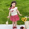 Traje de Vestido de Verano para Niñas 2025 Nuevo Estilo Moderno Manga Corta Verano para Niños Manga Pequeña Volante Conjunto de Dos Piezas