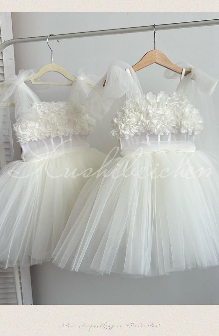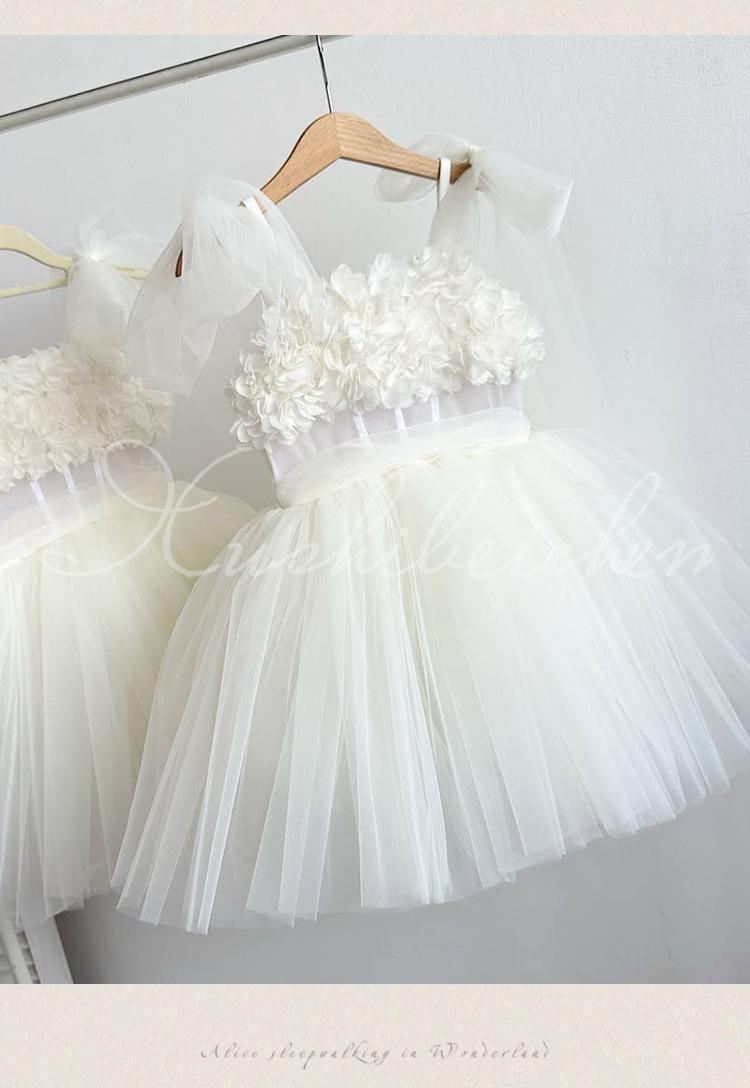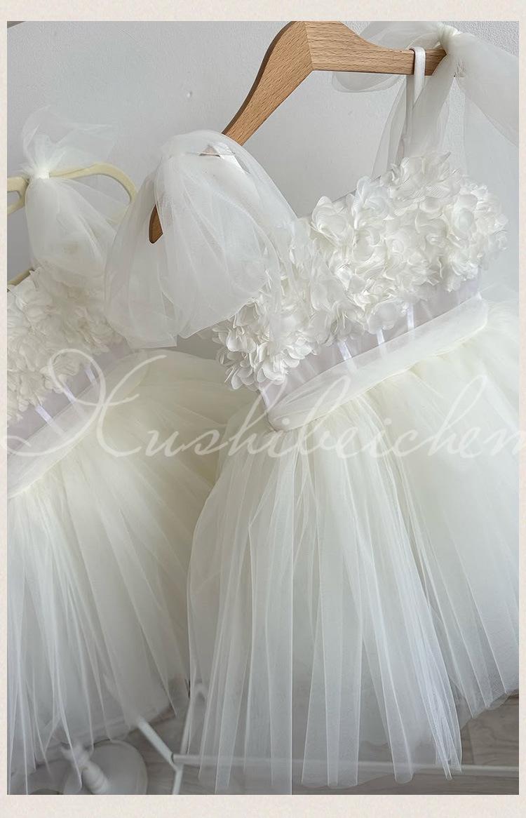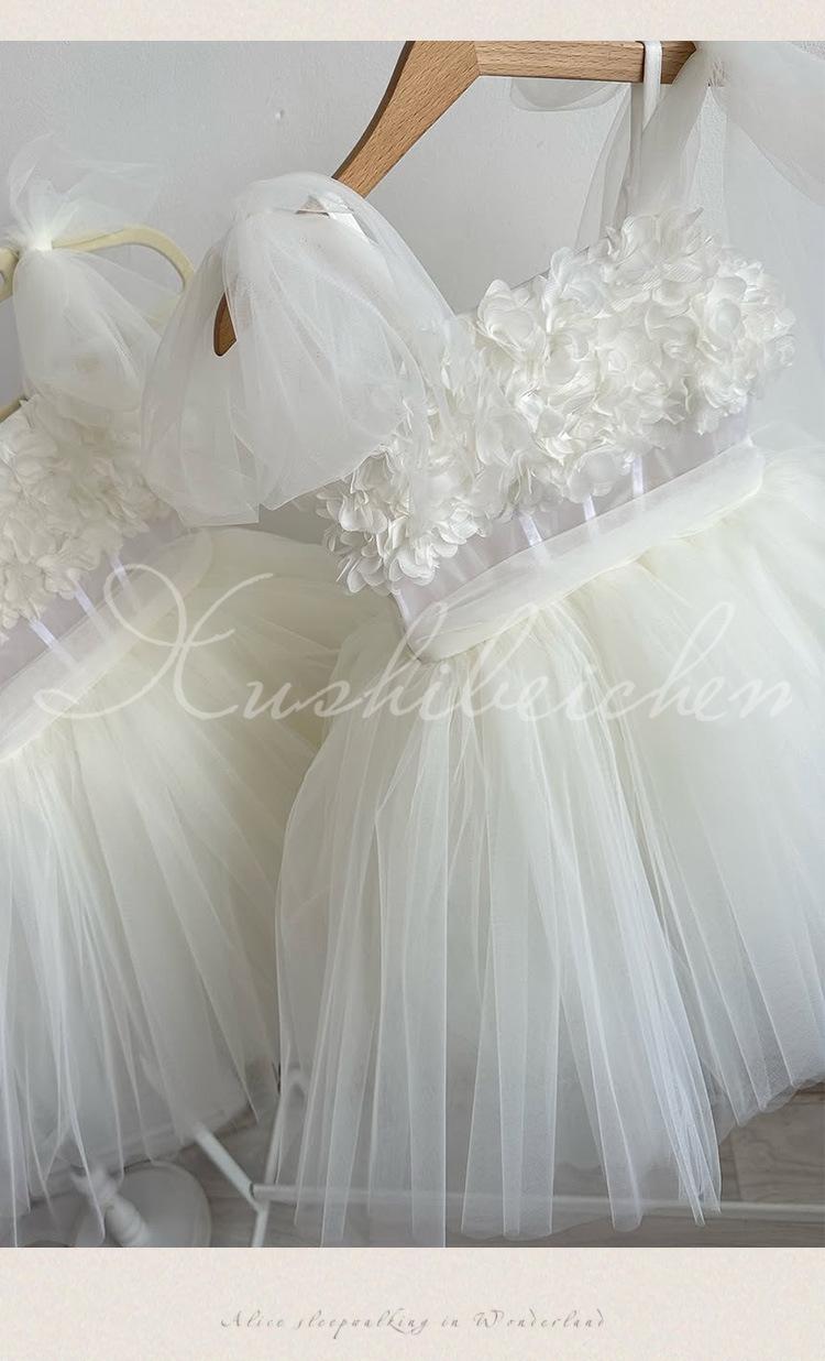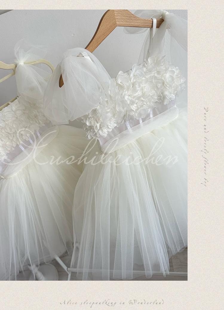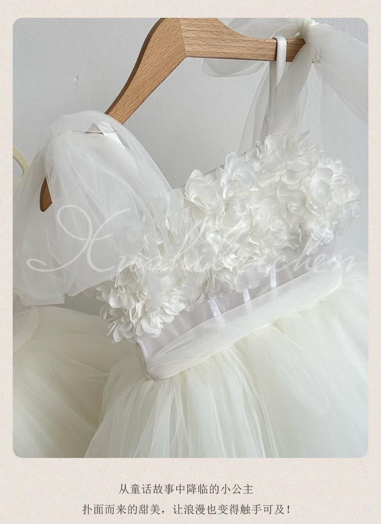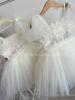 Vestido de Princesa Blanco Vestido de Princesa Flor Tridimensional 2025 Nuevo Niños Un Año Vestido Niña