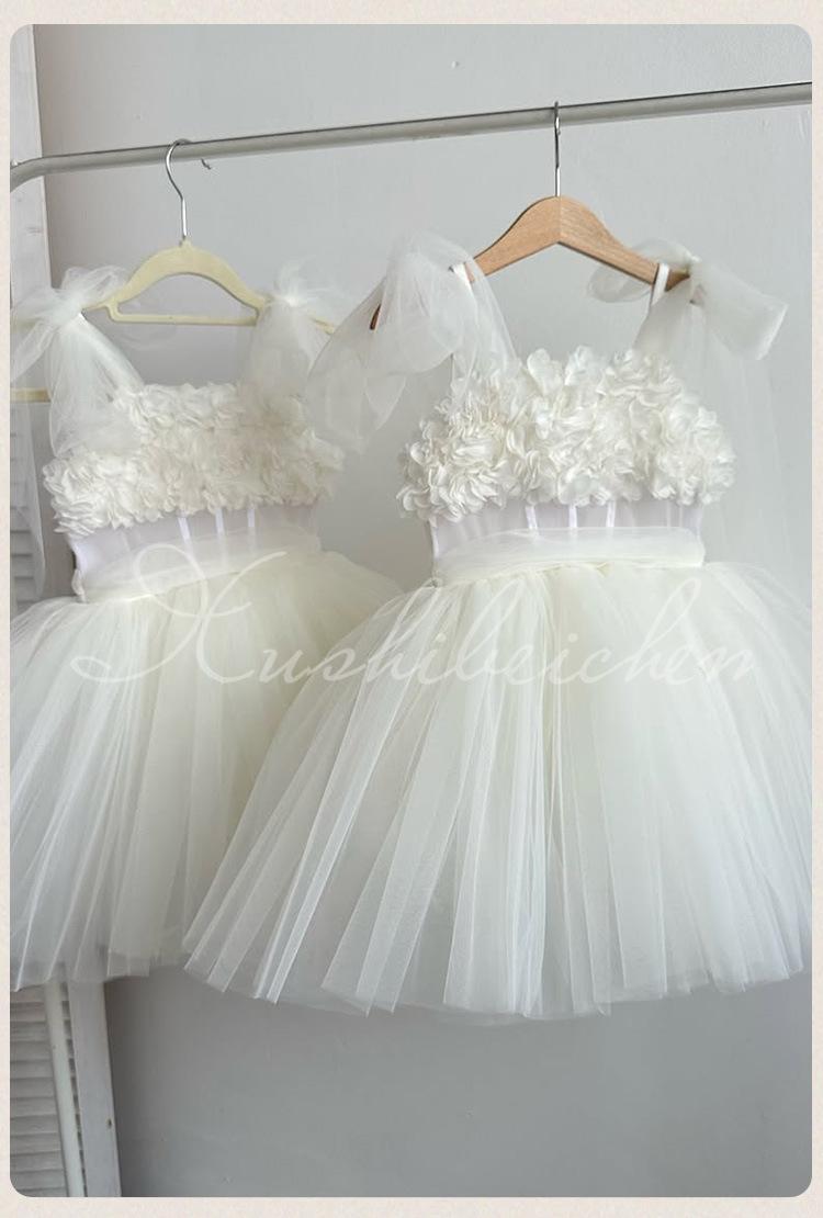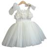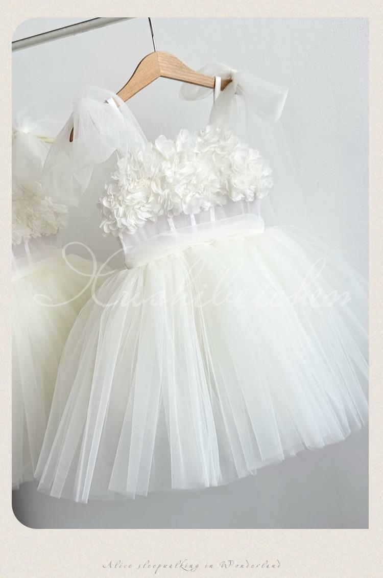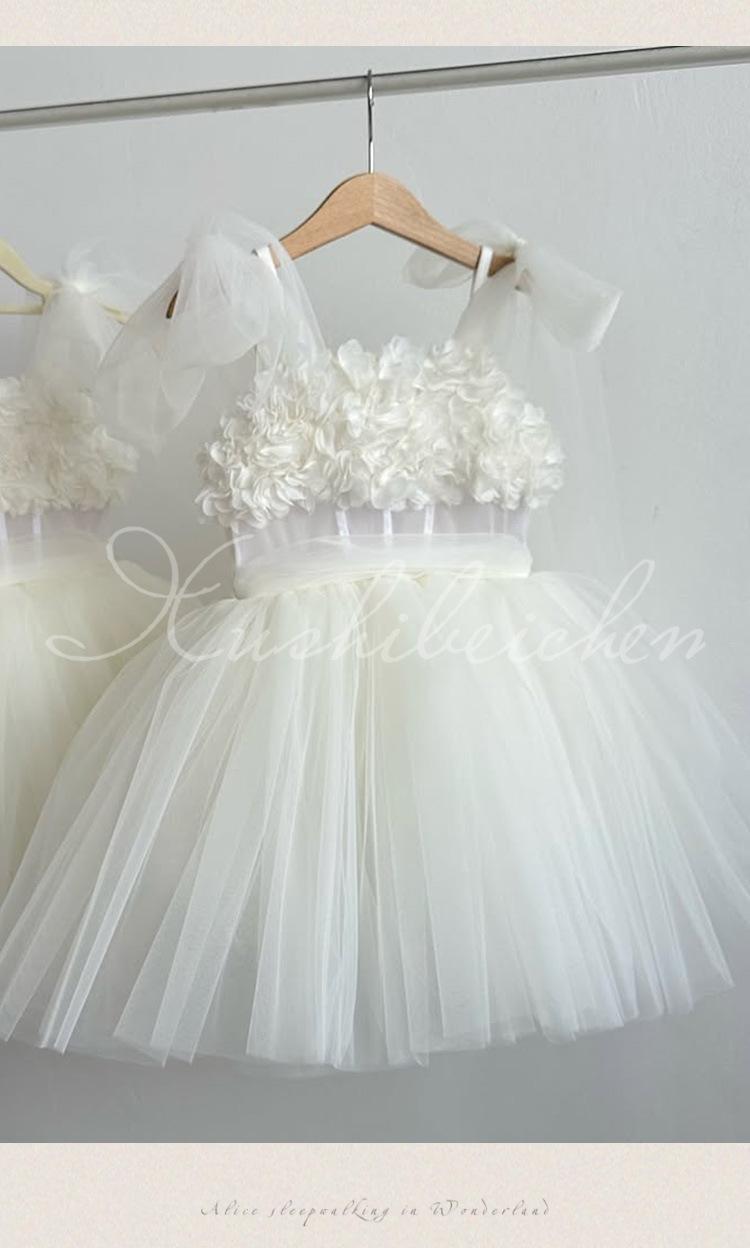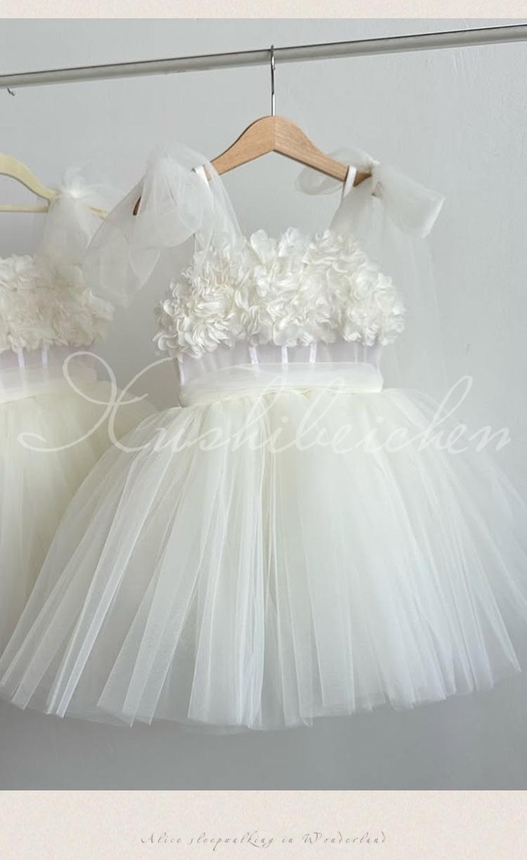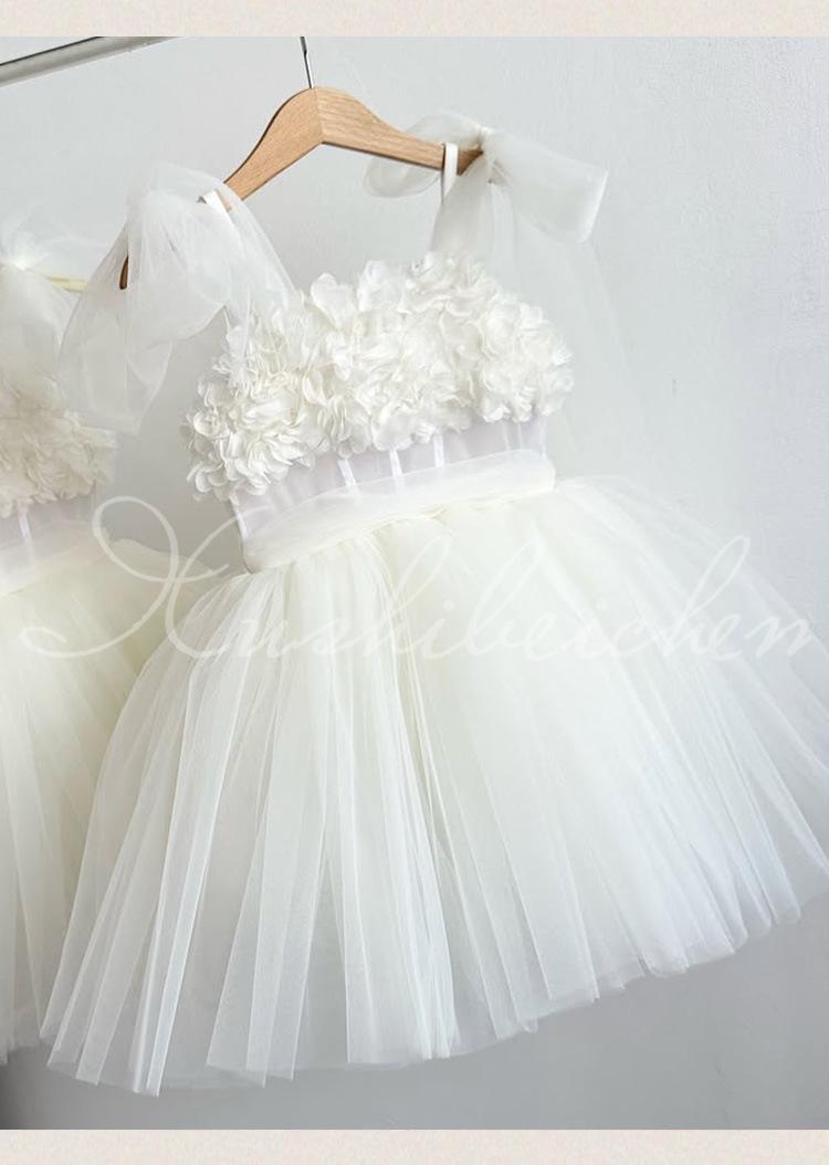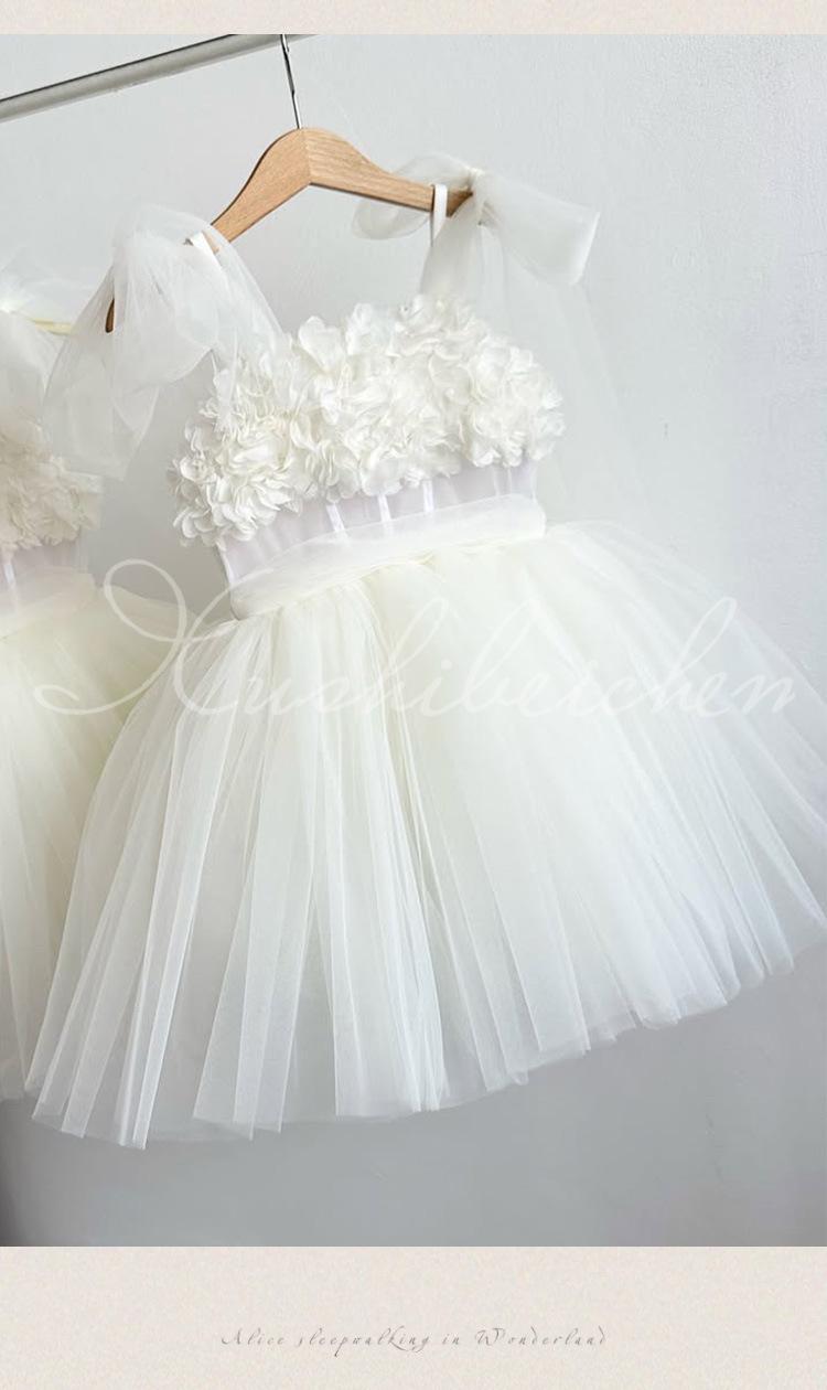 Vestido de Princesa Blanco Vestido de Princesa Flor Tridimensional 2025 Nuevo Niños Un Año Vestido Niña