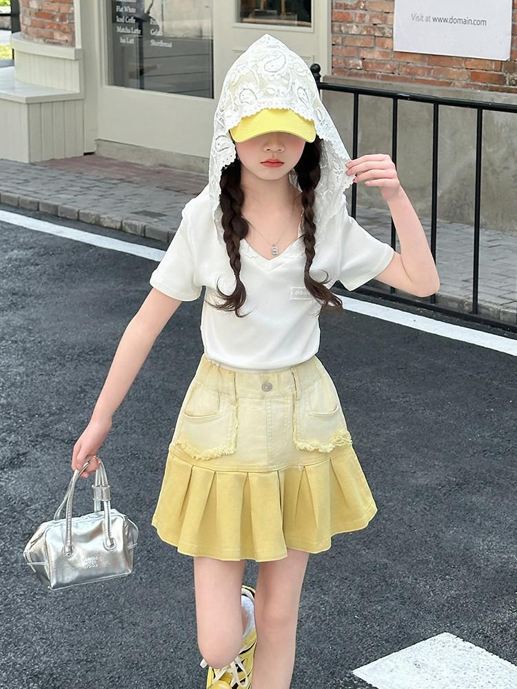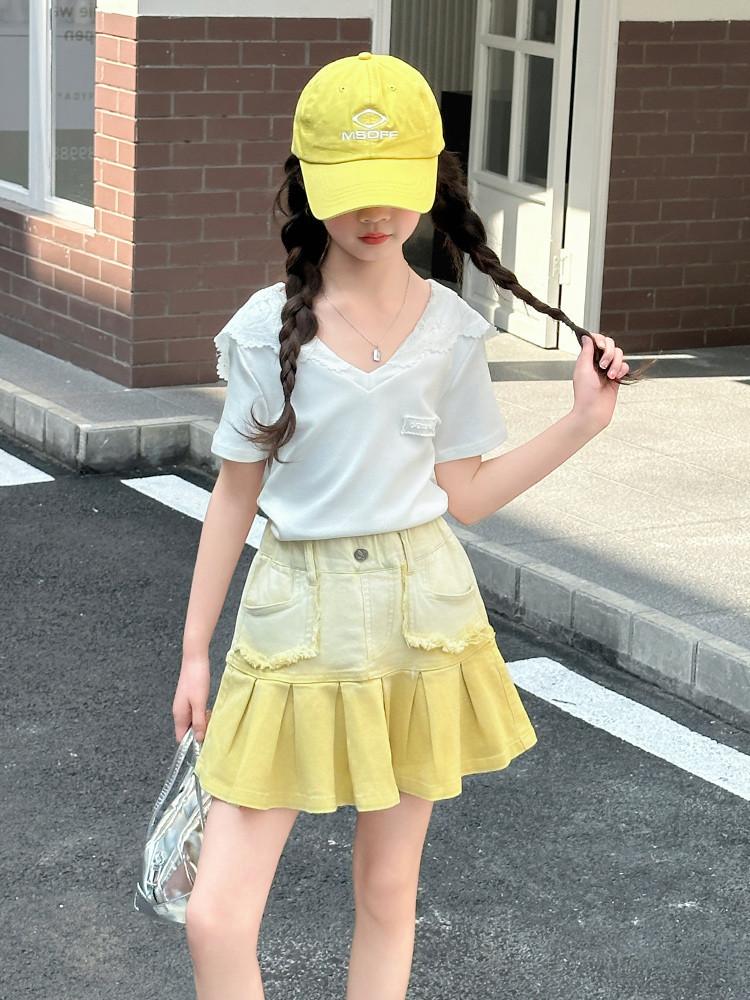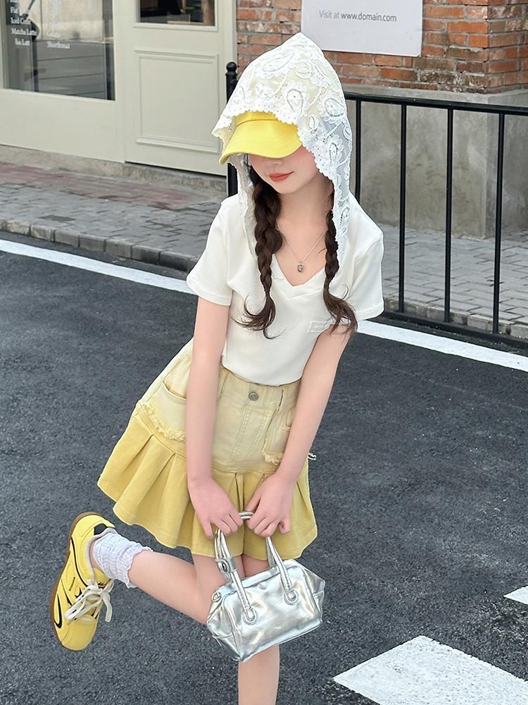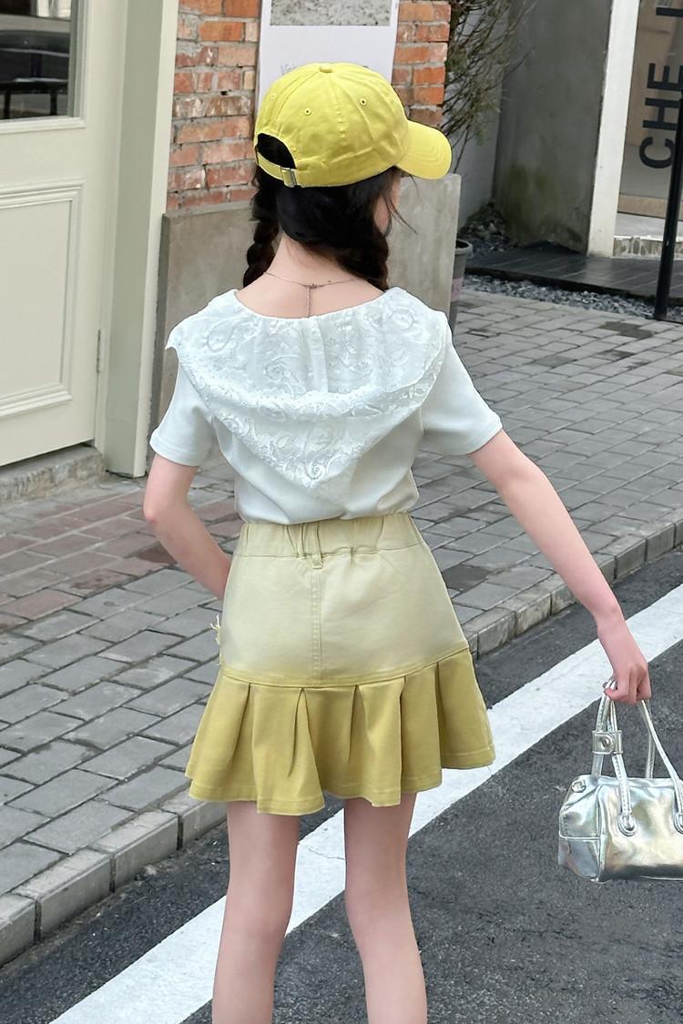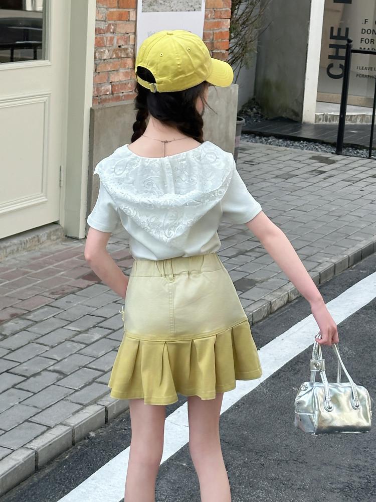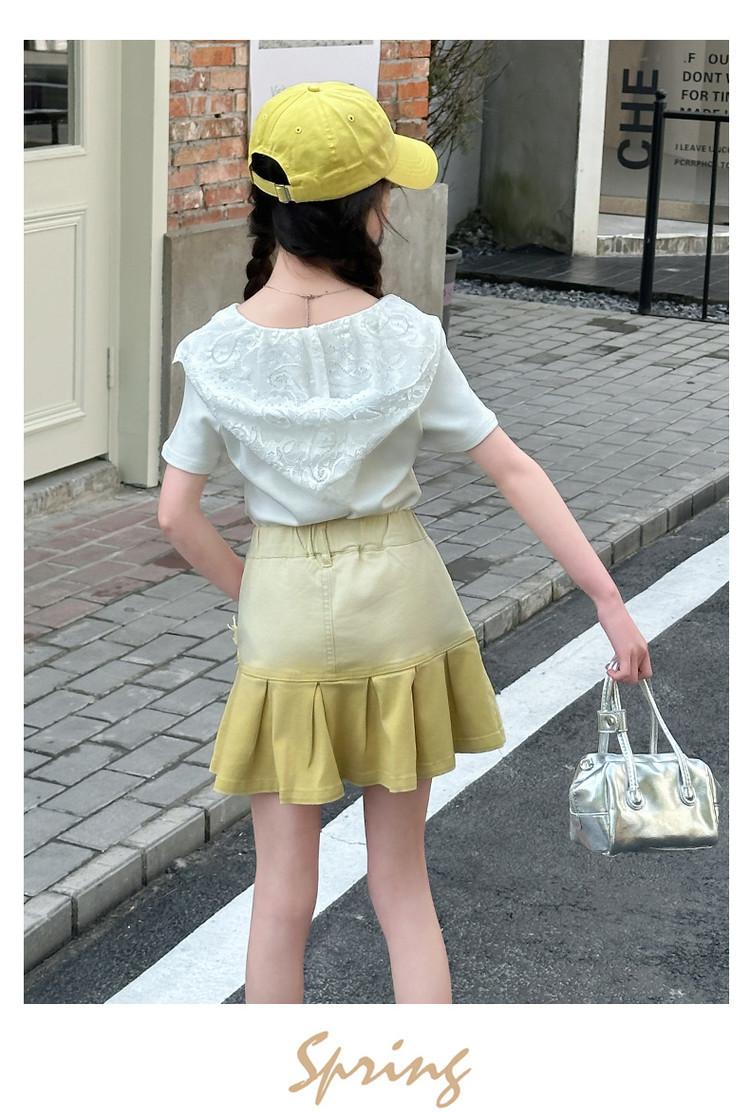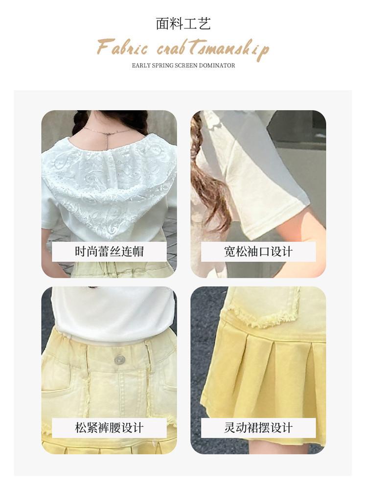 Vestido de camiseta de manga corta con capucha de encaje de verano para niñas estilo coreano Vestido Vestido de verano para niños grandes para mujer Falda corta Falda para niños Camiseta