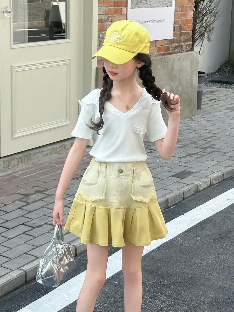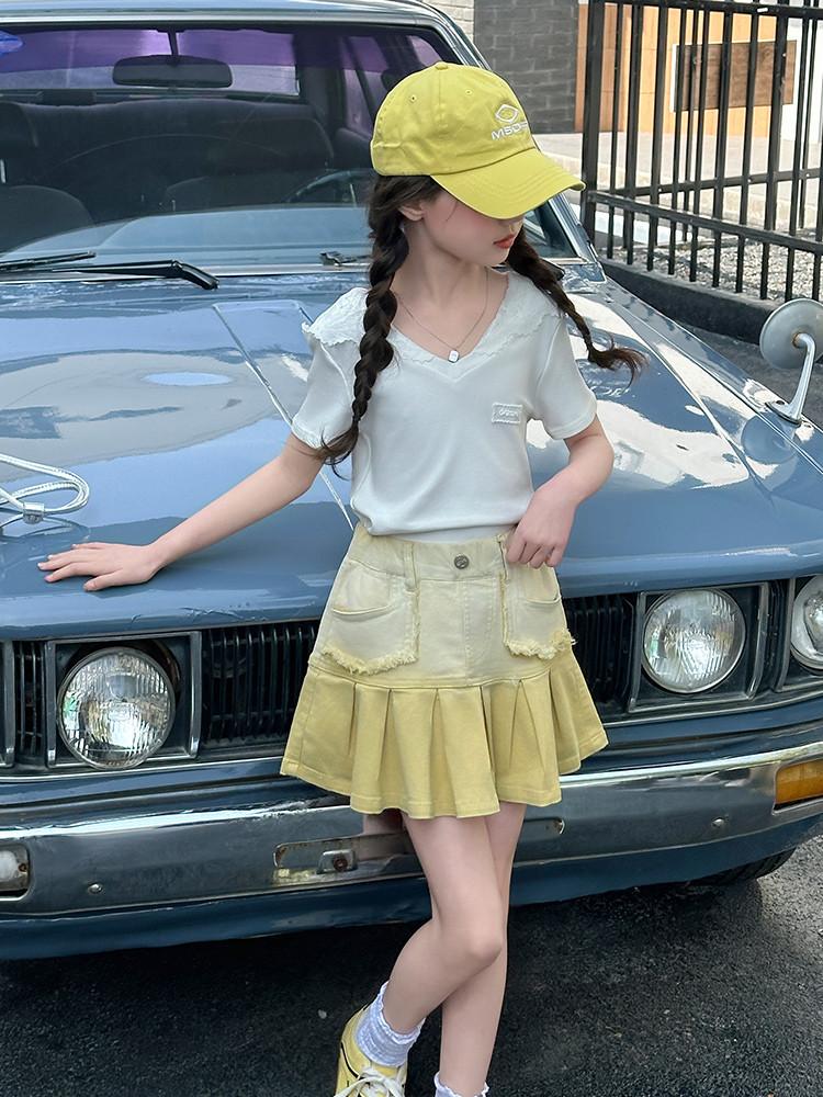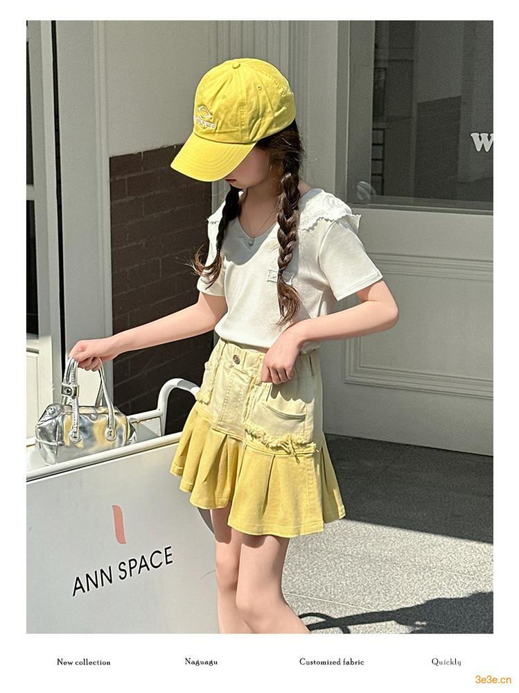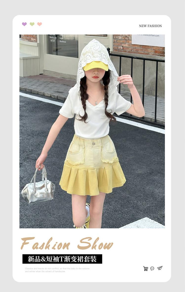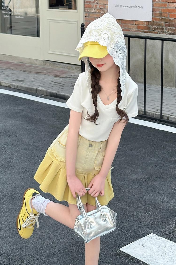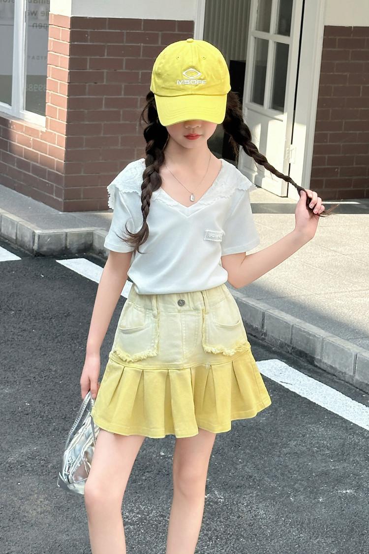 Vestido de camiseta de manga corta con capucha de encaje de verano para niñas estilo coreano Vestido Vestido de verano para niños grandes para mujer Falda corta Falda para niños Camiseta