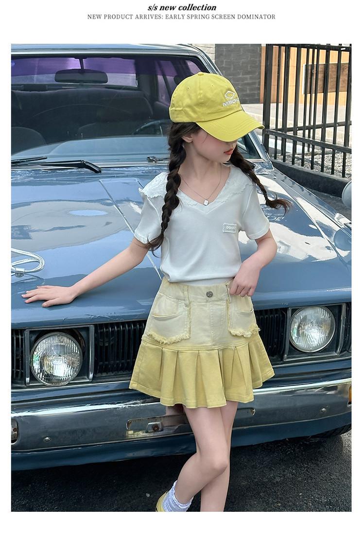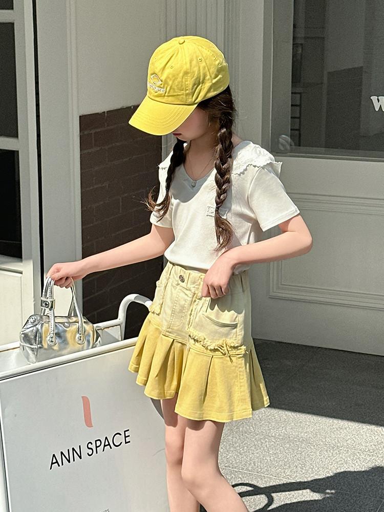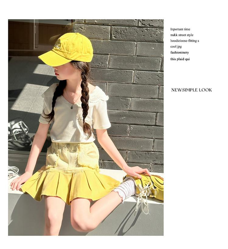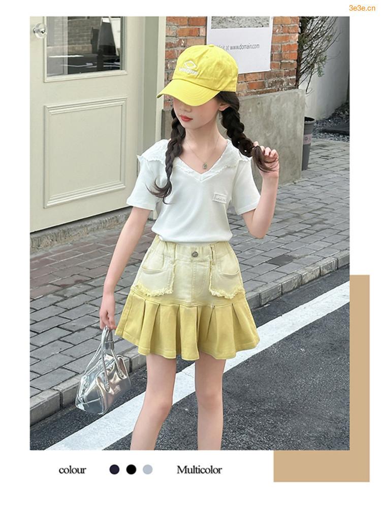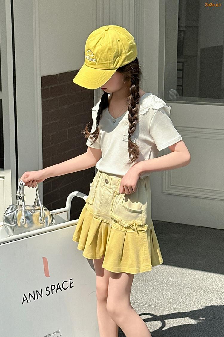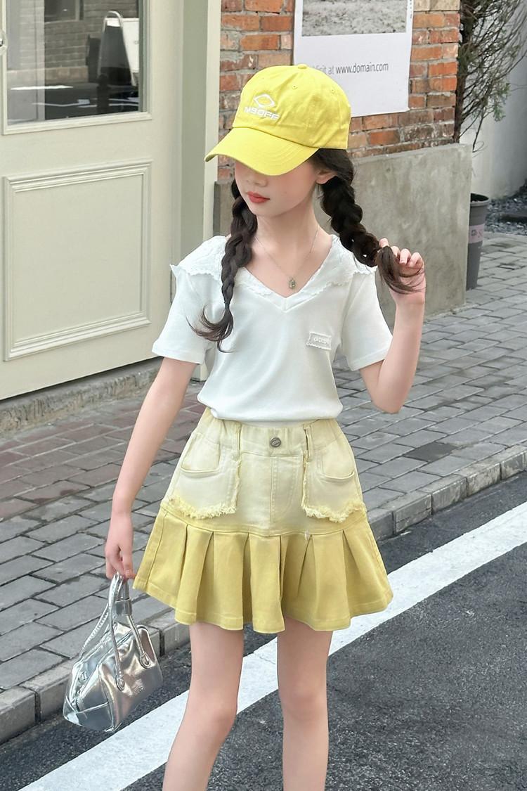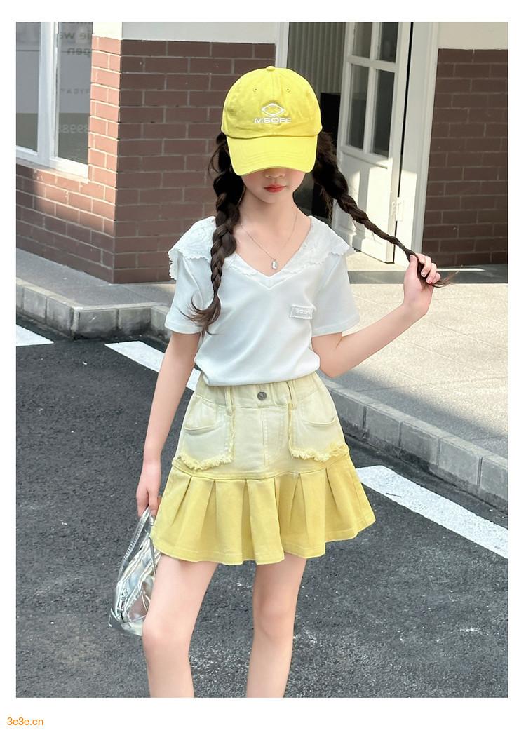 Vestido de camiseta de manga corta con capucha de encaje de verano para niñas estilo coreano Vestido Vestido de verano para niños grandes para mujer Falda corta Falda para niños Camiseta